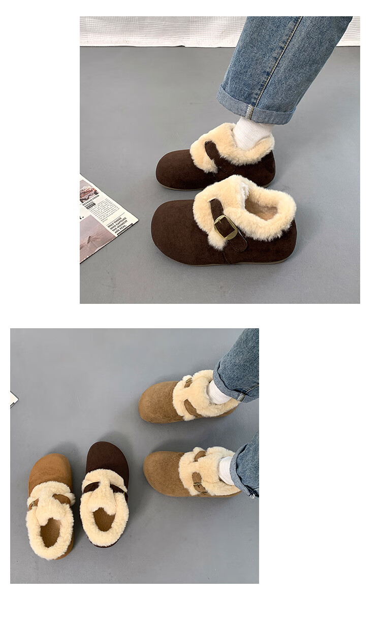 星期六加绒勃肯鞋女2025新款秋冬季软底毛毛鞋一脚蹬懒人保暖棉鞋豆豆鞋 黑色 【通勤百搭】跟高1.5cm 39