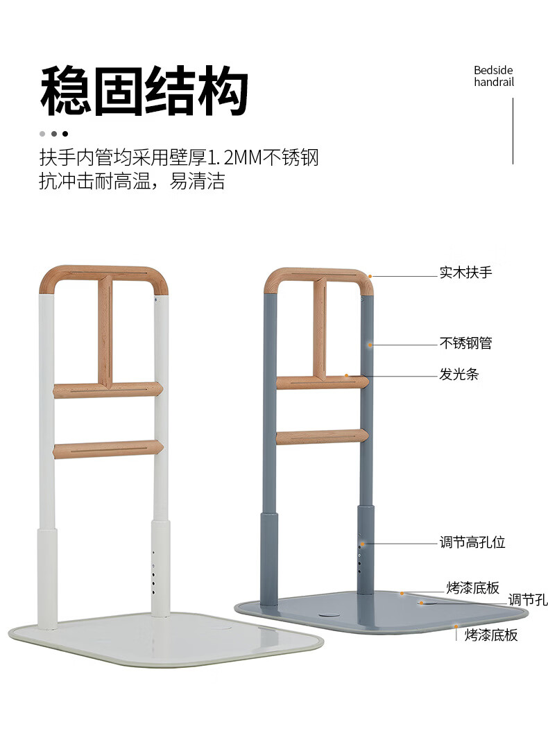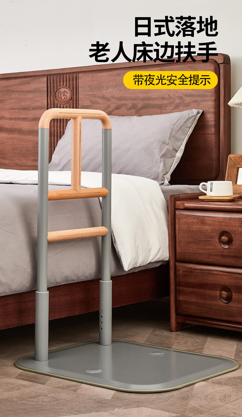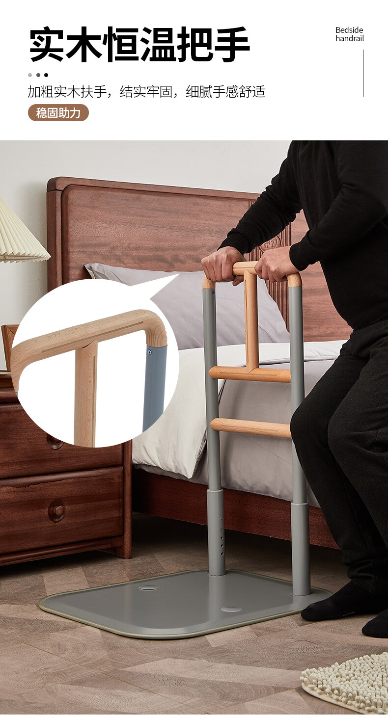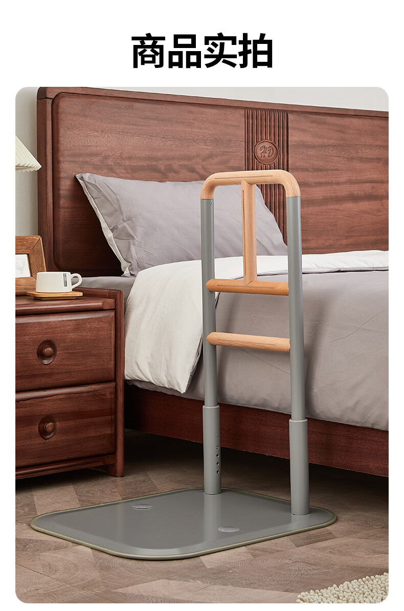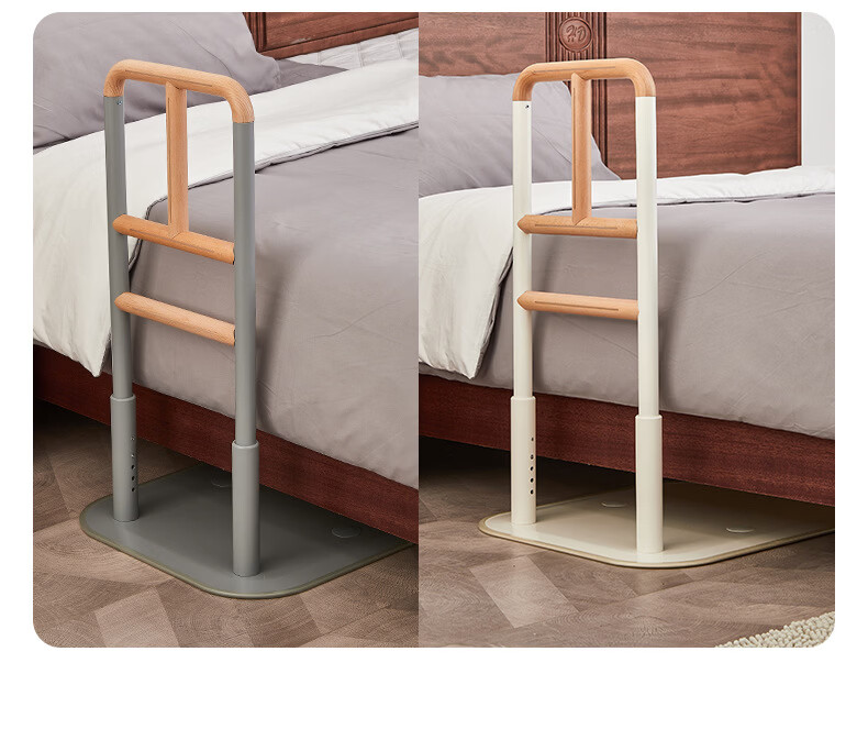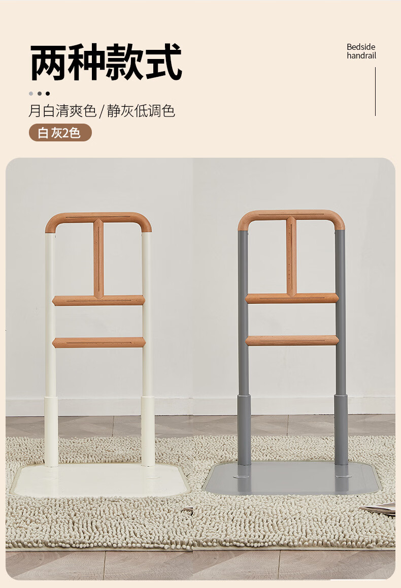 家文化(JIAWENHUA)老人孕妇床边扶手卫生间助力栏杆起床辅助器家用沙发坐便实木扶手 免打孔横竖柄床边扶手-白色