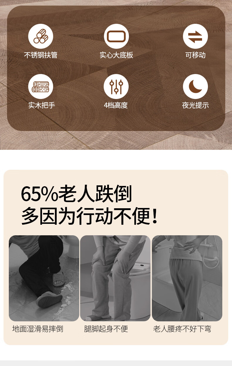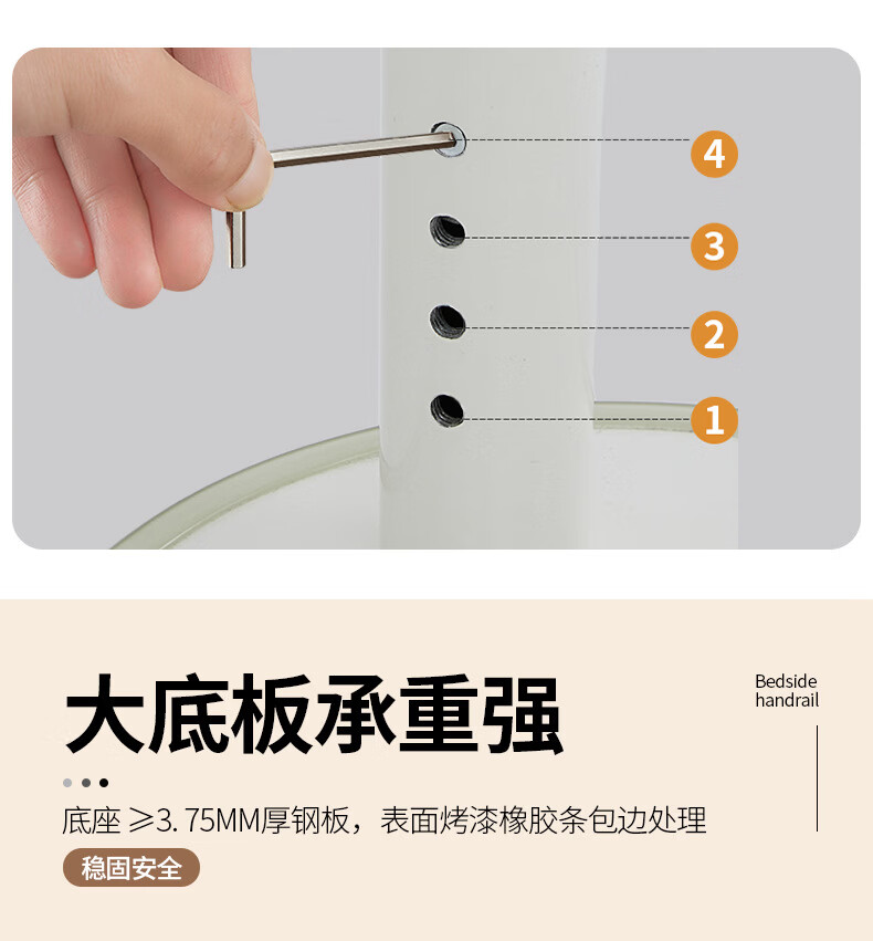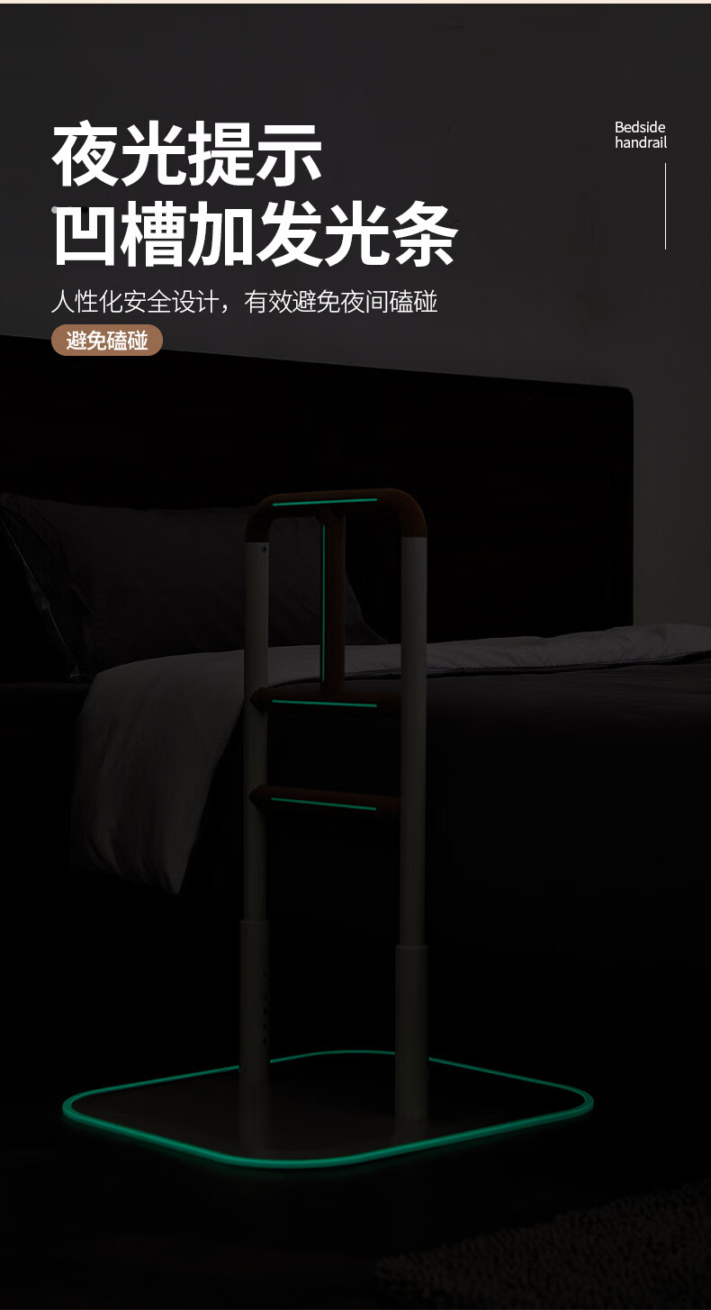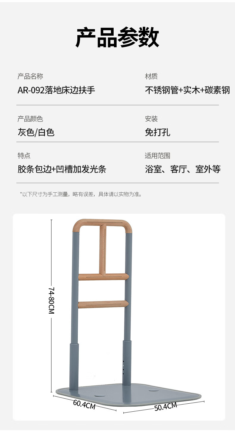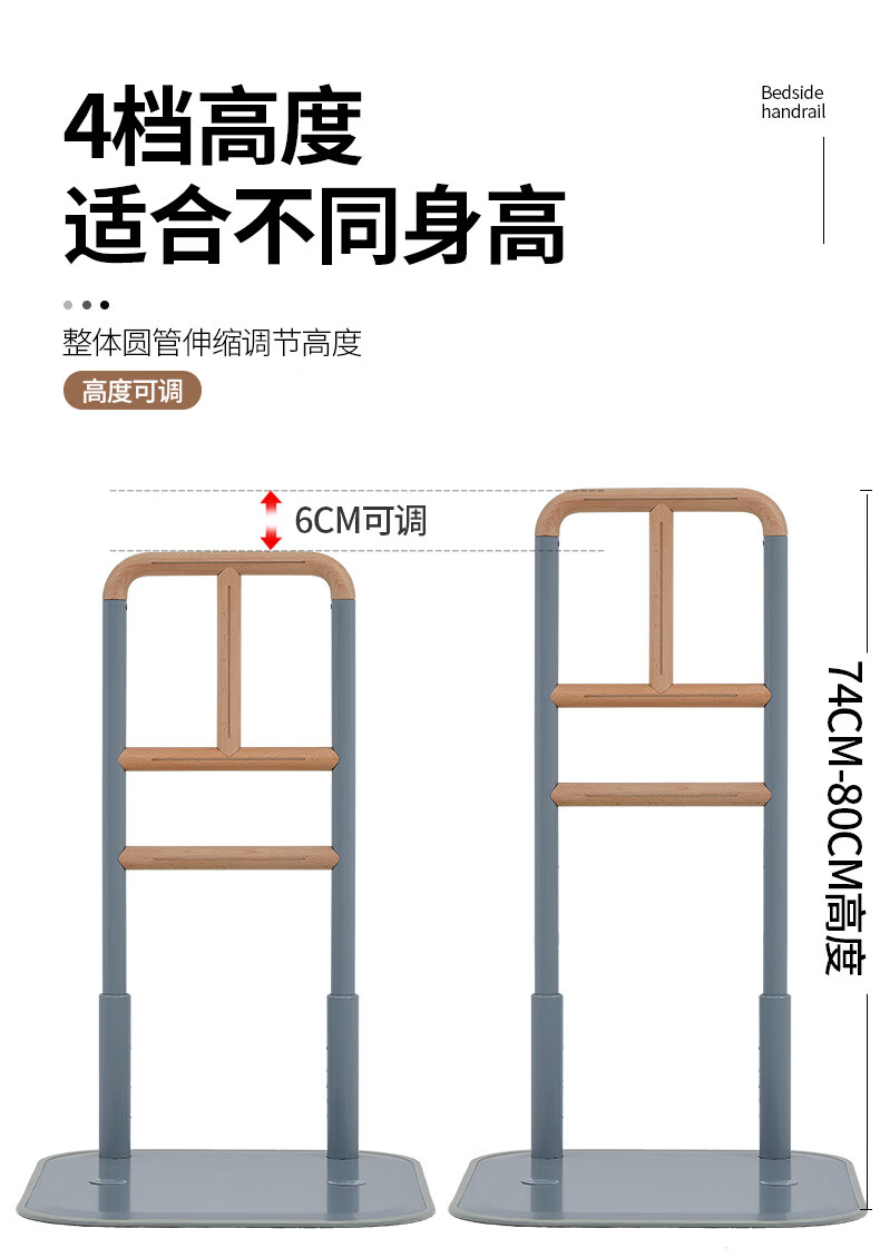 家文化(JIAWENHUA)老人孕妇床边扶手卫生间助力栏杆起床辅助器家用沙发坐便实木扶手 免打孔横竖柄床边扶手-白色