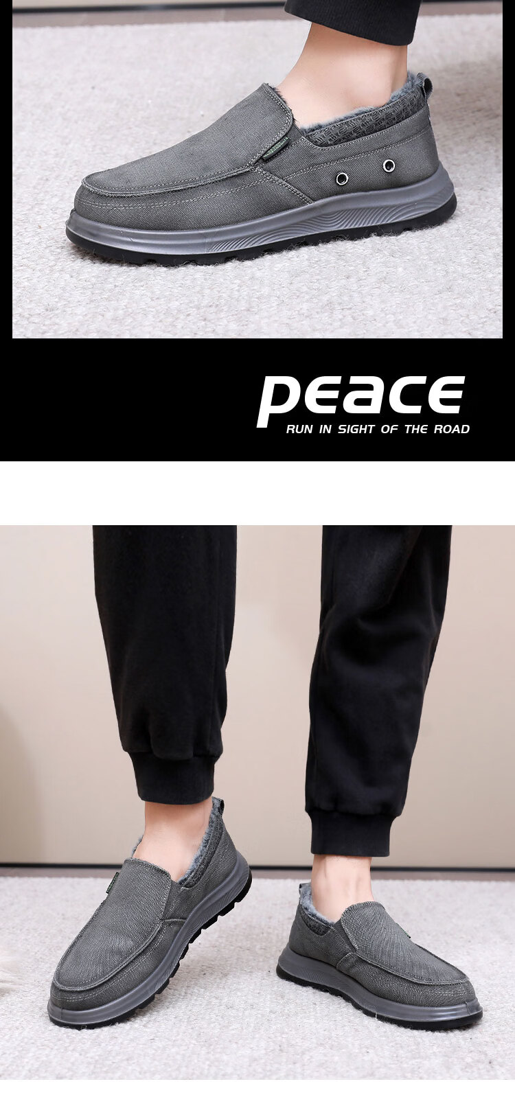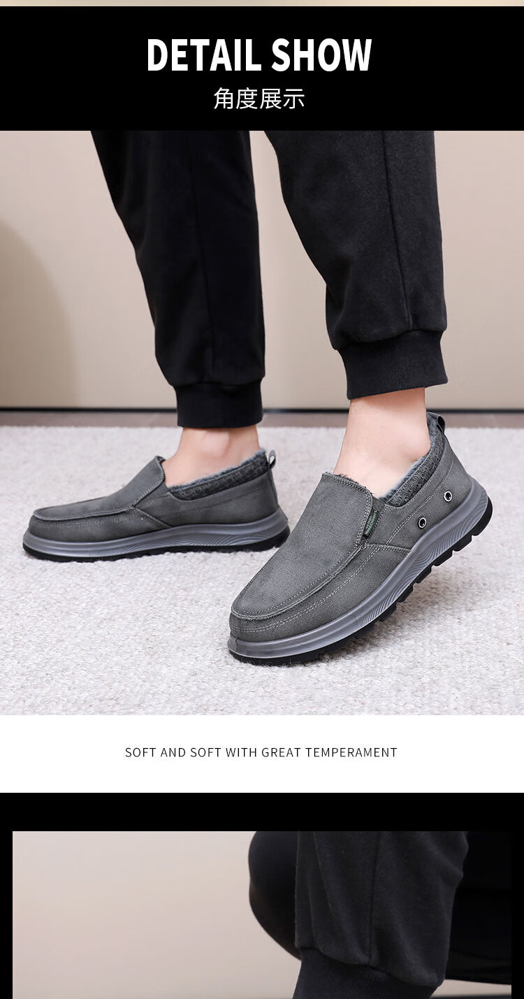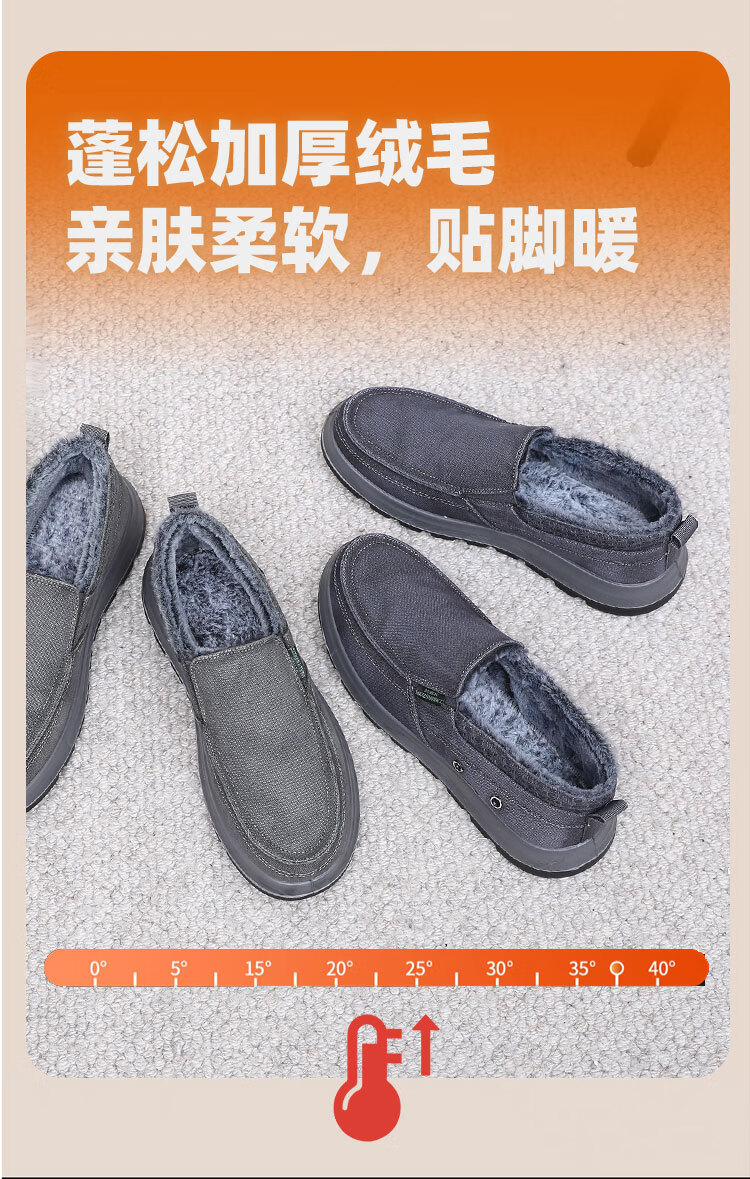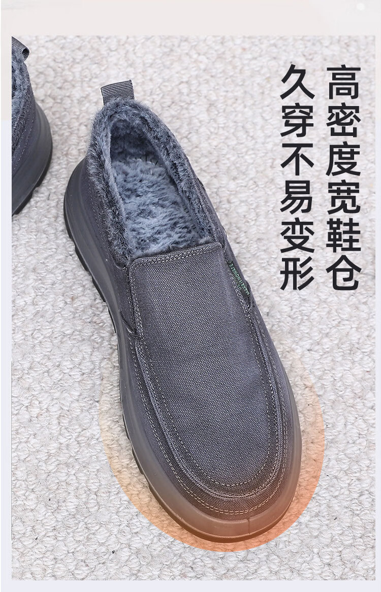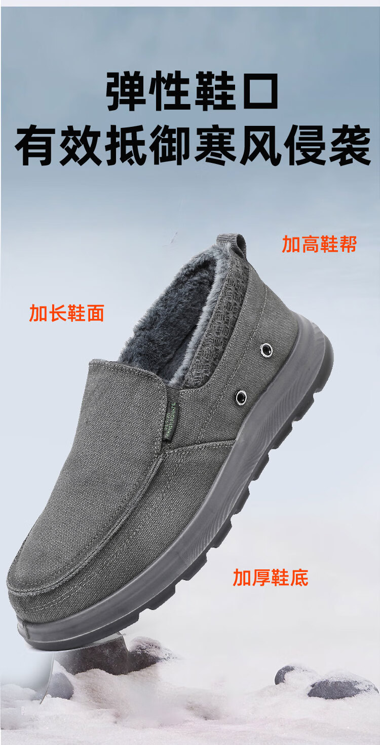 稻草人(MEXICAN)秋冬季一脚蹬懒人加绒保暖二棉鞋老北京布鞋加宽舒适爸爸休闲男鞋 蓝色 38 标准码