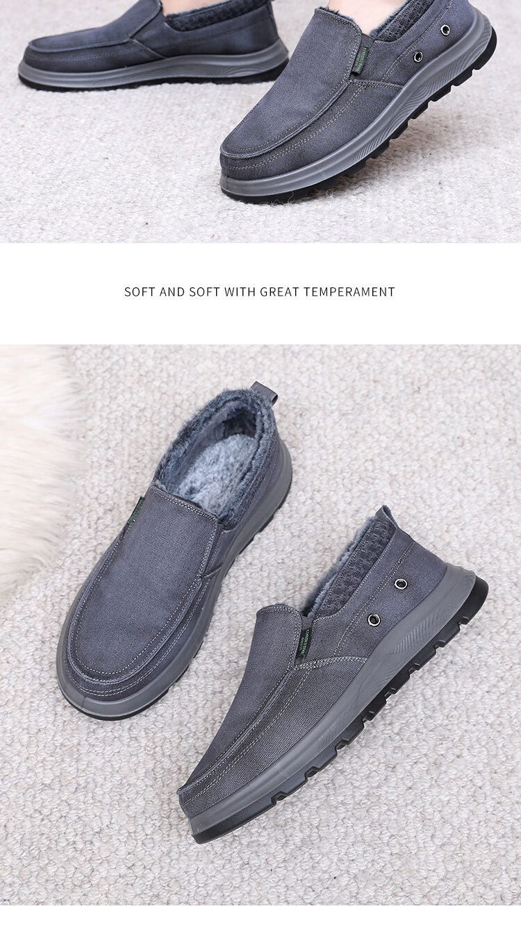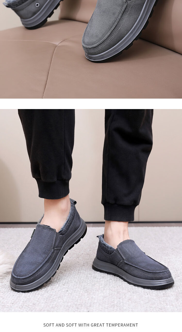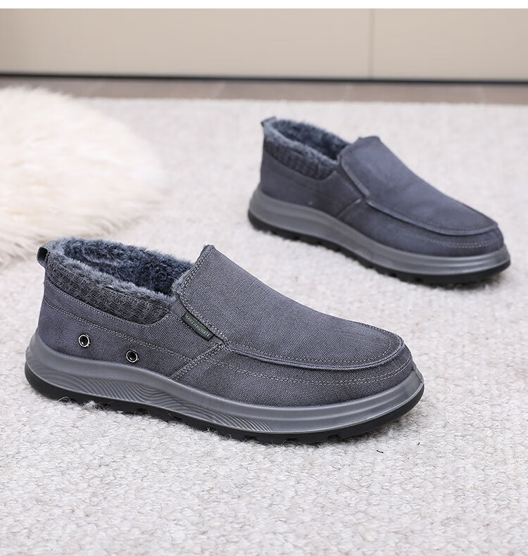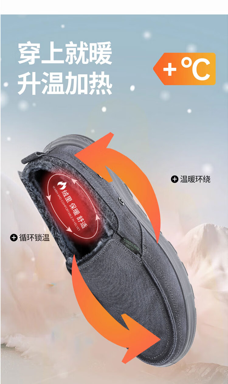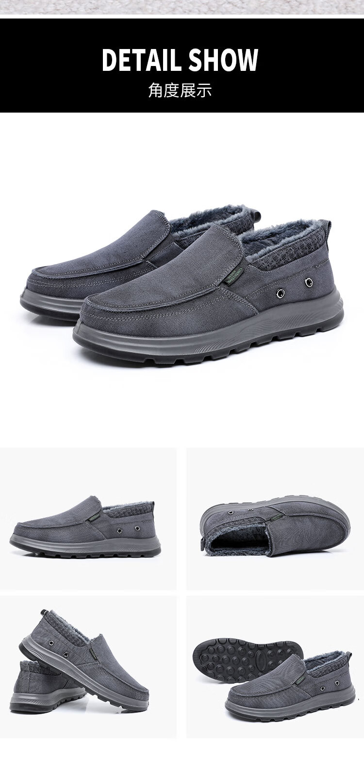 稻草人(MEXICAN)秋冬季一脚蹬懒人加绒保暖二棉鞋老北京布鞋加宽舒适爸爸休闲男鞋 蓝色 38 标准码