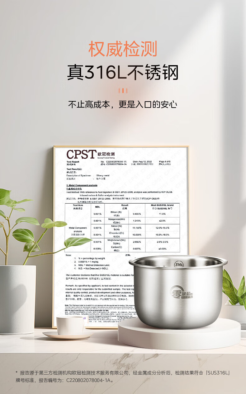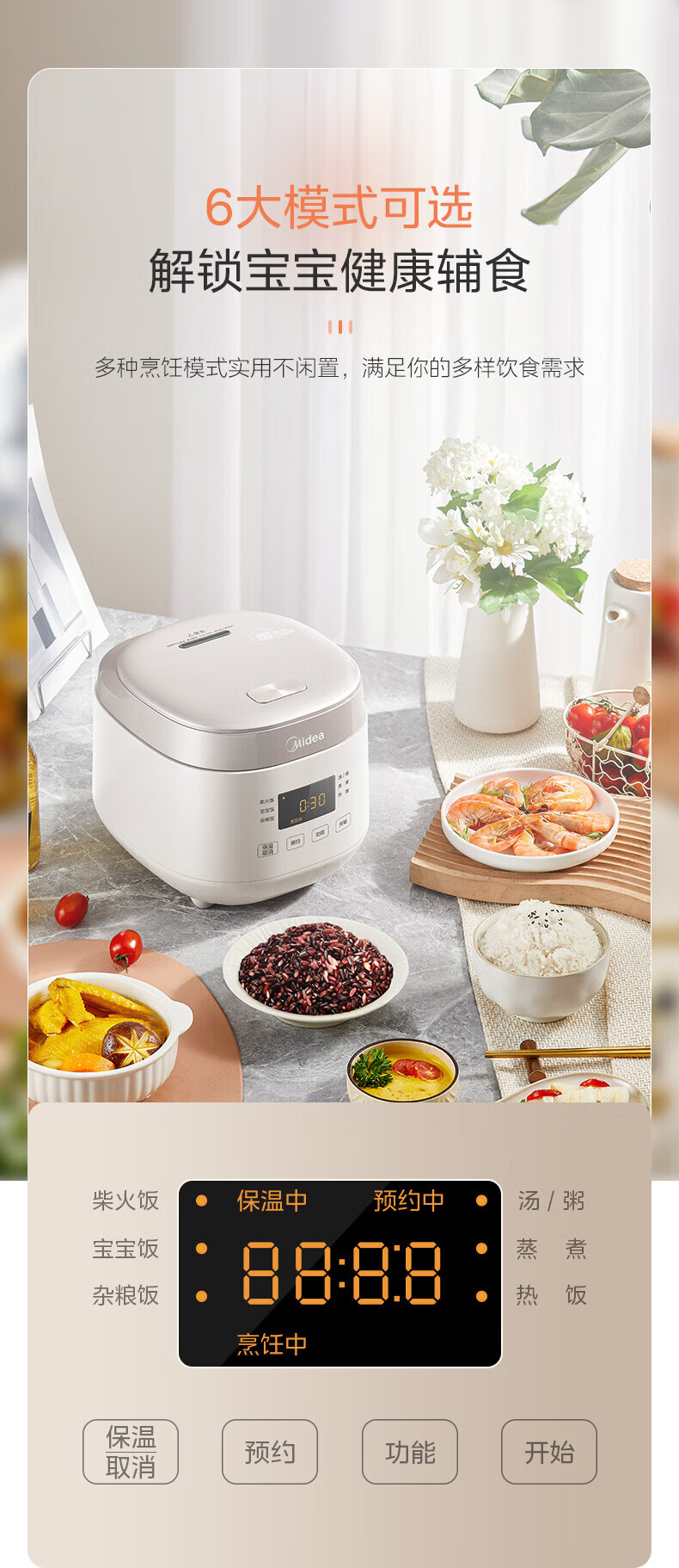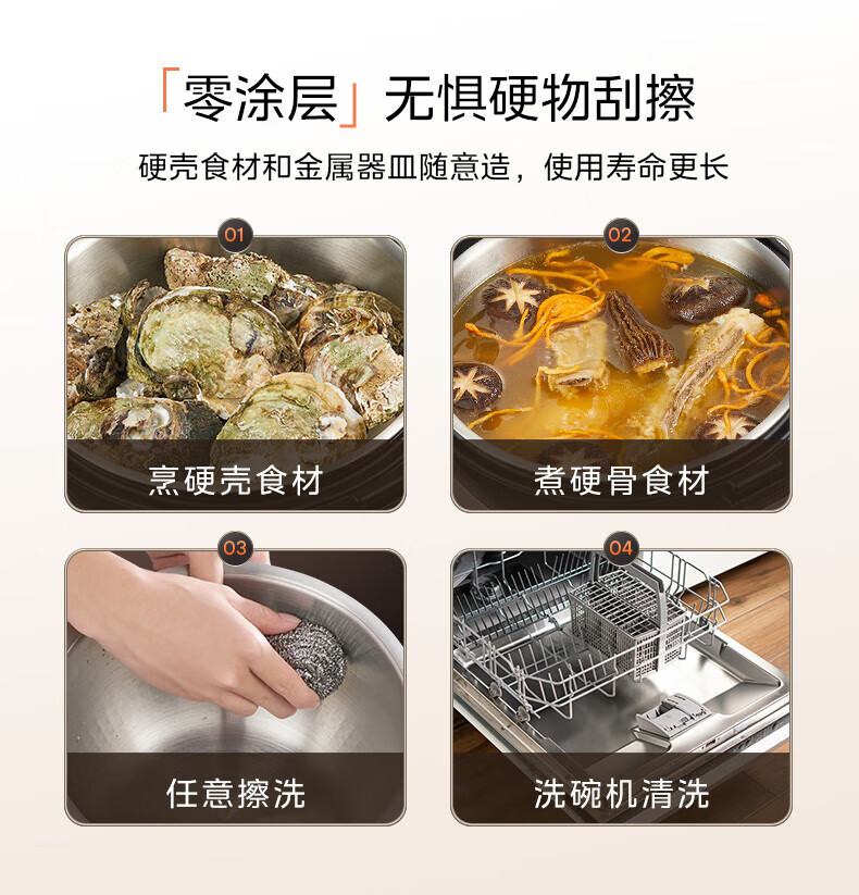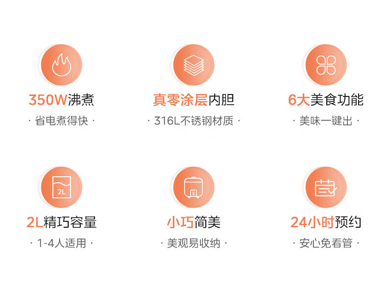美的(Midea)0涂层2L不锈钢内胆1-2人电饭煲电饭锅 家用智能多功能微压无涂层电饭煲预约柴火杂粮饭MB-RC201S 【0涂层小煲】316L不锈钢 2L