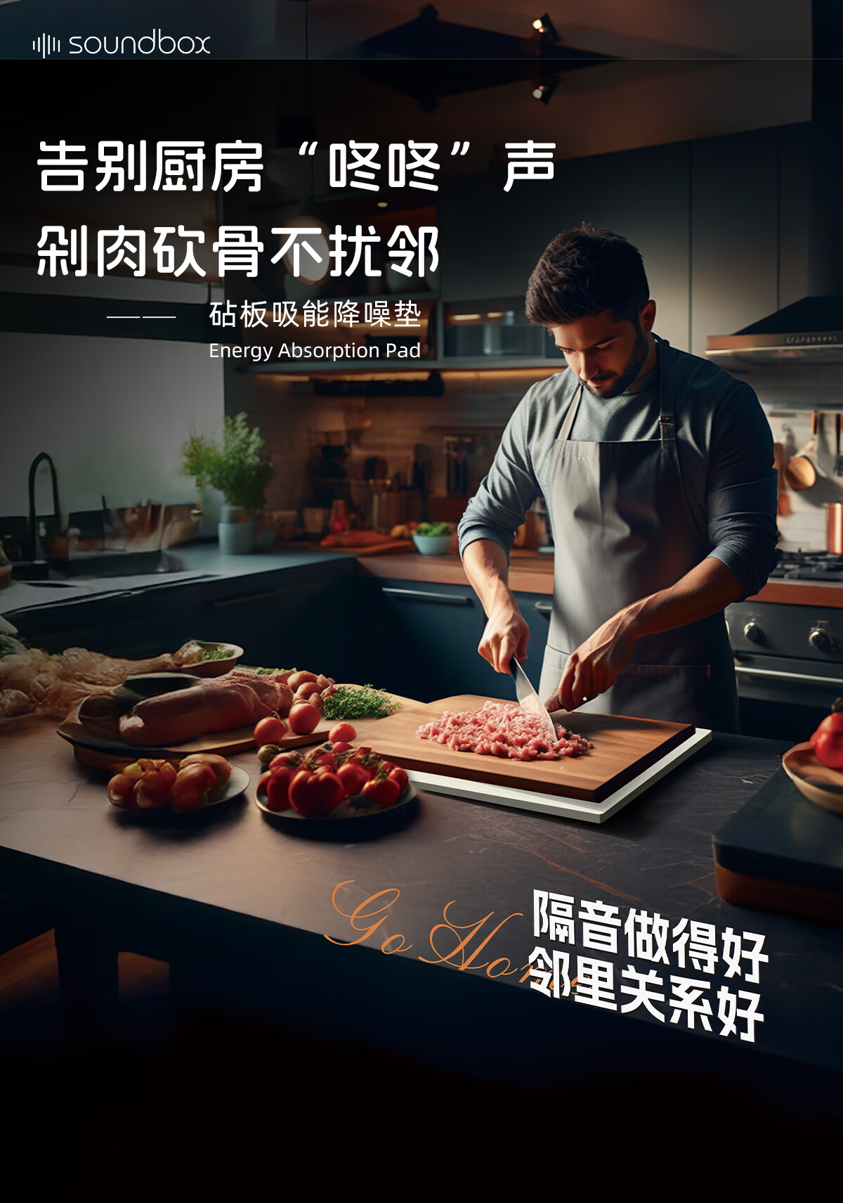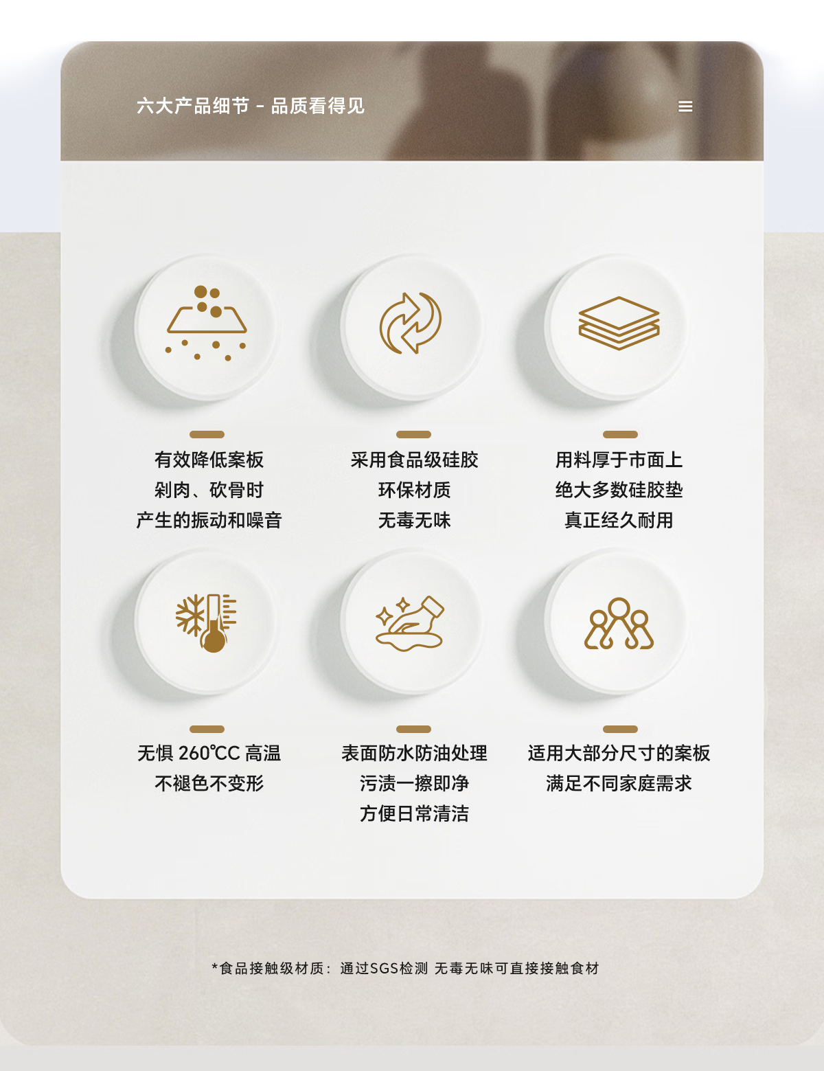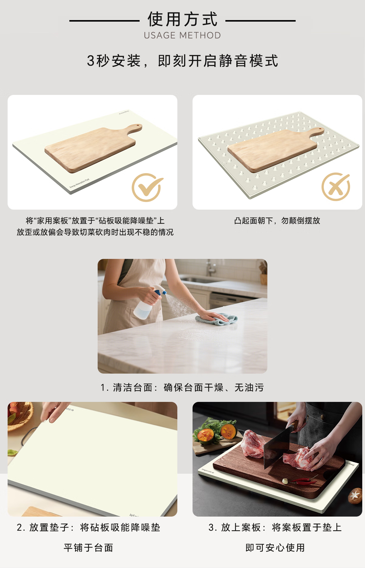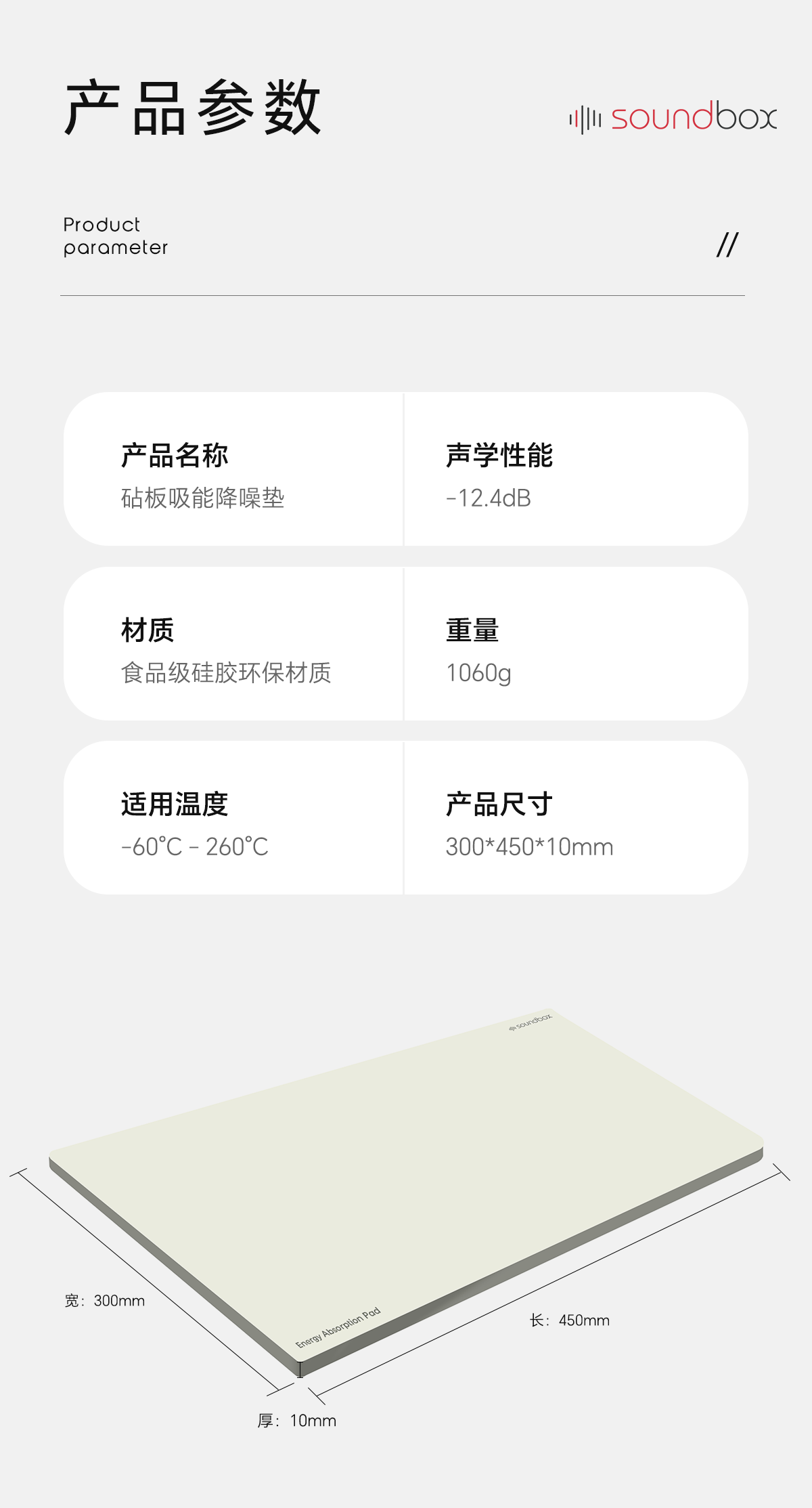 声博士(soundbox)砧板减震垫厨房菜板防滑垫台面切菜案板保护垫剁肉静音食品硅胶垫 砧板吸能降噪垫-MEap/300*450*10mm/米白色