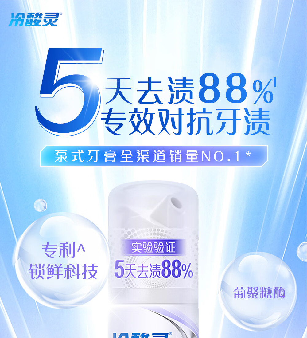 冷酸灵专研抗敏美白泵式牙膏125g 5天专效脱渍 对抗牙渍【送家政卡】