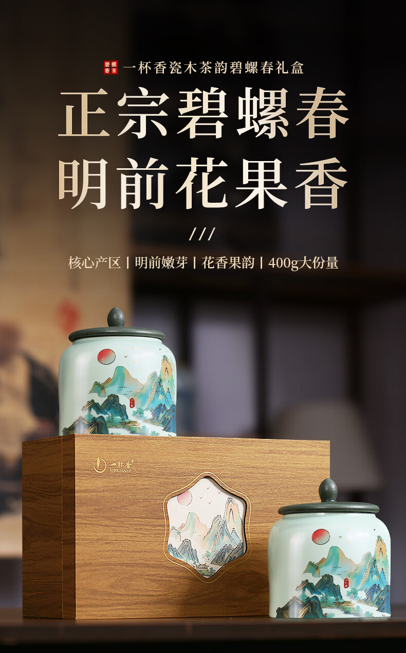 一杯香茶叶绿茶明前碧螺春400g2025新茶过年货礼盒装送礼老丈人春节礼品