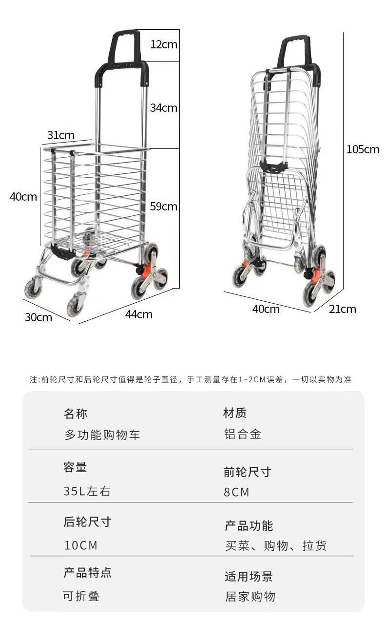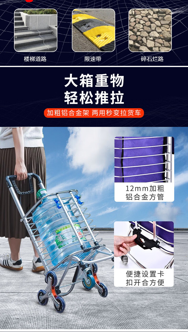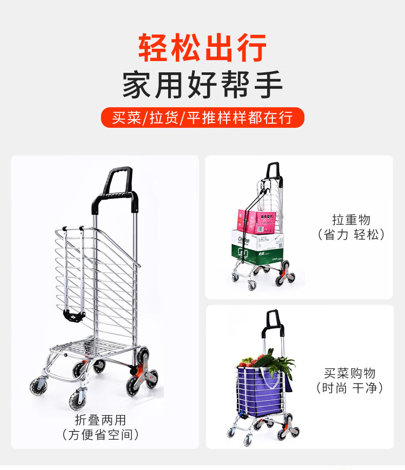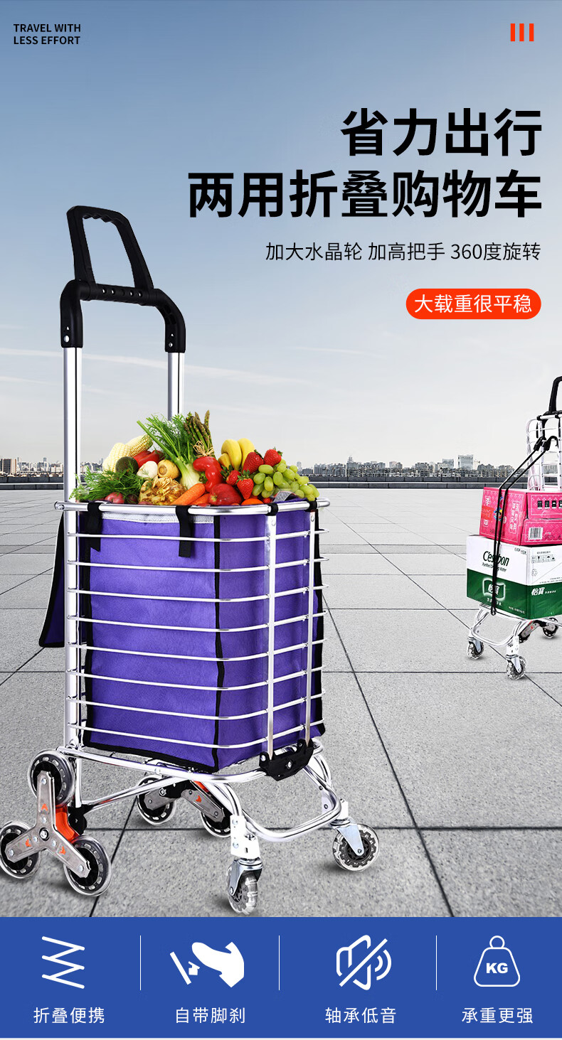 美纳美买菜车购物车拖车小拉车老人买菜手拉车爬楼可折叠拉杆行李车小车 标准爬楼款八轮折叠两用【紫色】