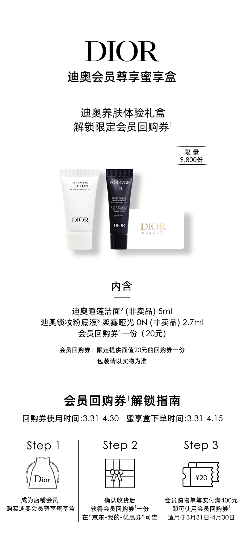 迪奥(DIOR)【会员养肤尝鲜礼】睡莲洁面5ml+粉底液2.7ml