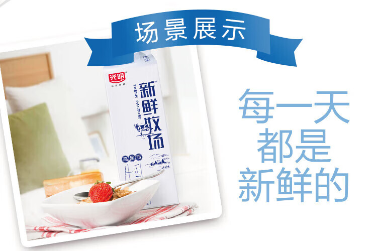 光明新鲜牧场低温鲜牛奶 3.4g蛋白早餐牛奶950ml*3 包邮 源头直发