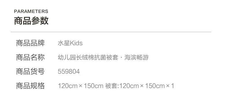 水星家纺幼儿园长绒棉抗菌被套·海滨畅游 幼儿园长绒棉抗菌被套·海滨畅游 150cm*120cm
