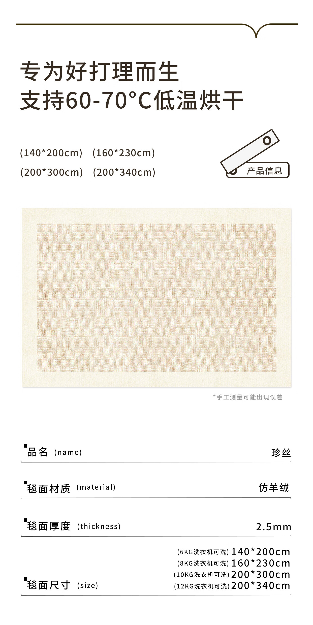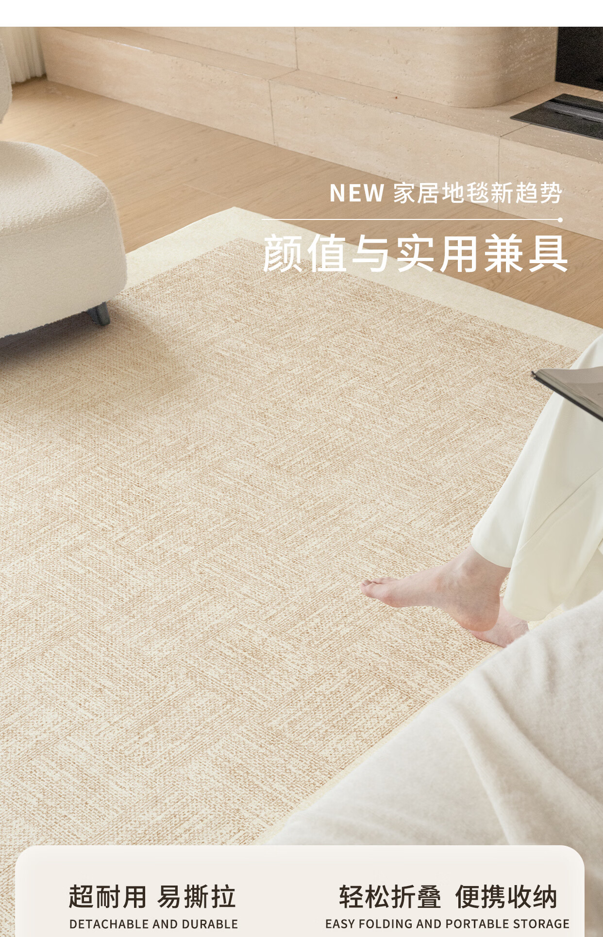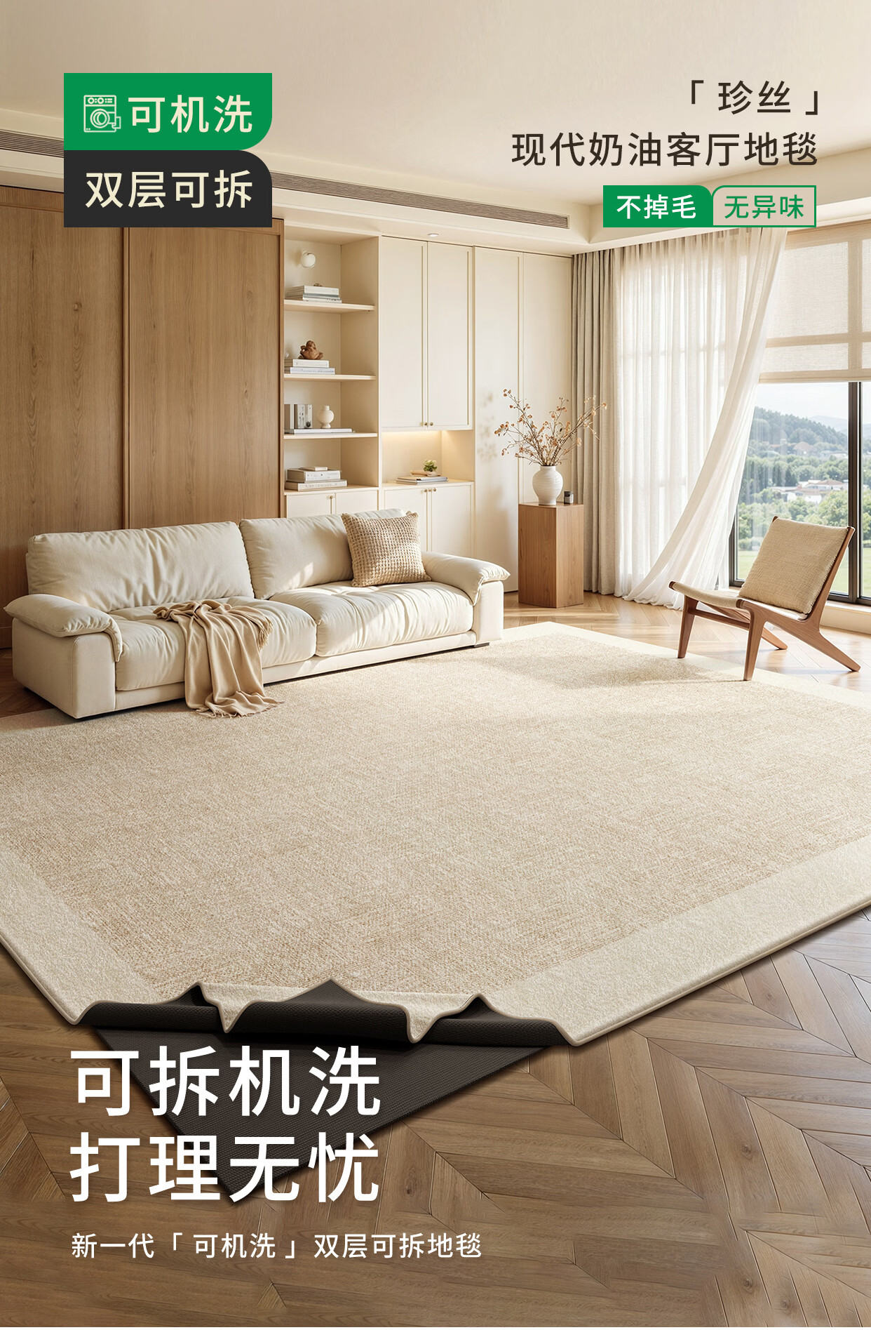 著忆可拆洗地毯客厅2026新款卧室沙发可机洗地垫轻奢高级感奶油风简约 可拆洗仿羊绒-珍丝 定制尺寸【联系客服】