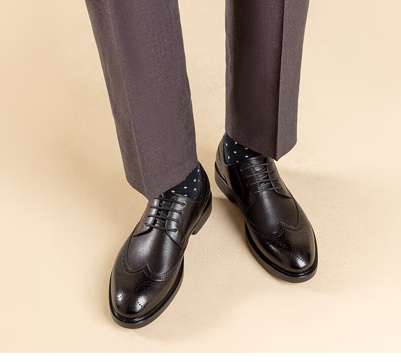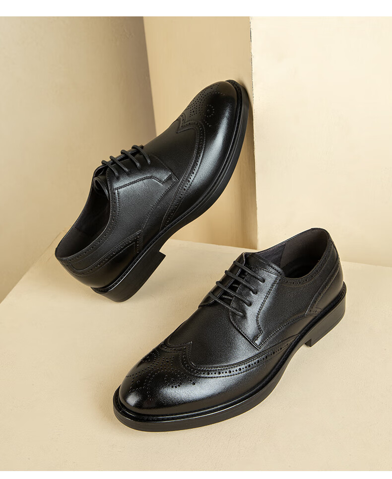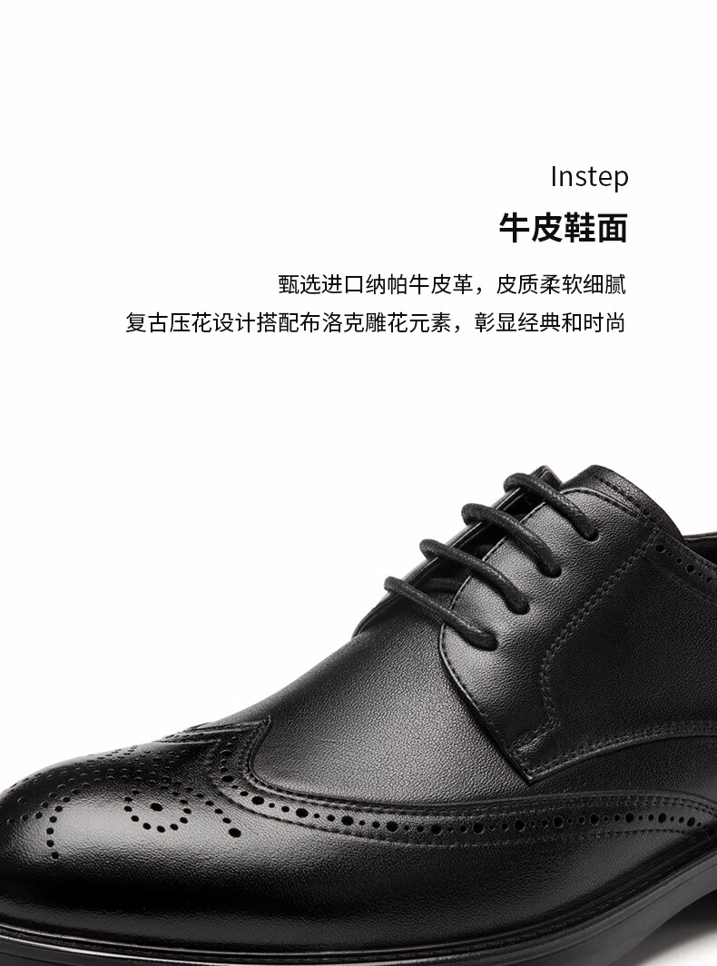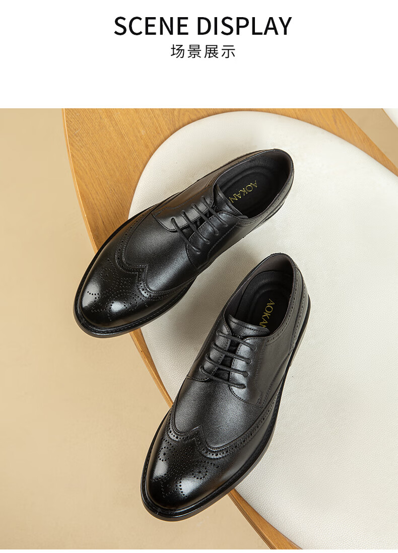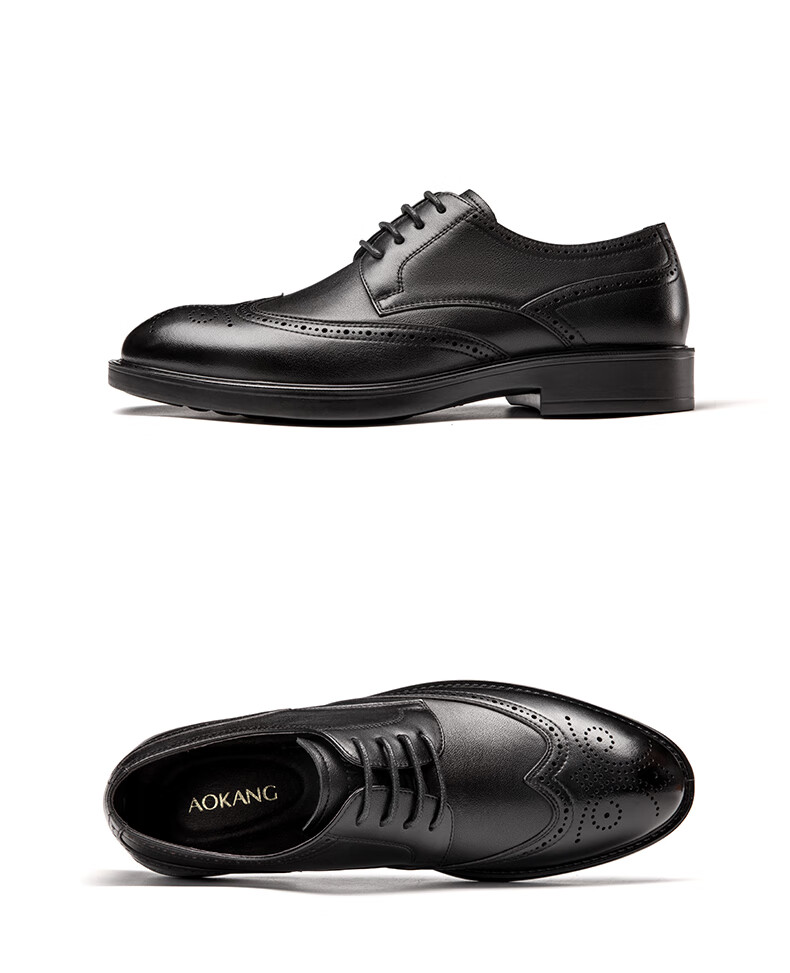 奥康(Aokang)男士商务正装皮鞋婚宴雕花牛皮布洛克鞋子黑色43码