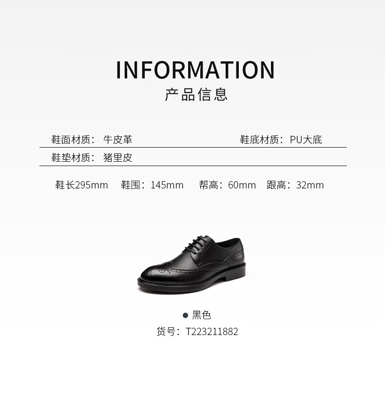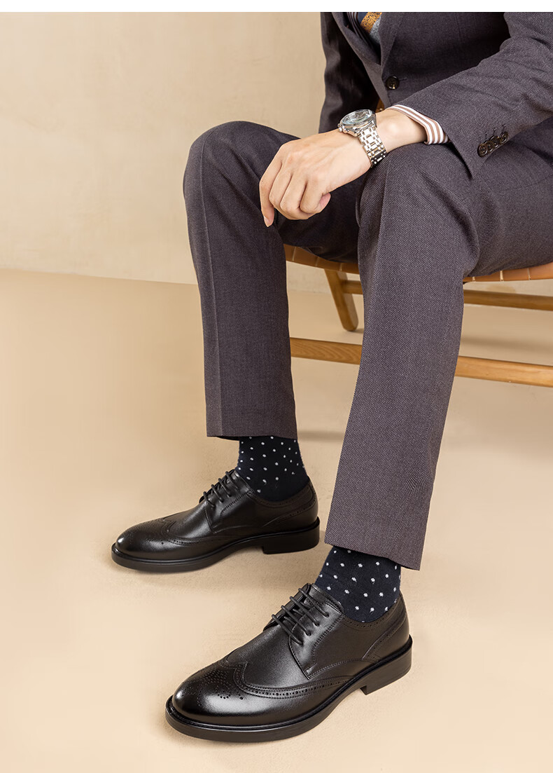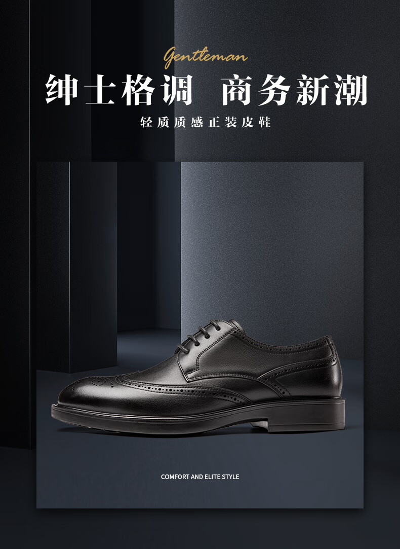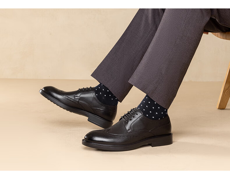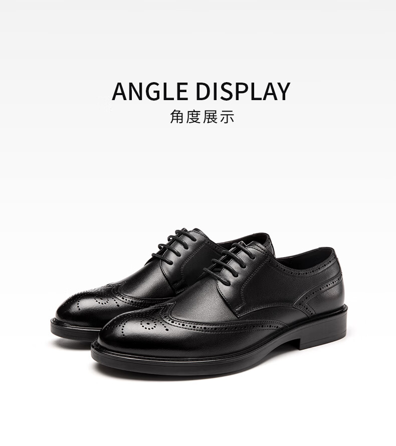 奥康(Aokang)男士商务正装皮鞋婚宴雕花牛皮布洛克鞋子黑色43码