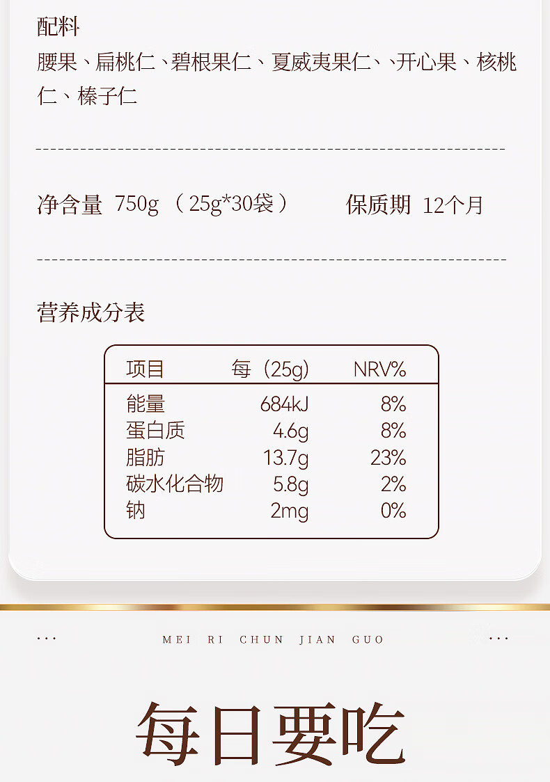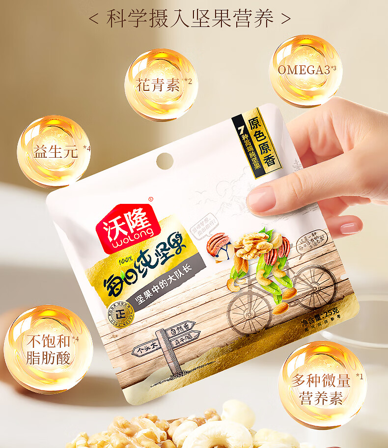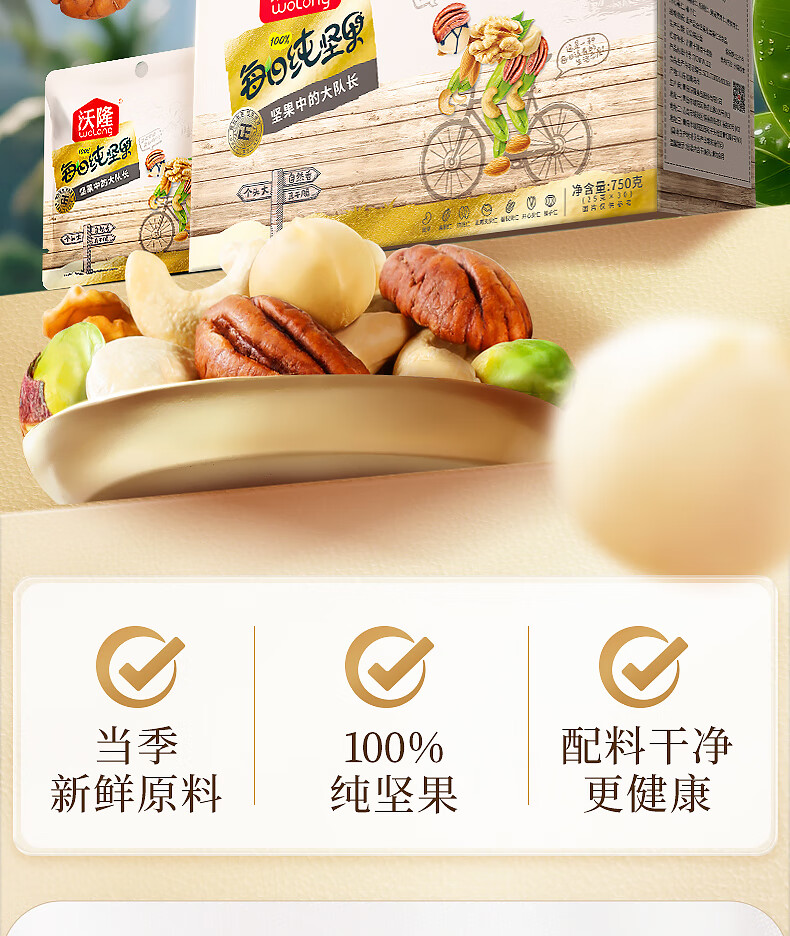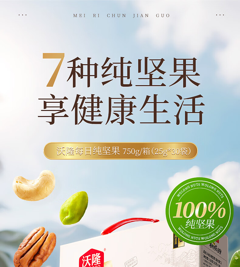 沃隆每日坚果纯坚果750g/30袋腰果开心果仁核桃0添加休闲零食礼盒年货