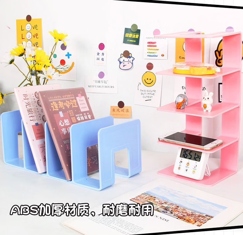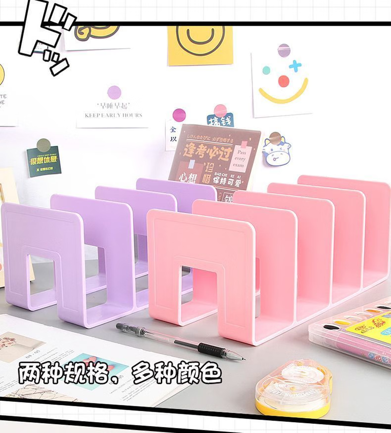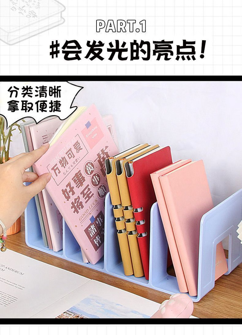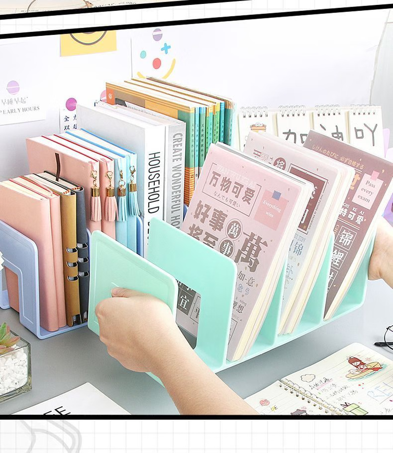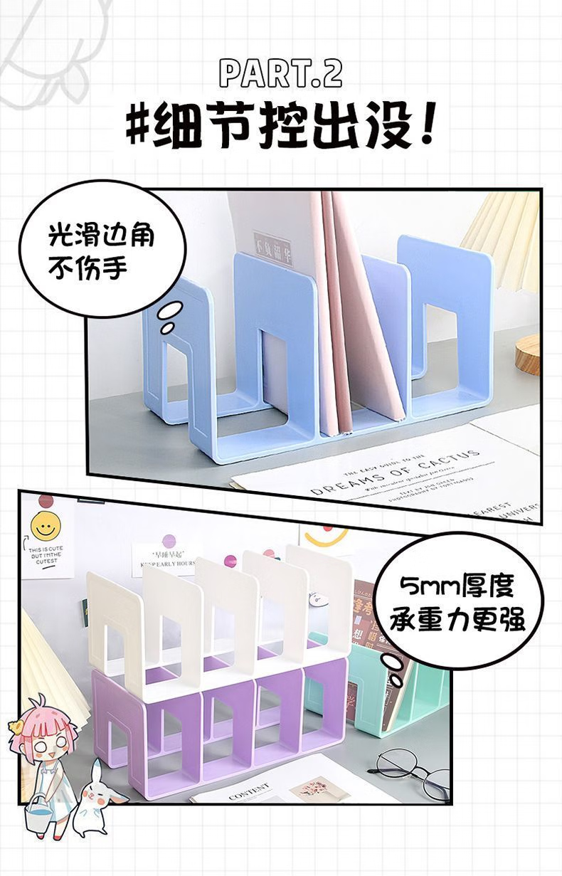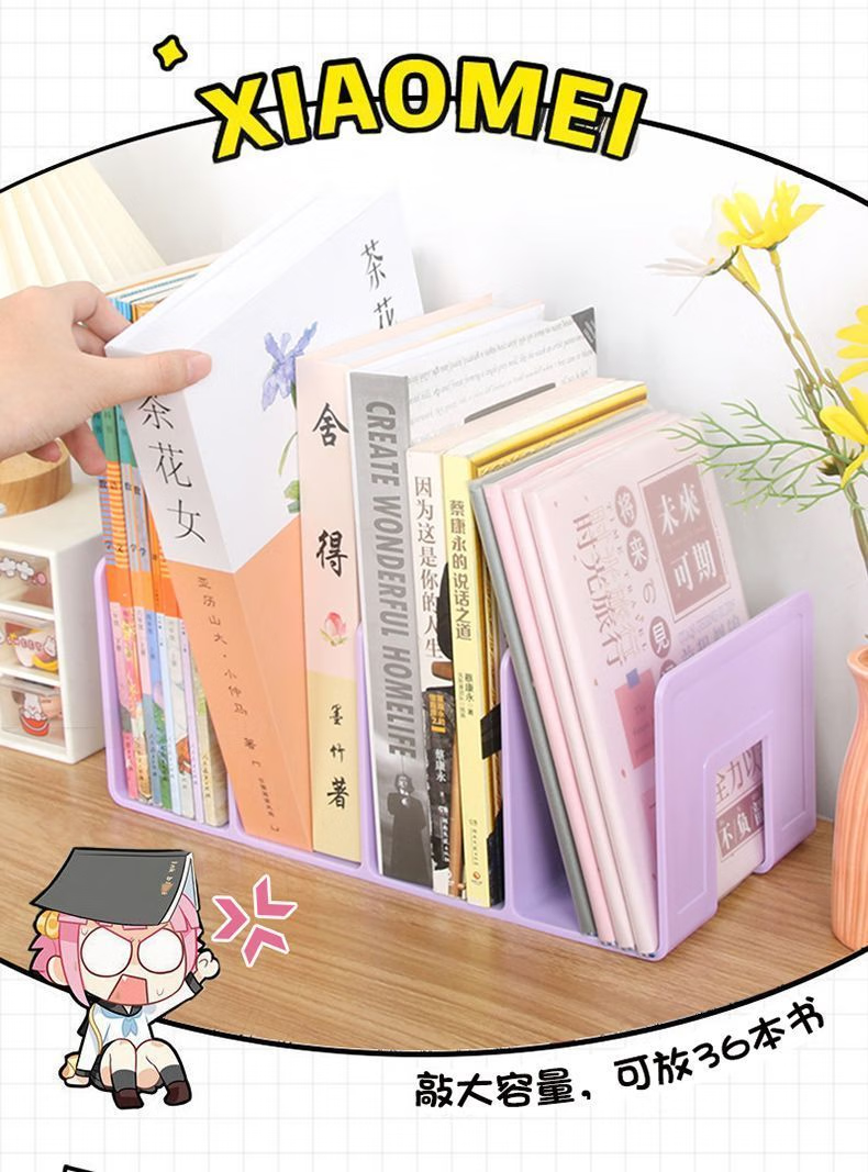 三丽鸥贴纸书立置物架桌面收纳固定书本学生书桌整理神器书夹幼儿园绘本书托学生教室学习用品 四栏透明白书立【班主任推荐特厚更耐用】