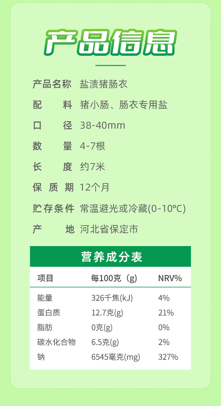 鲜窝窝 盐渍猪肠衣 天然肠衣灌香肠家用肠衣可灌10斤肉香肠腊肠烤肠衣