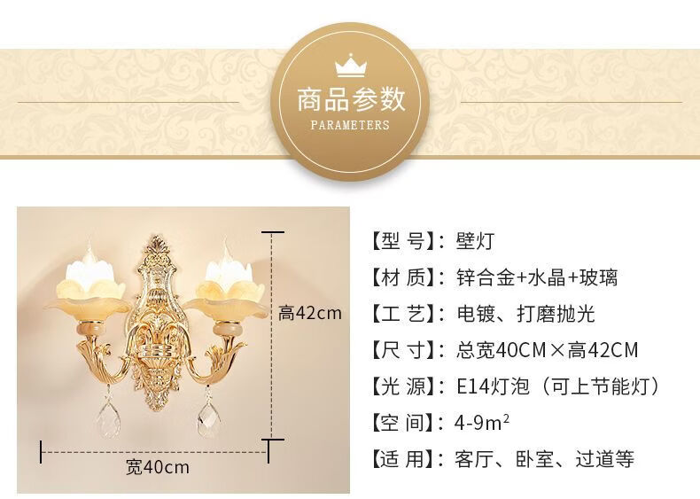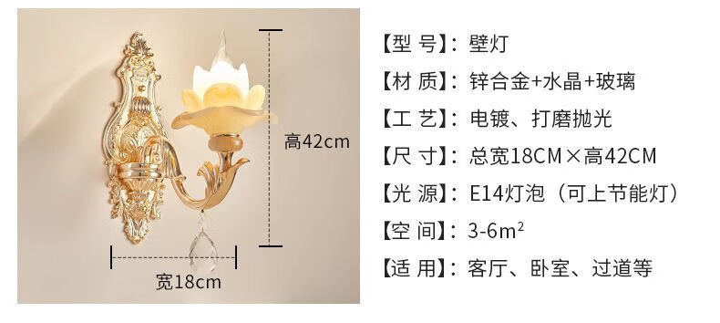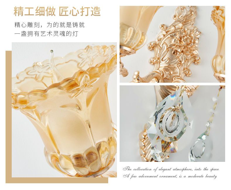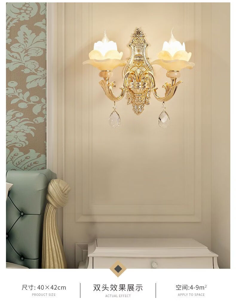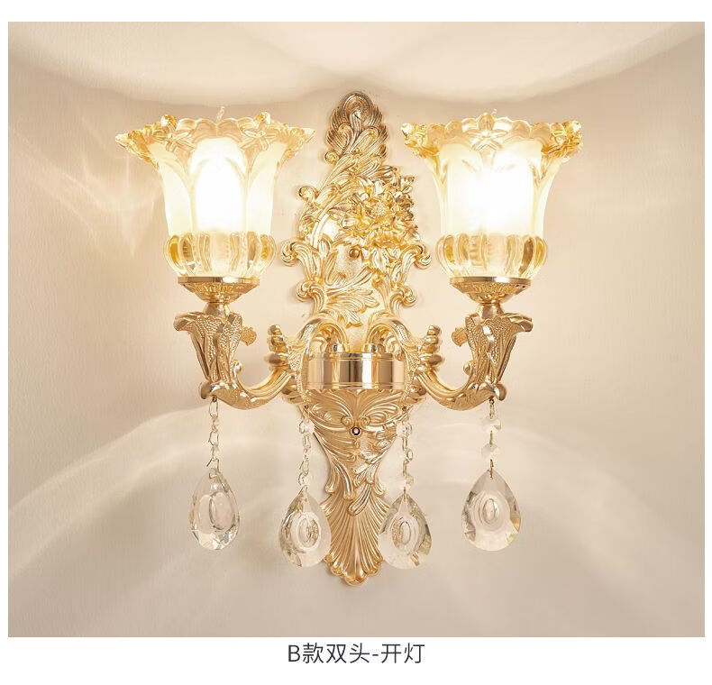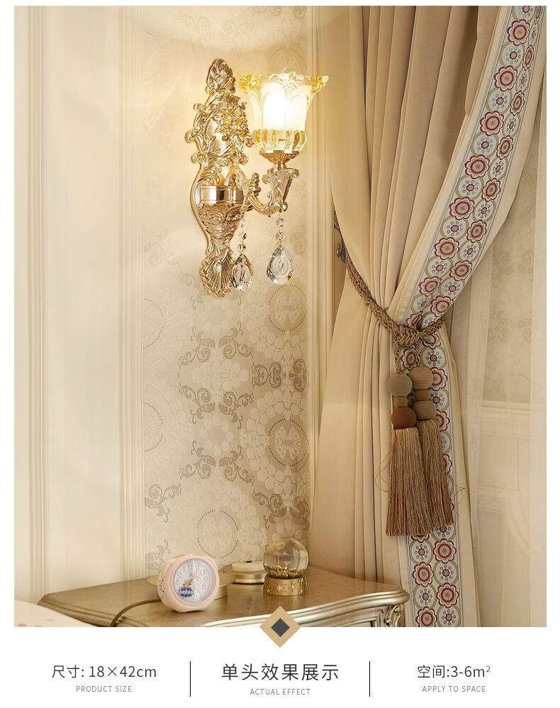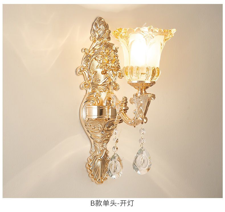 2025新款欧式水晶壁灯客厅背景墙灯楼梯卧室床头灯过道复古墙壁灯 单头农村自建房楼梯灯