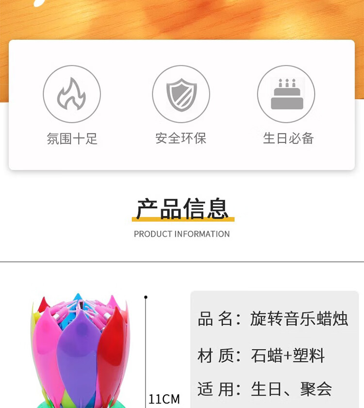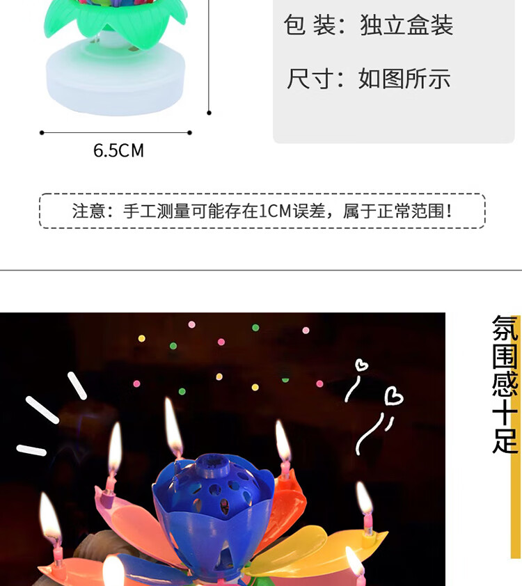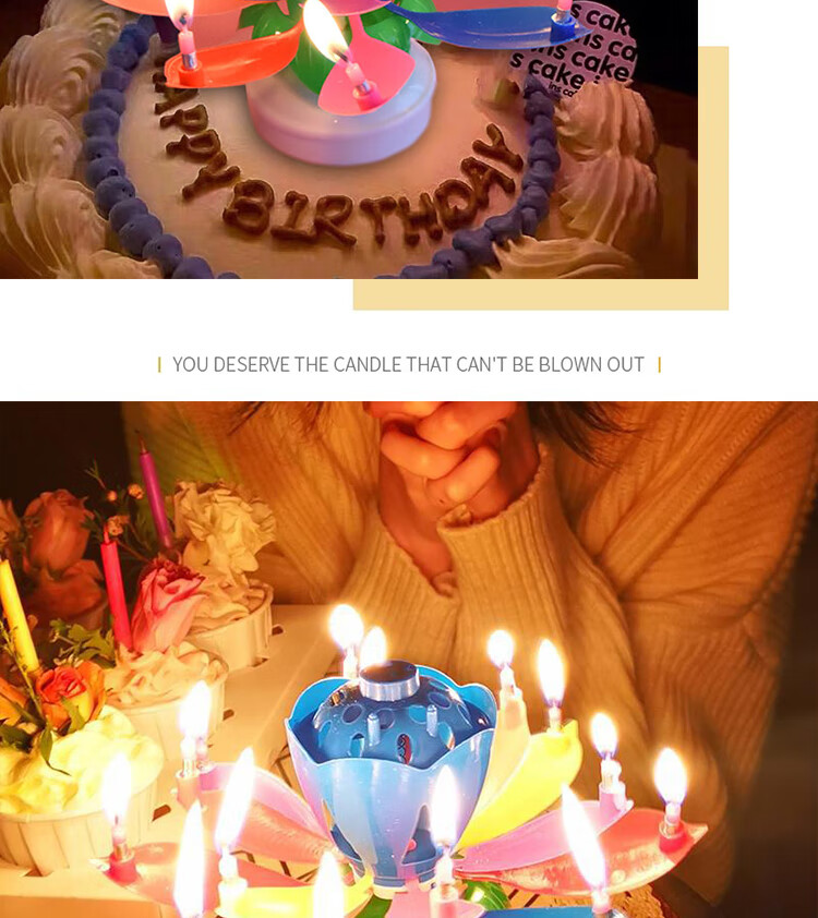 宫薰莲花生日蜡烛蛋糕用儿童荷花家用会开花旋转音乐唱歌创意