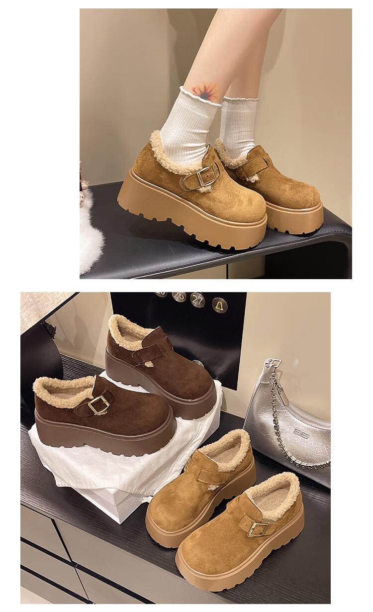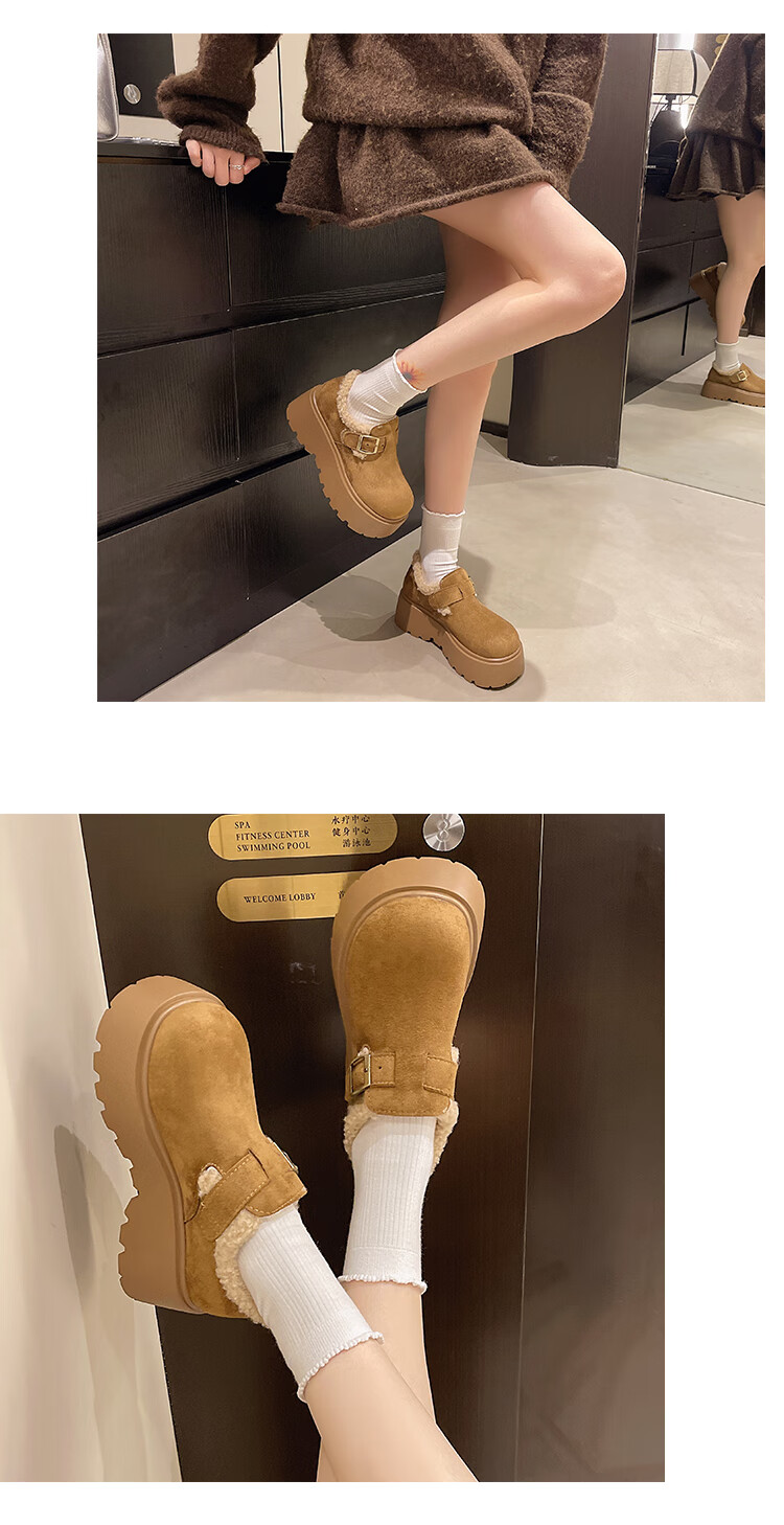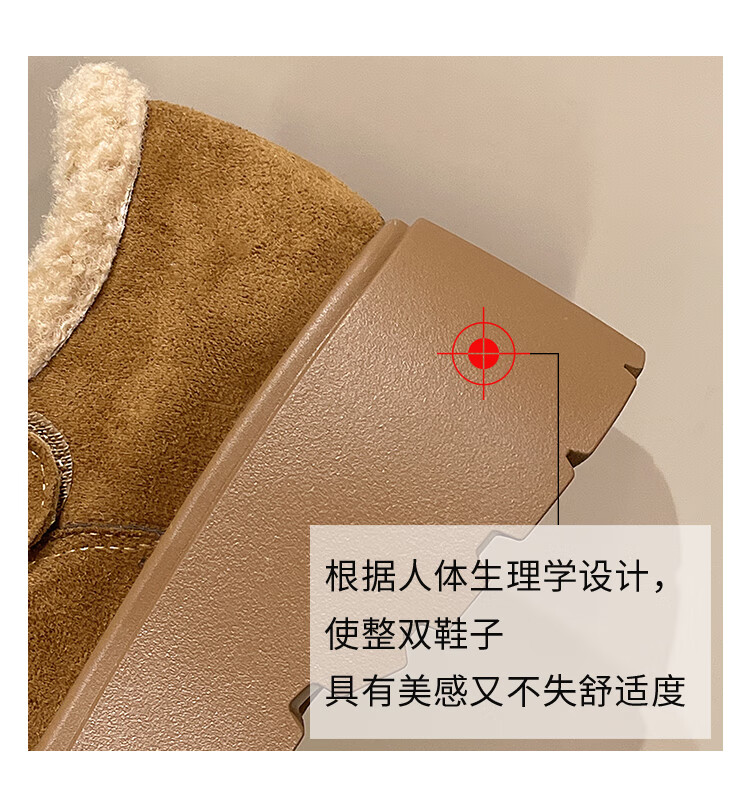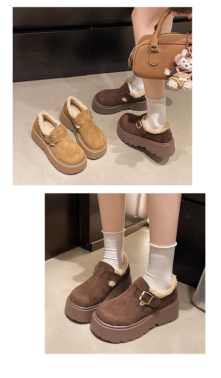稻草人(MEXICAN)厚底增高勃肯鞋女雪地靴2026新款秋冬加绒面包鞋子保暖东北大棉鞋 驼色 6厘米跟高 35