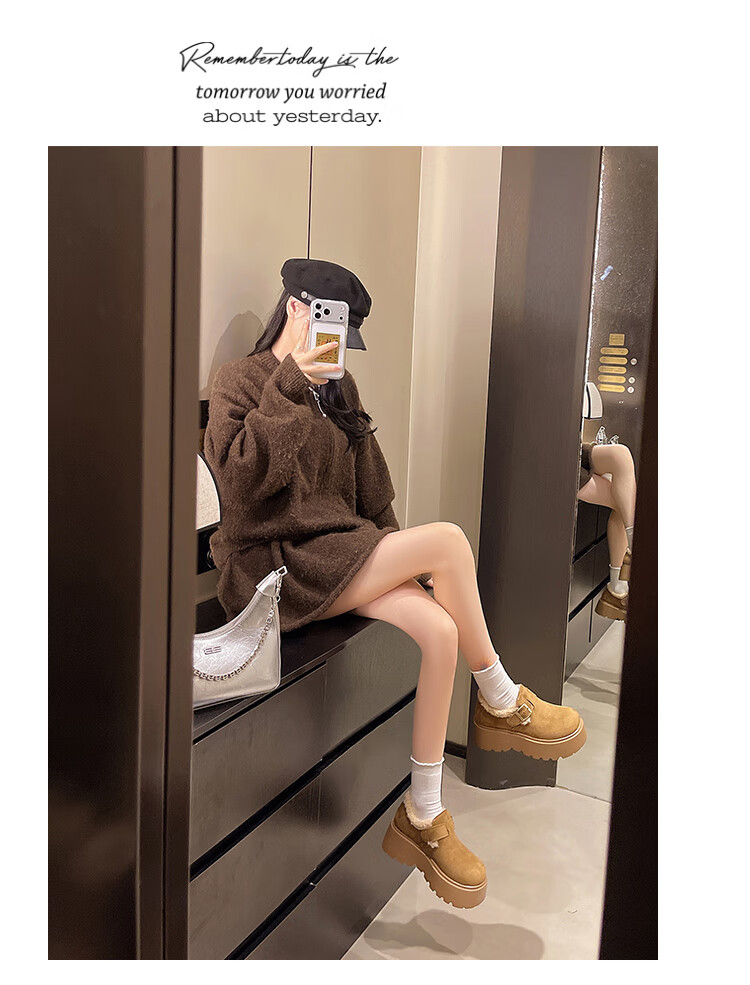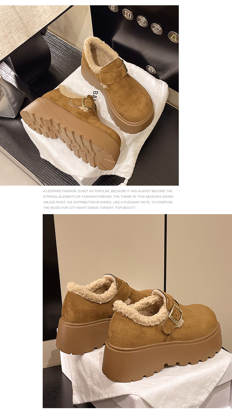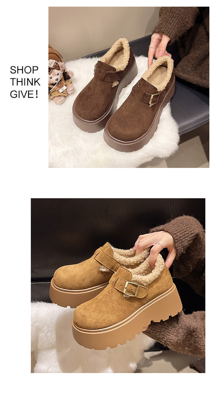 稻草人(MEXICAN)厚底增高勃肯鞋女雪地靴2026新款秋冬加绒面包鞋子保暖东北大棉鞋 驼色 6厘米跟高 35