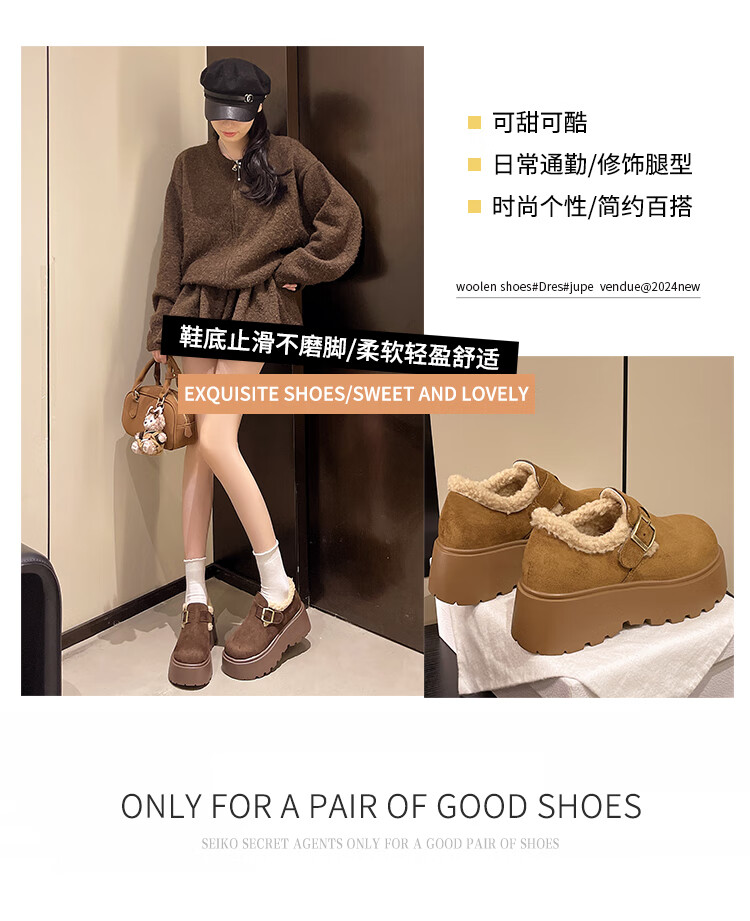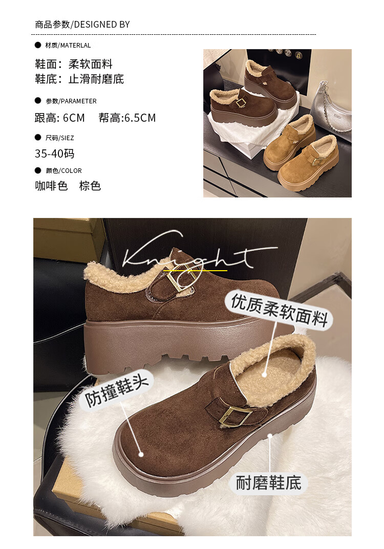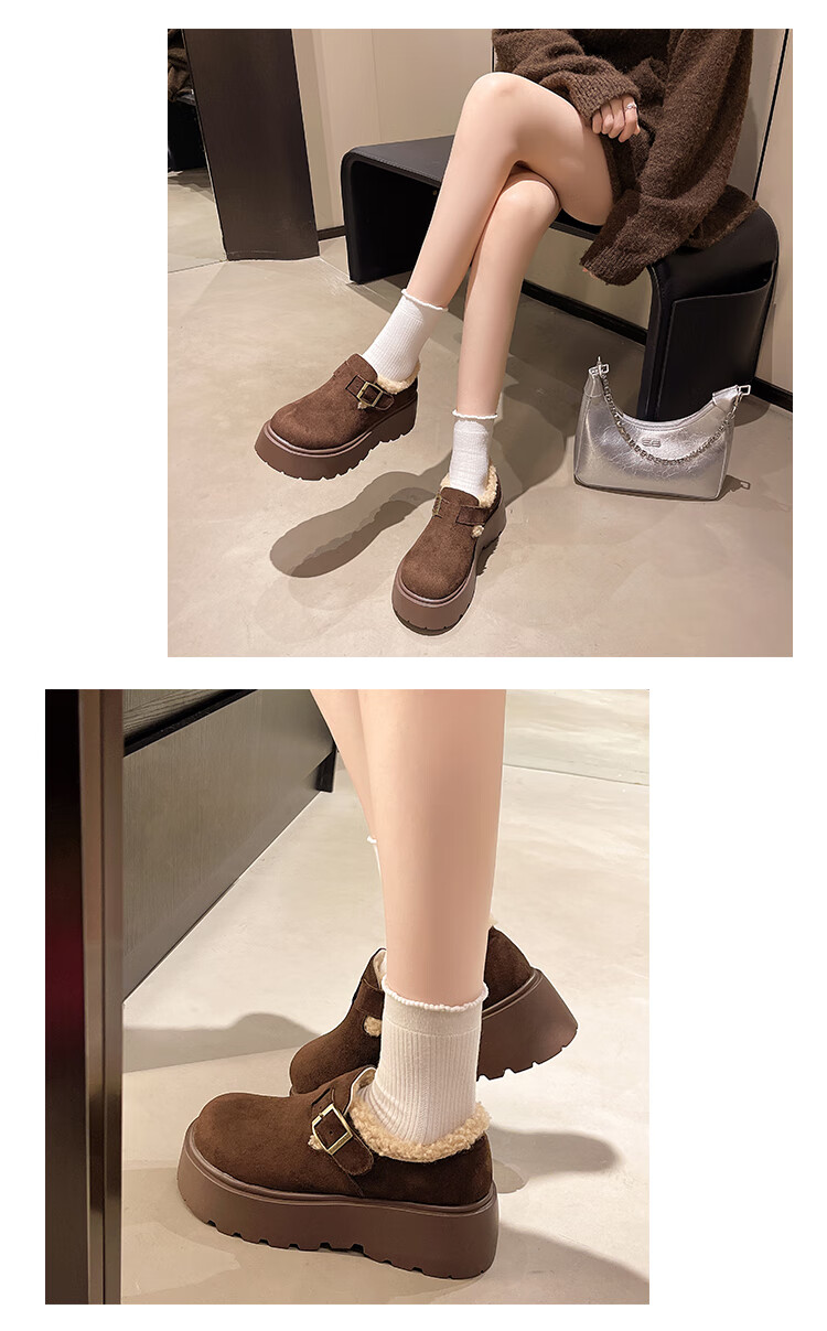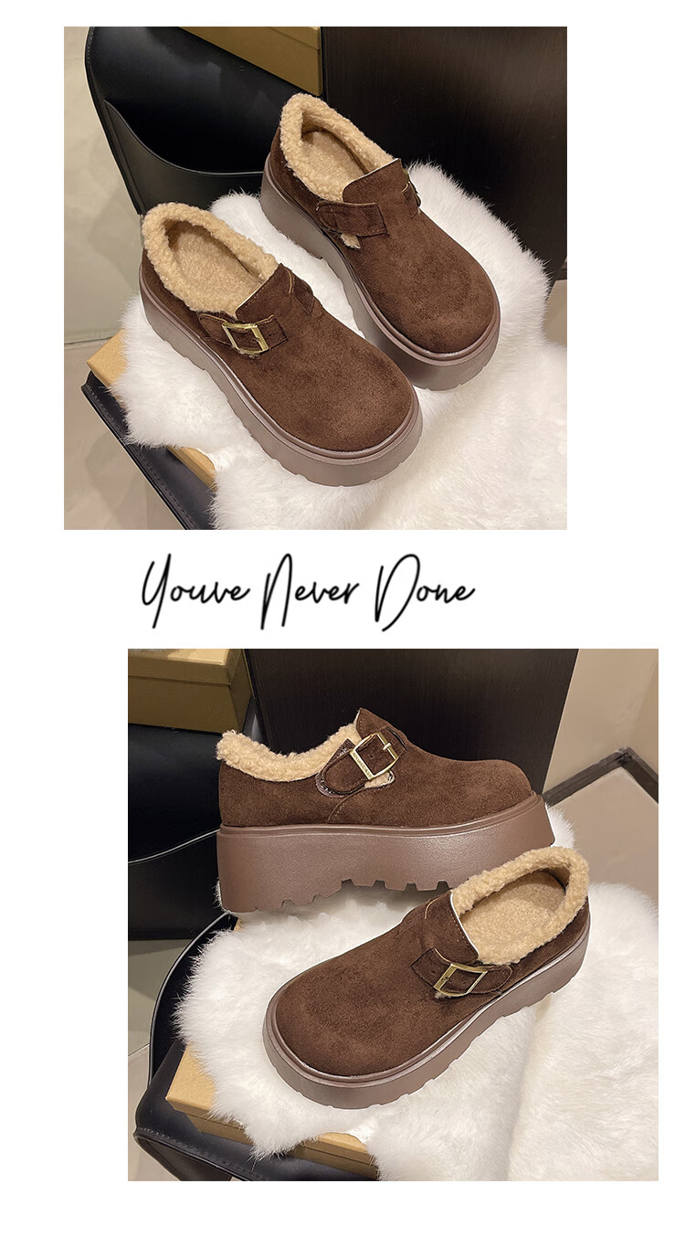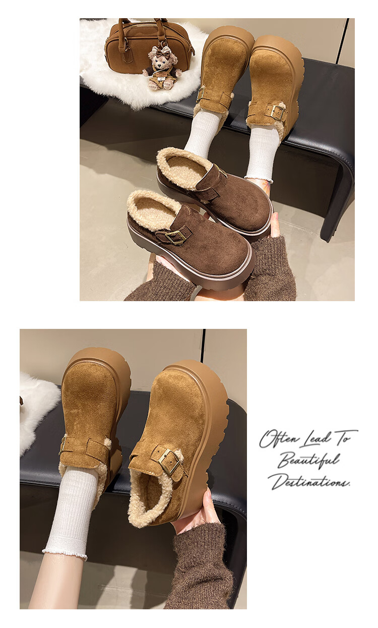 妙丽勃肯鞋女厚底复古加绒时尚保暖潮流2025冬季新款包头半拖鞋 咖色 37 (235mm) 标准码