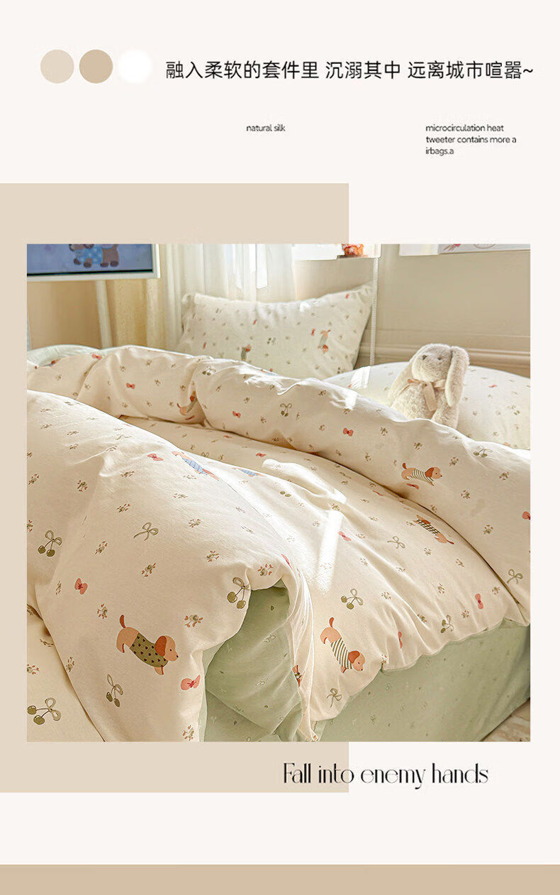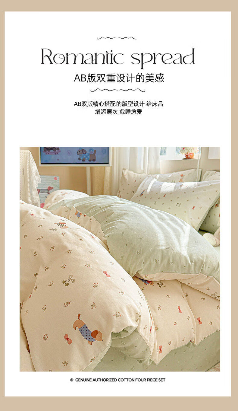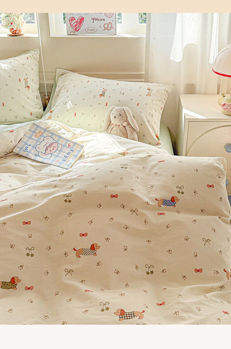 猫人(MiiOW)纯棉卡通床上四件套全棉床单被套罩单双人学生宿舍床品三件套 贪睡猫【精梳全棉丨亲肤裸睡】 0.9m 床单款 三件套-150*200cm被套