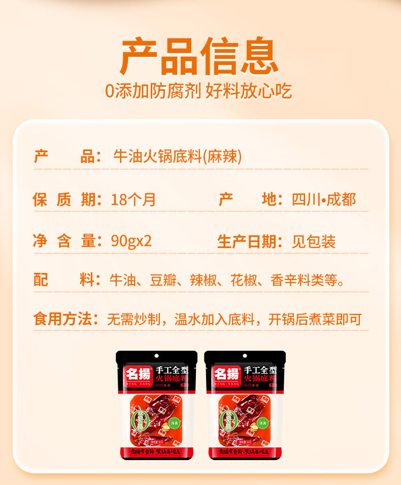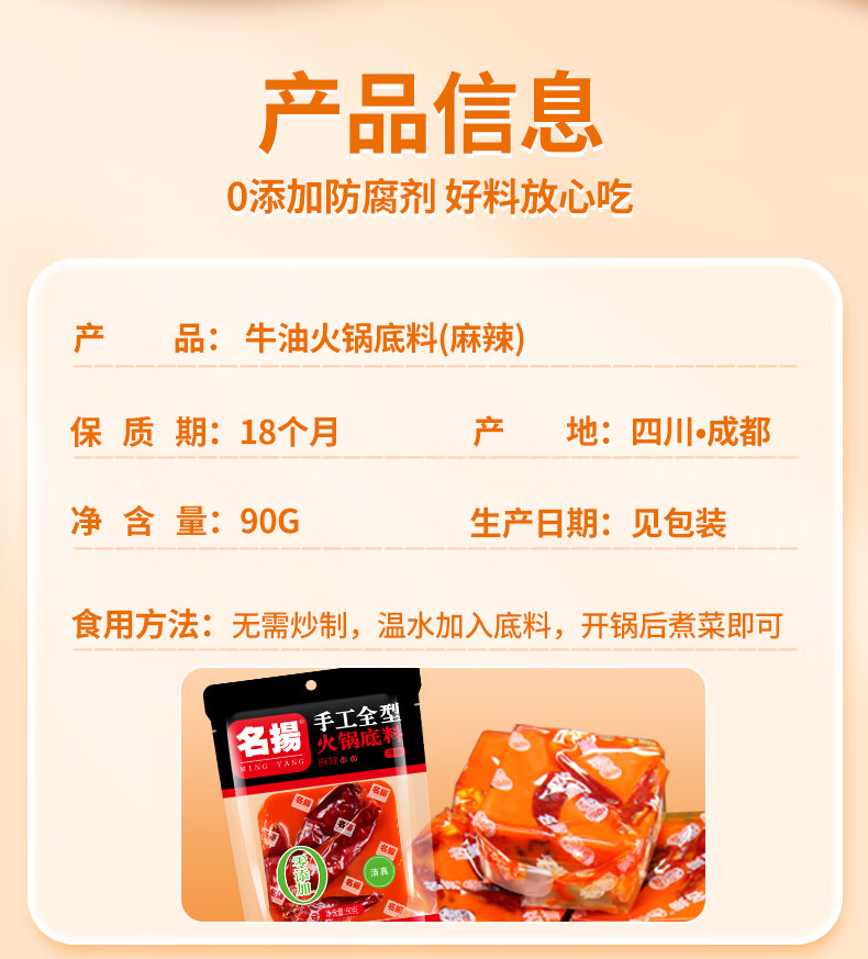 名揚 名扬牛油麻辣底料火锅底料90g手工全型麻辣烫冒菜调料品一料多用 牛油麻辣90g*2
