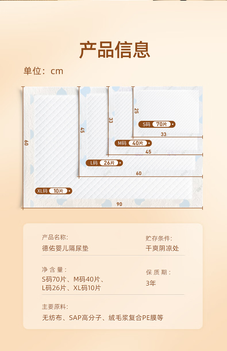 德佑企鹅宝宝隔尿垫一次性婴儿护理垫M码33*45cm40片姨妈垫吸水不反渗