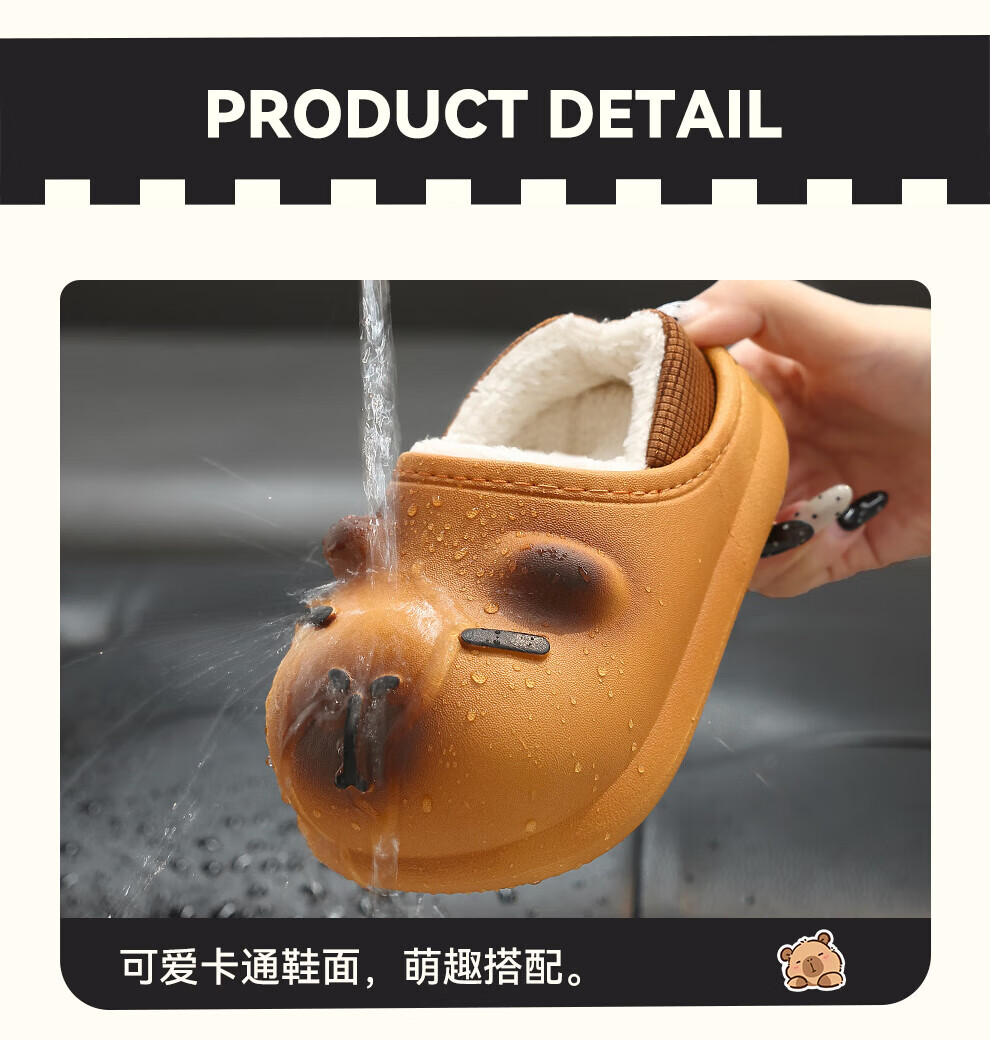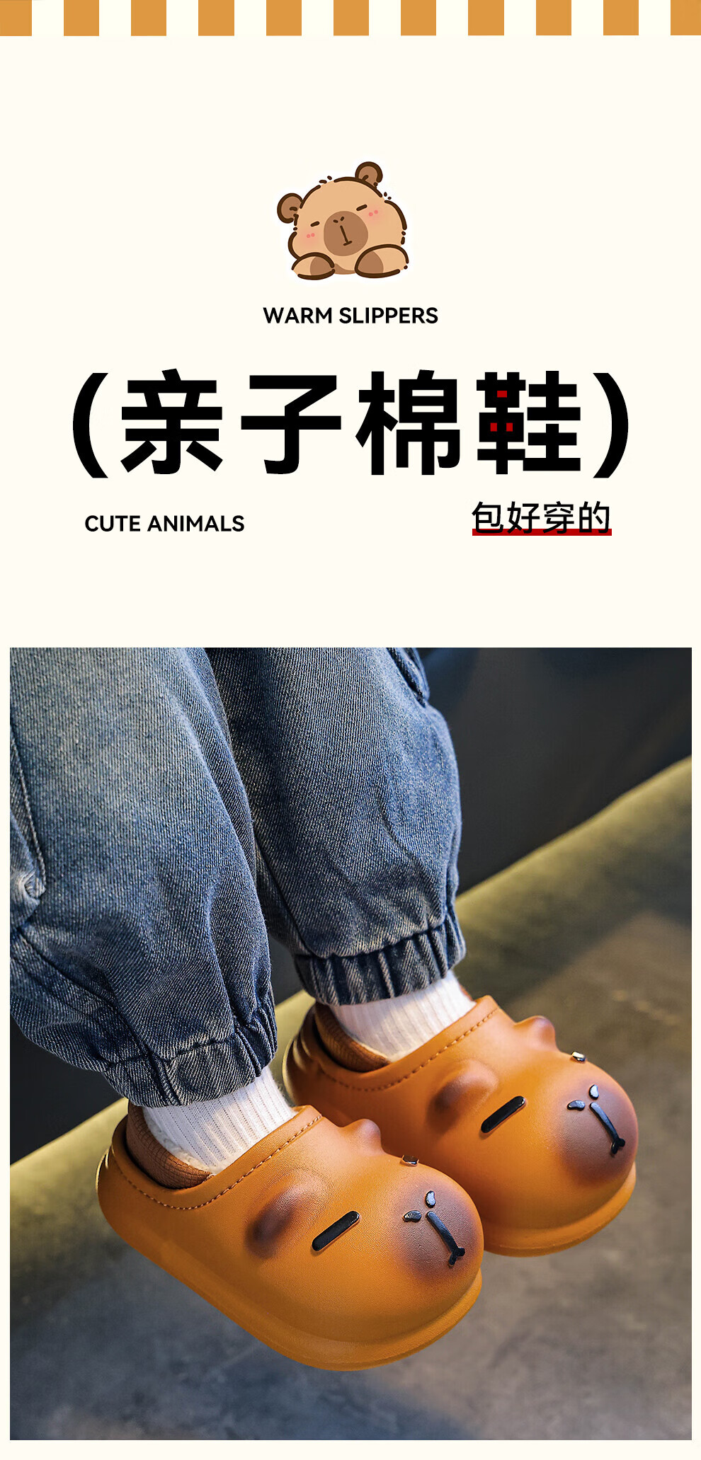 FZT包跟棉拖鞋女士秋冬季2025新款卡皮巴拉亲子居家可外穿防水棉鞋女 橘色 36-37 正码