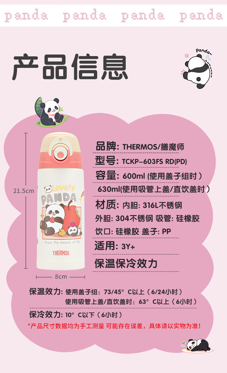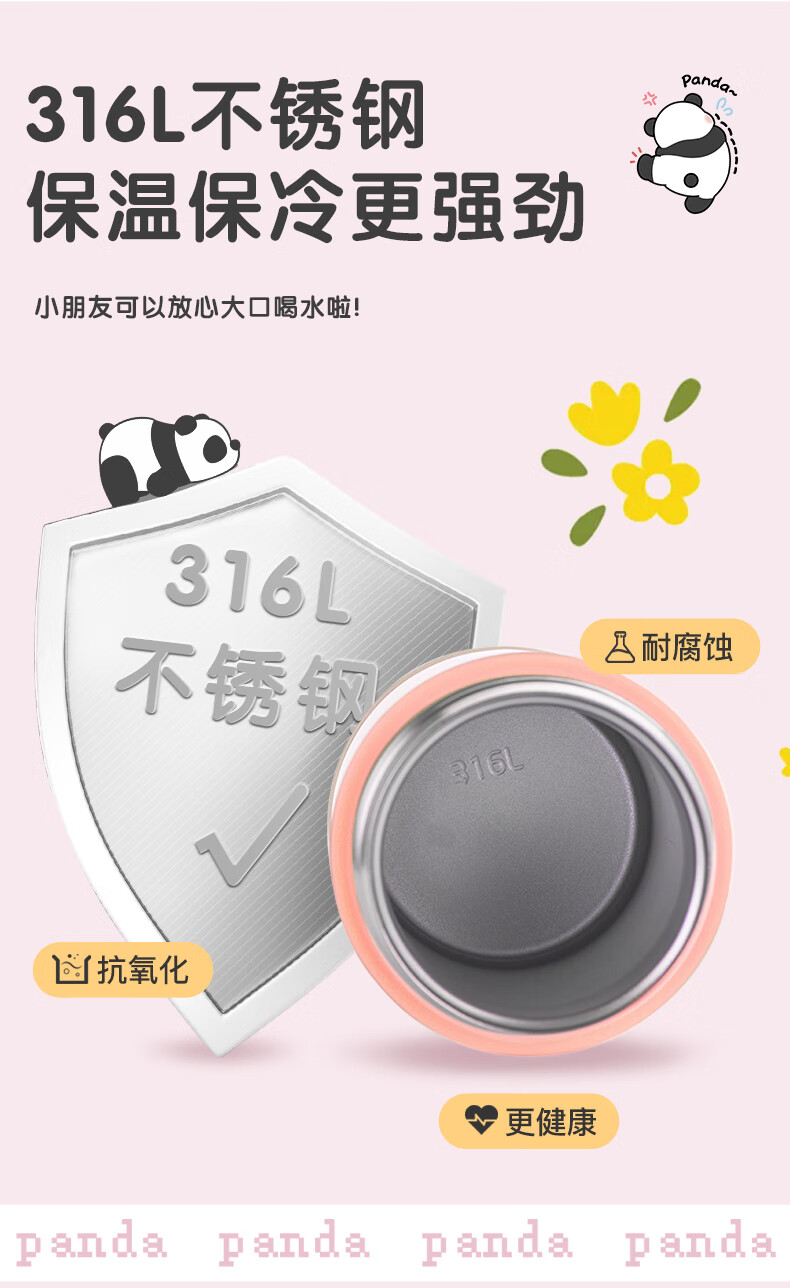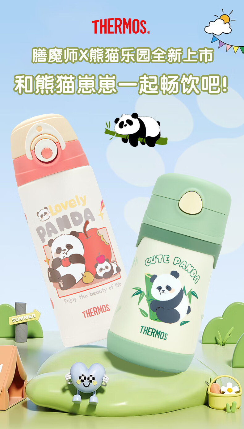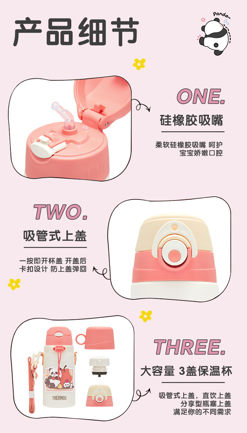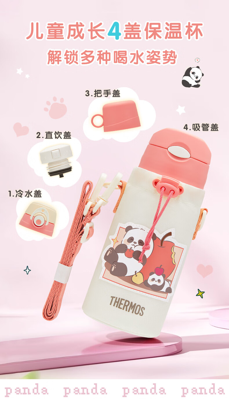 膳魔师(THERMOS)儿童保温杯316L不锈钢杯套吸管直饮杯多盖学生水壶上学TCKP
