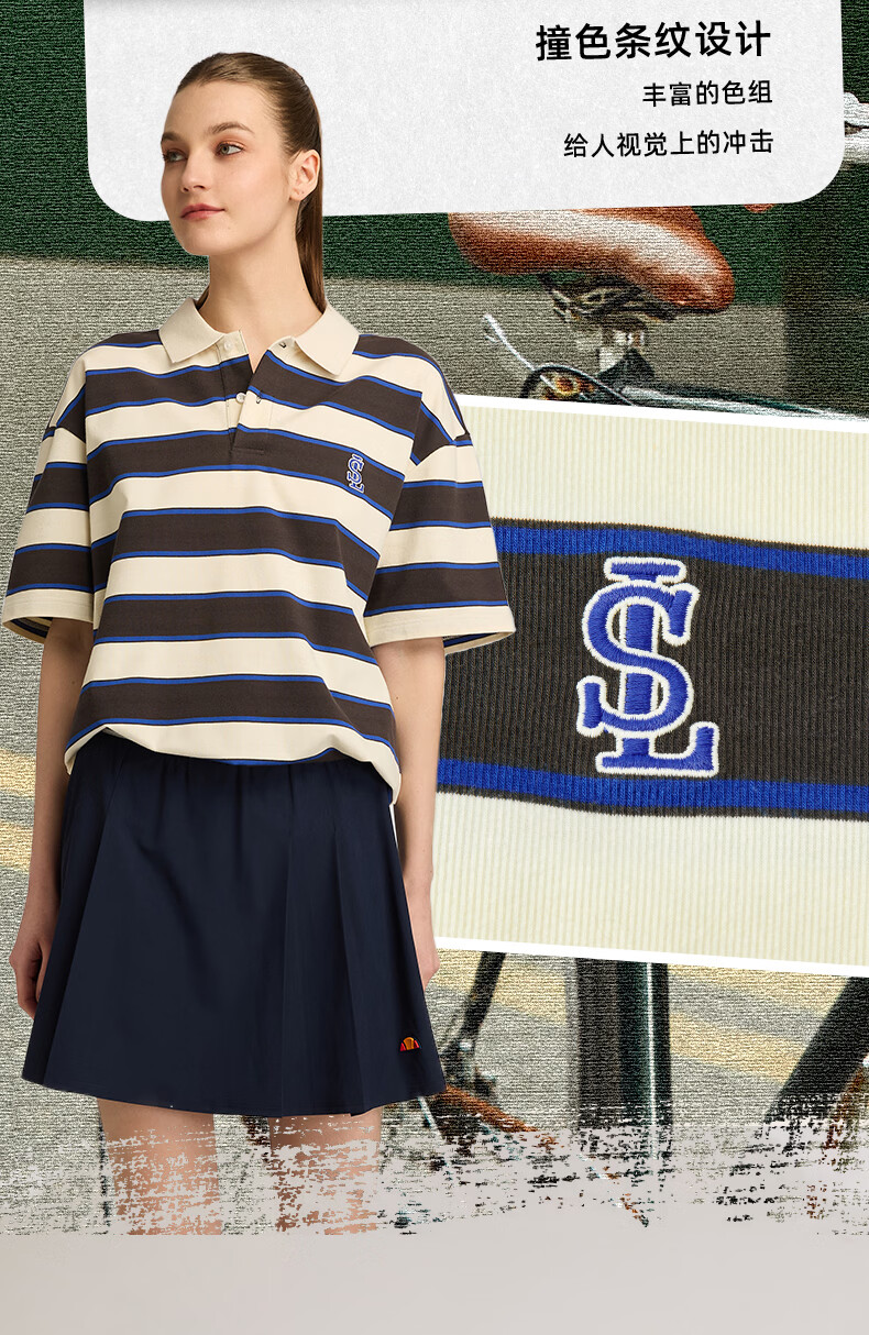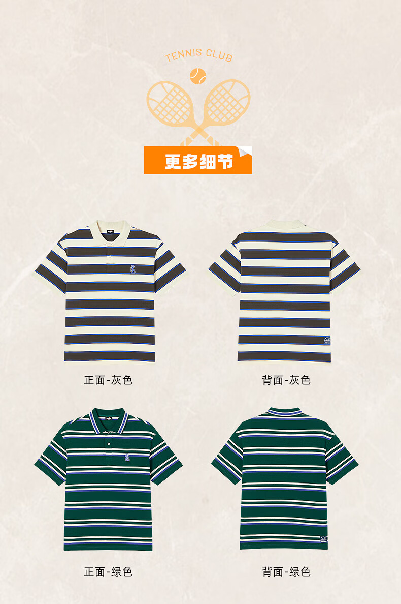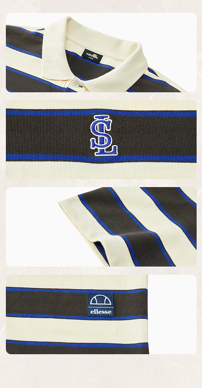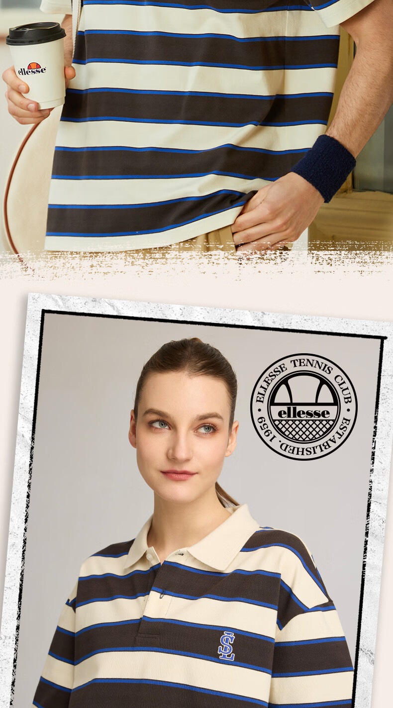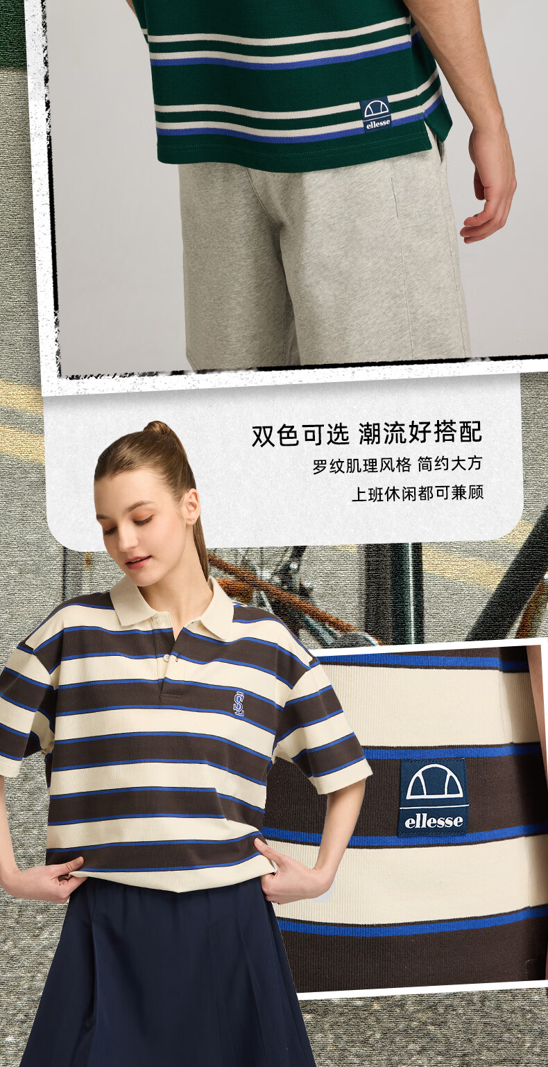 ellesse小贝壳官方POLO衫男24夏季新款宽松上衣条纹T恤女 灰色 S