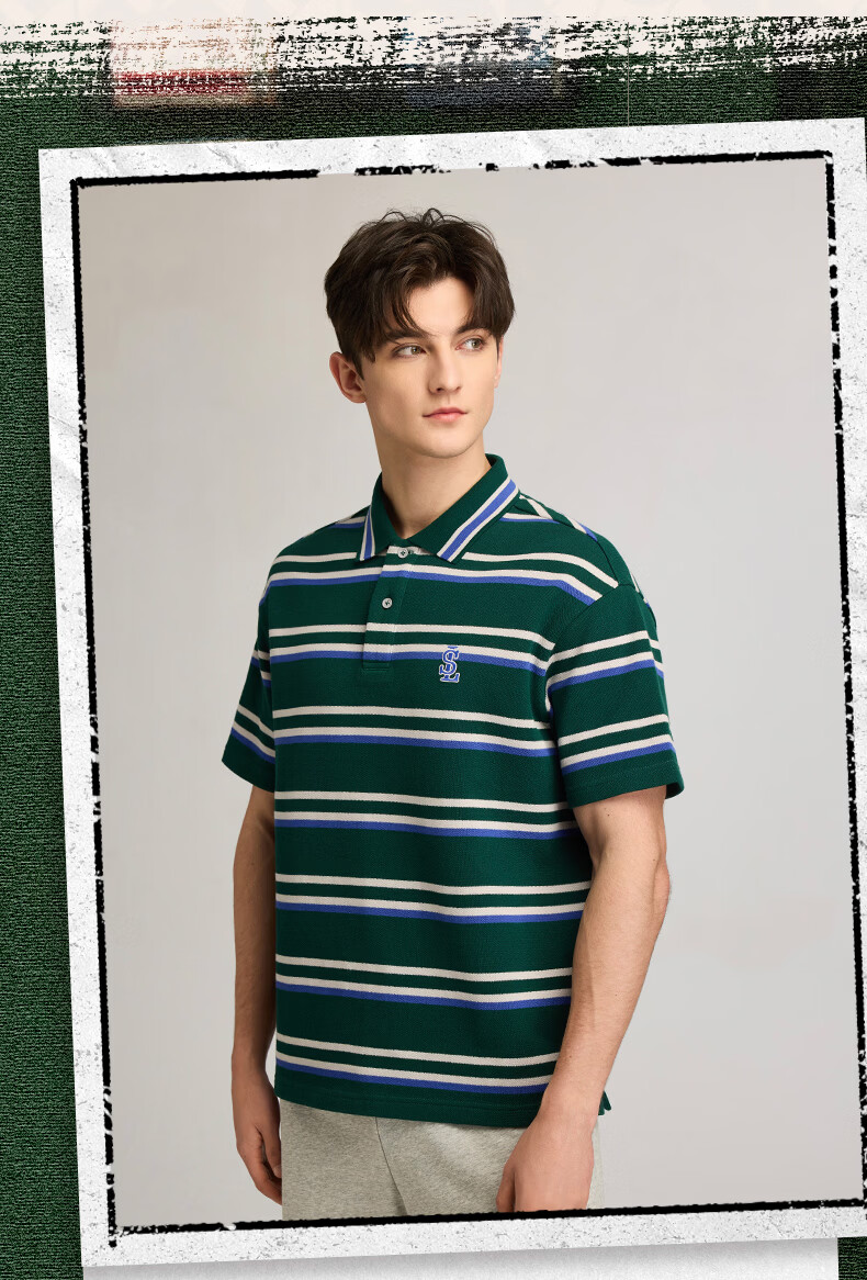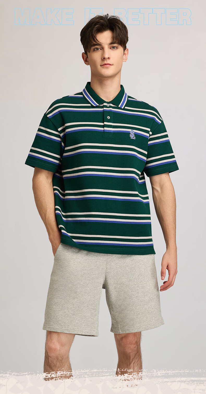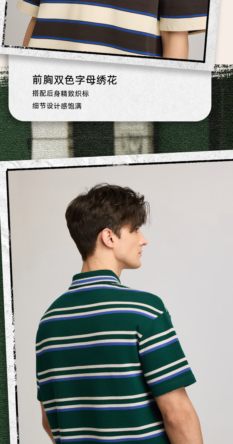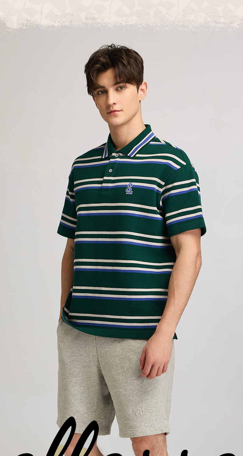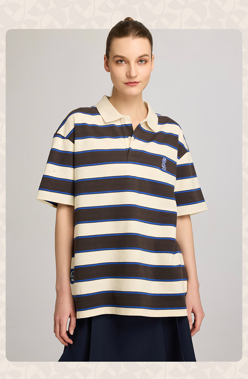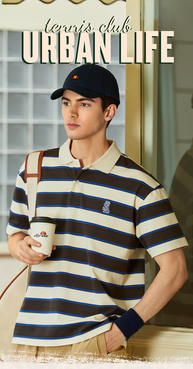 ellesse小贝壳官方POLO衫男24夏季新款宽松上衣条纹T恤女 灰色 S
