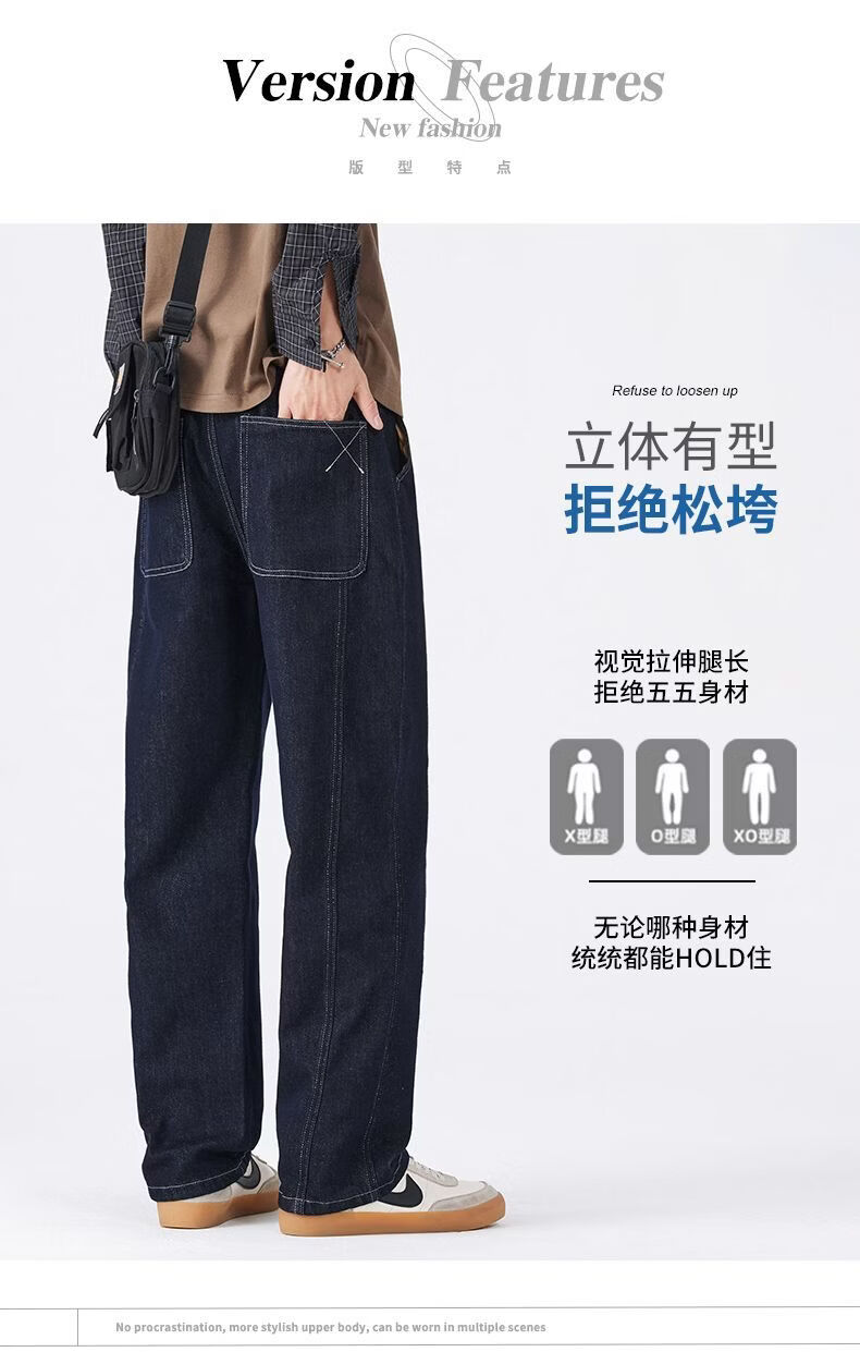真维斯(Jeanswest)真维斯春秋美式复古水洗牛仔裤男潮牌新款百搭垂感宽松直筒休闲裤 原色蓝 28