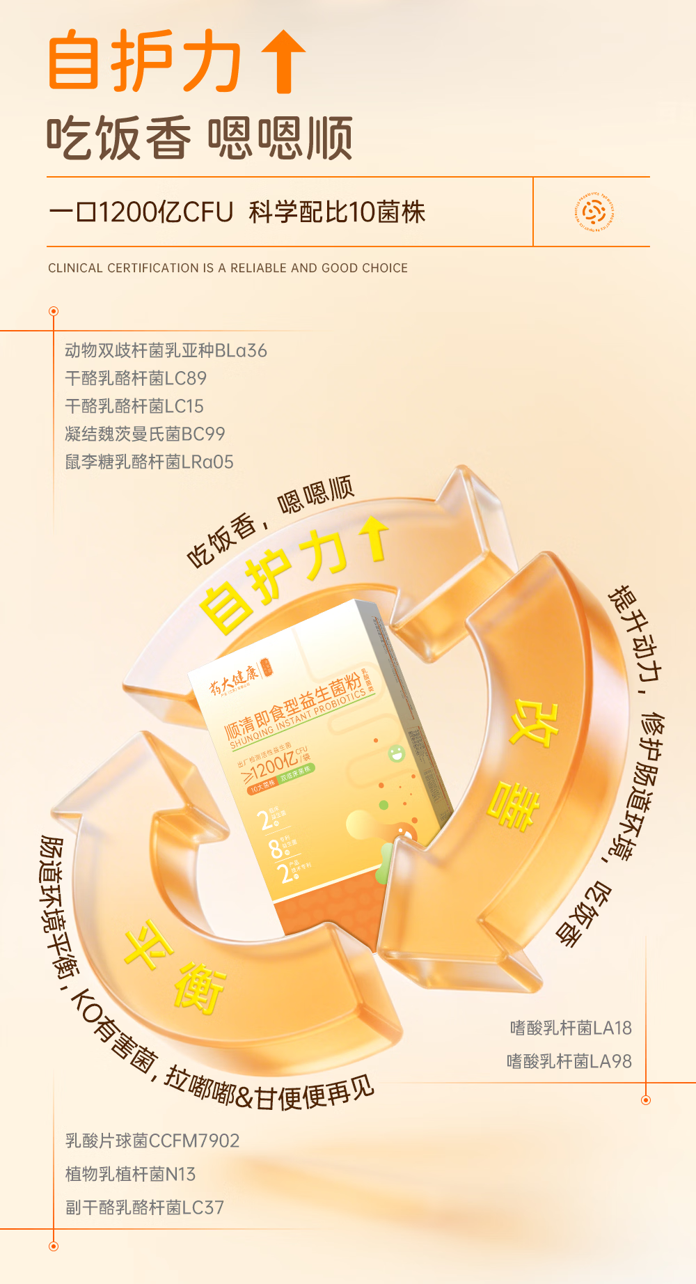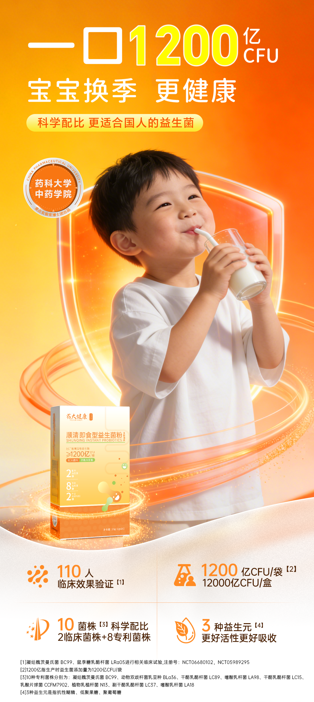 药大健康1200亿益生菌粉顺清儿童防护力 复合10菌株2临床菌株8专利菌株 买4送3【到手7盒】 10袋*4盒