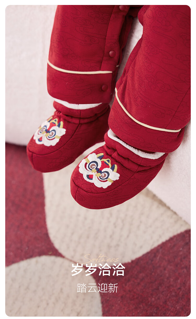 babylove婴儿加绒脚套红色护脚新年袜套冬季过年宝宝鞋套岁岁洽洽 岁岁洽洽 6-12个月