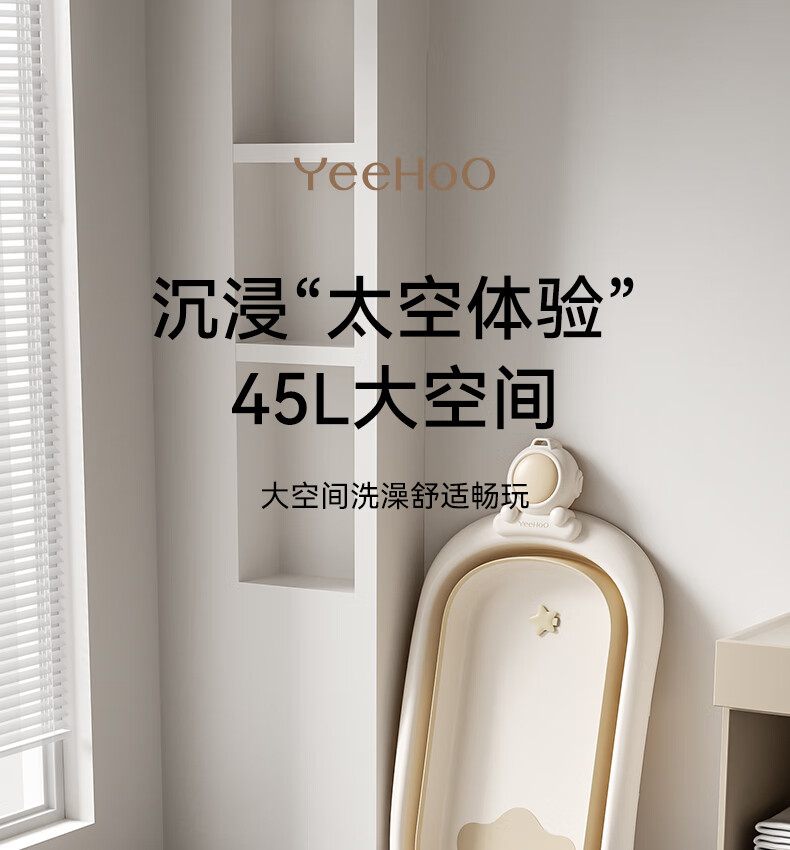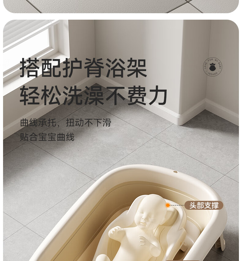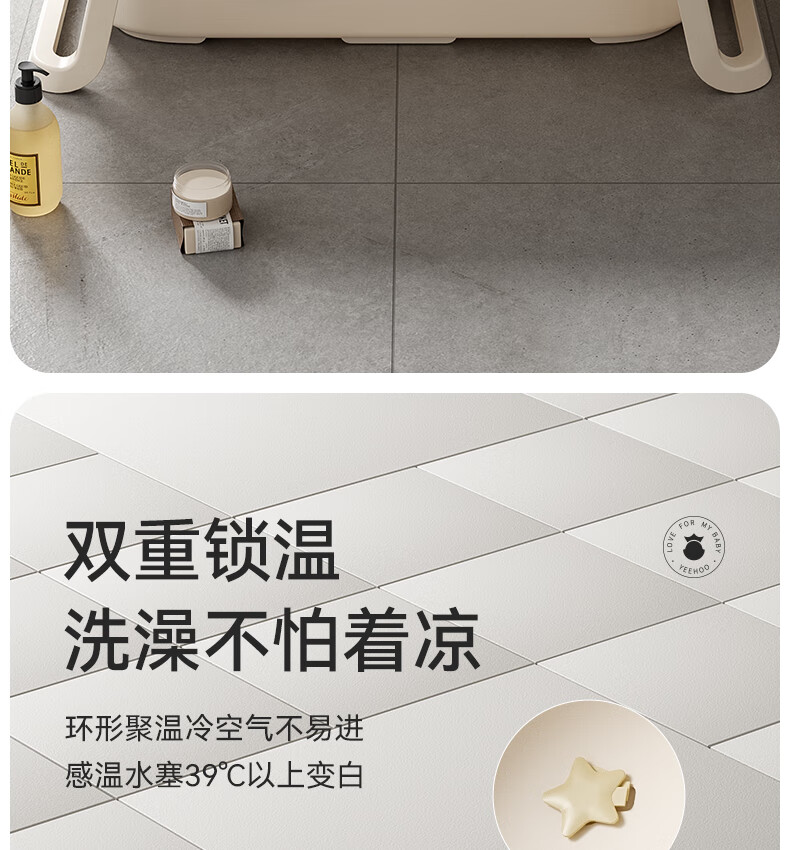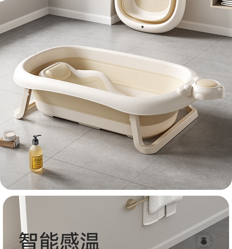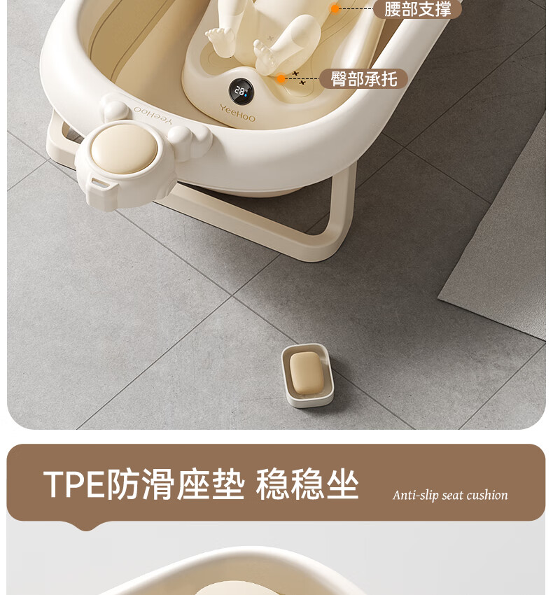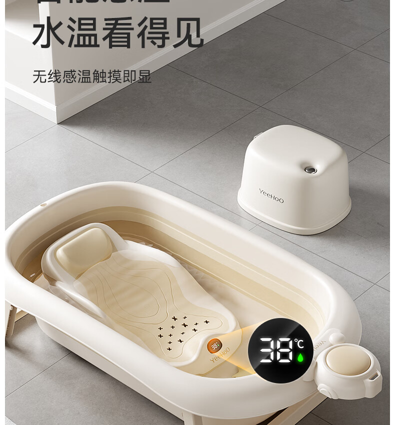英氏(YEEHOO)婴儿洗澡盆可坐躺幼儿家用感温浴盆新生儿童小孩可折叠沐浴桶 折叠浴盆