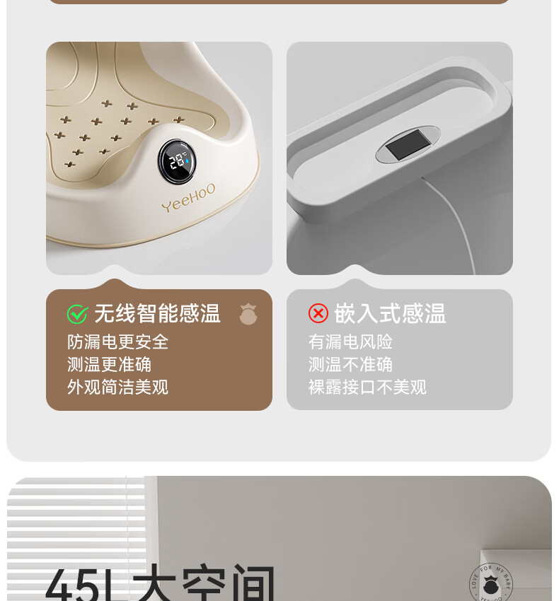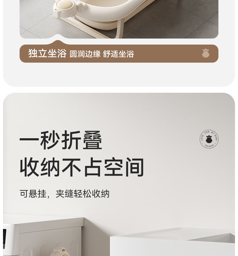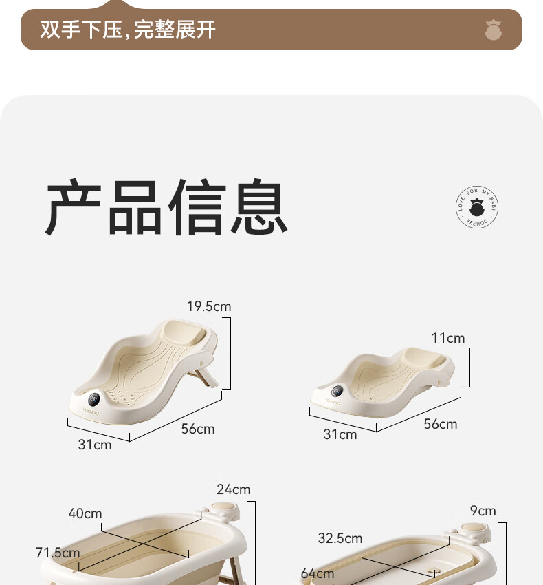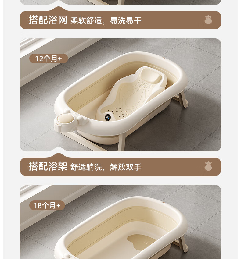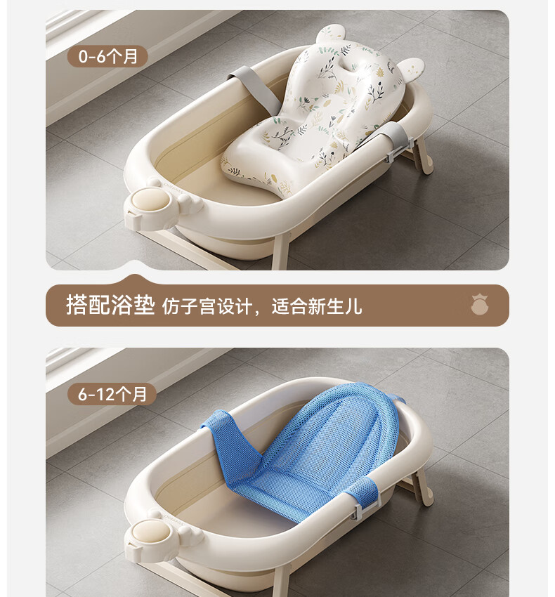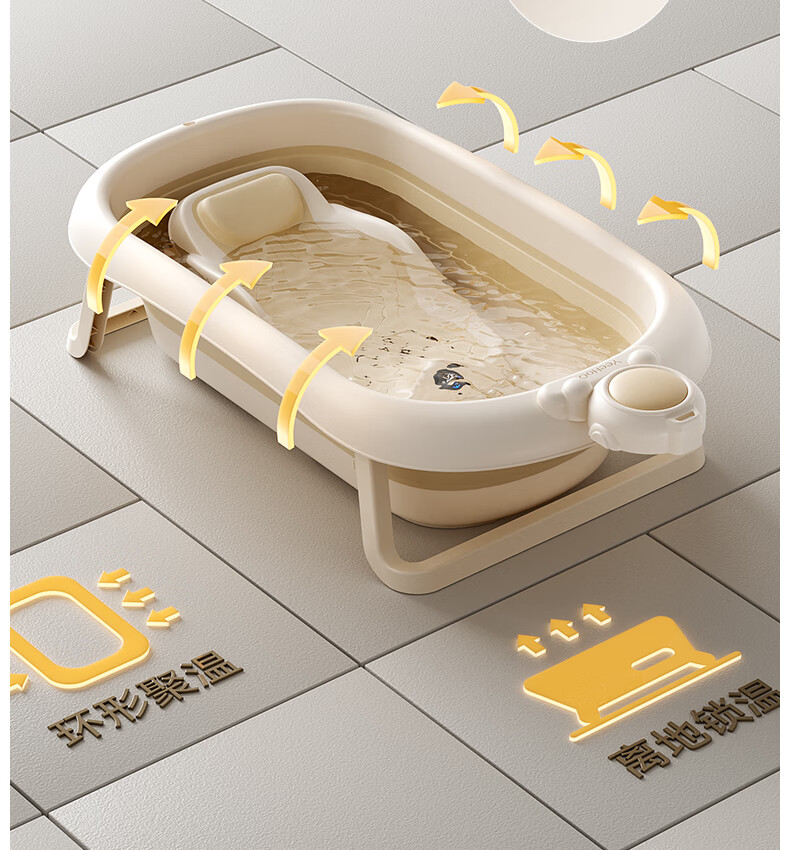 英氏(YEEHOO)婴儿洗澡盆可坐躺幼儿家用感温浴盆新生儿童小孩可折叠沐浴桶 折叠浴盆
