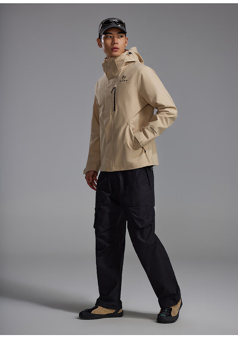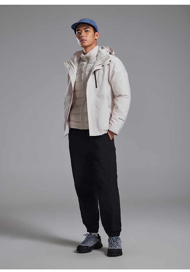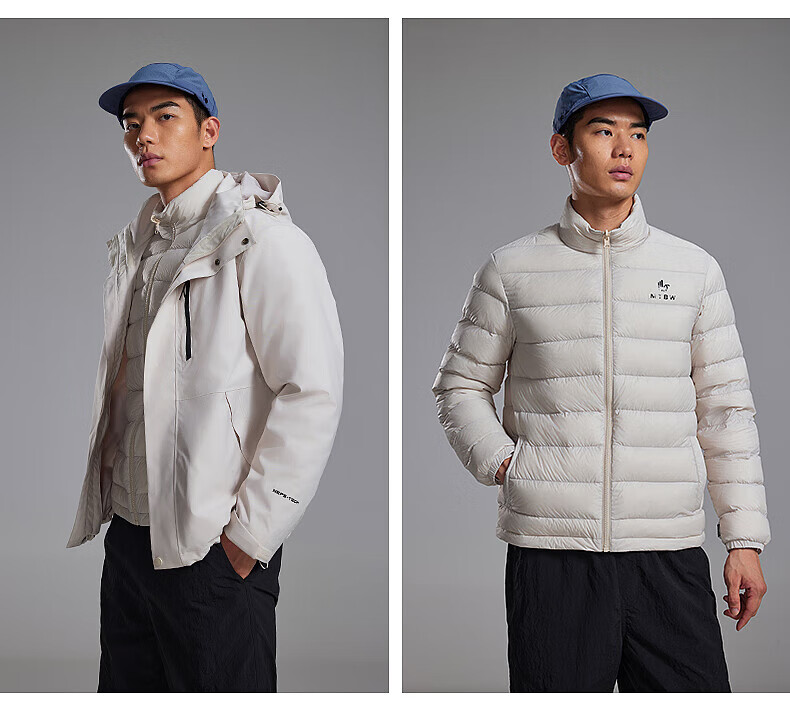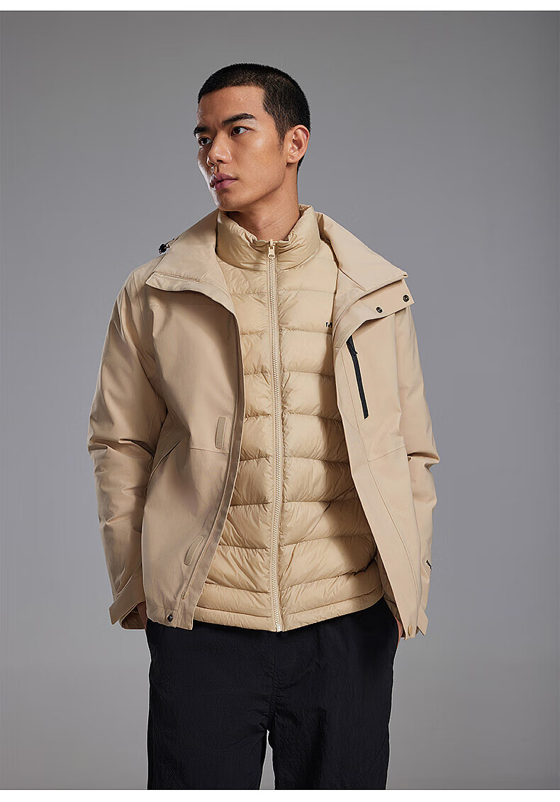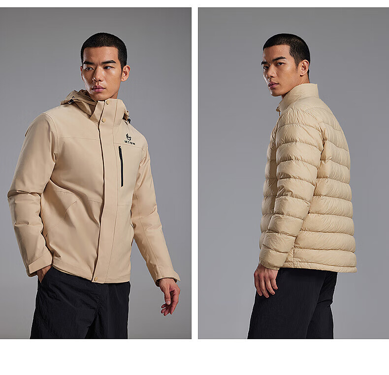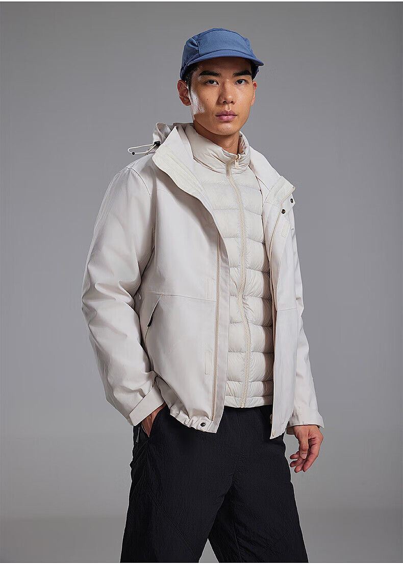 美特斯邦威25秋冬新款户外徒步登山服三防三合一羽绒内胆冲锋衣男 米白 L 175/96A