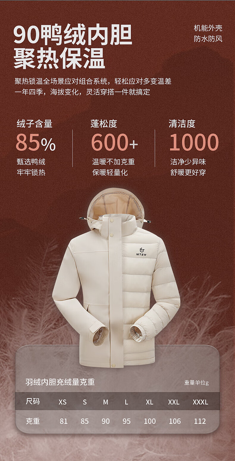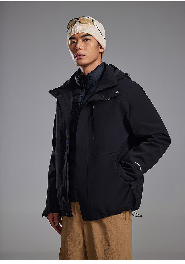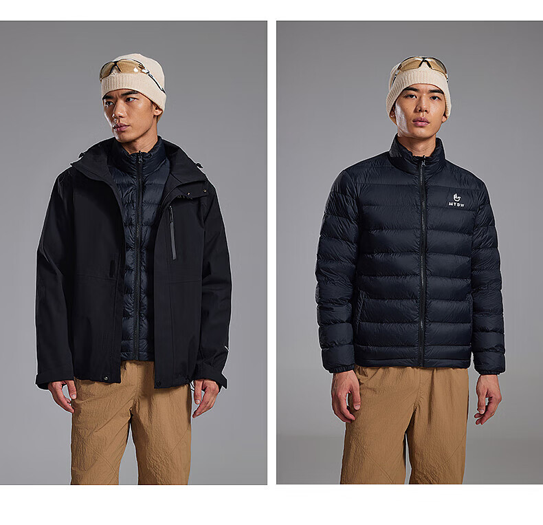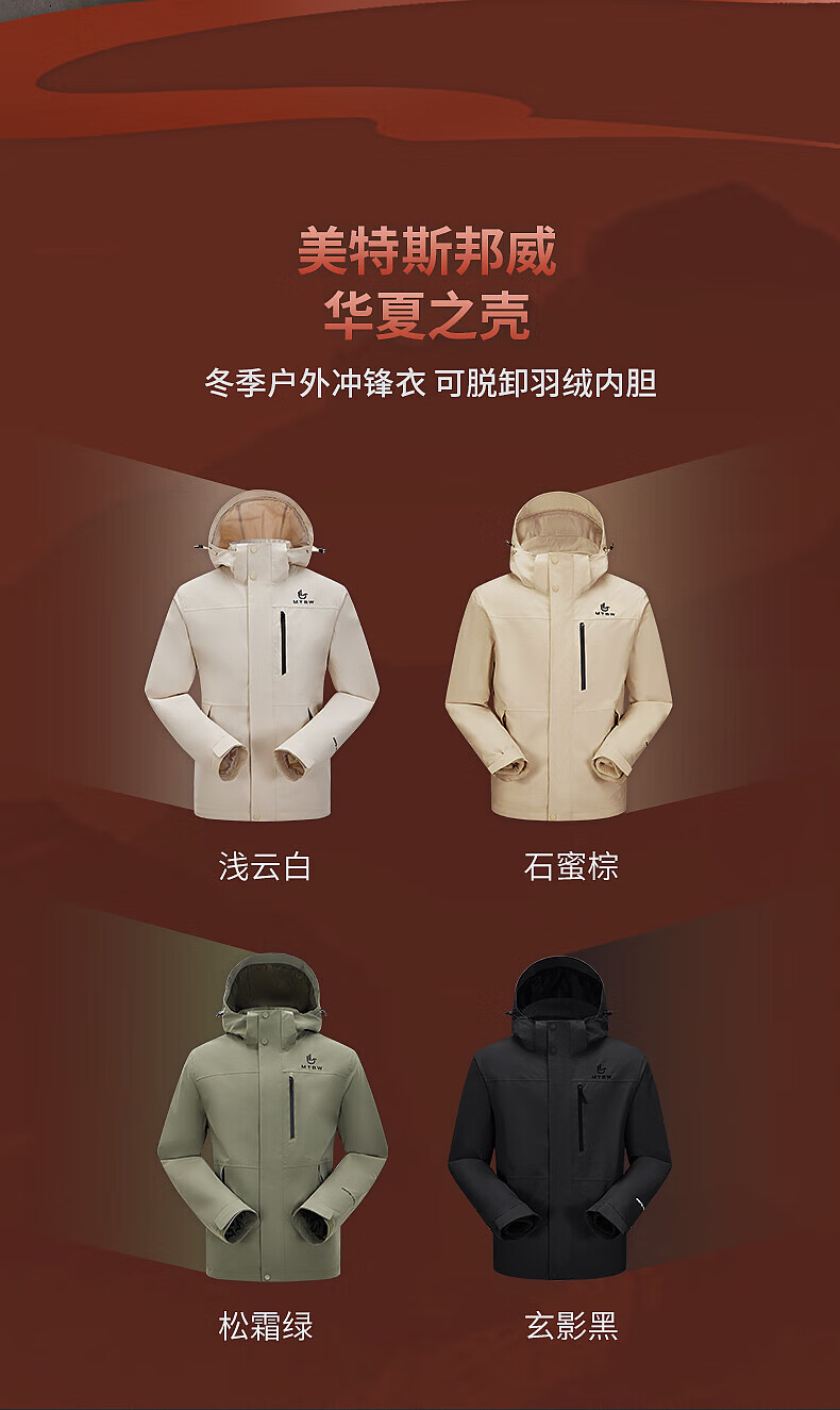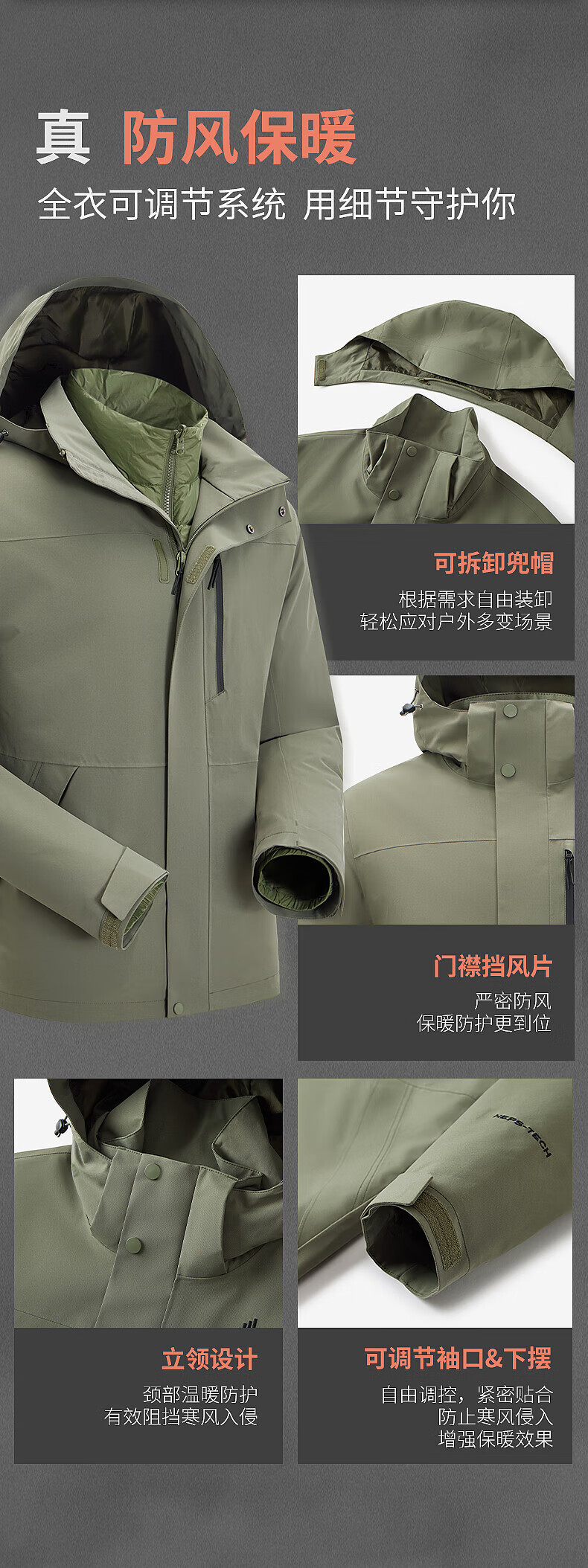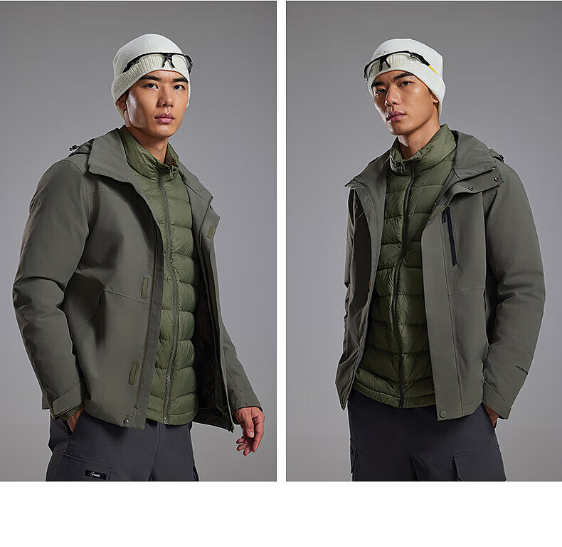 美特斯邦威25秋冬新款户外徒步登山服三防三合一羽绒内胆冲锋衣男 米白 L 175/96A