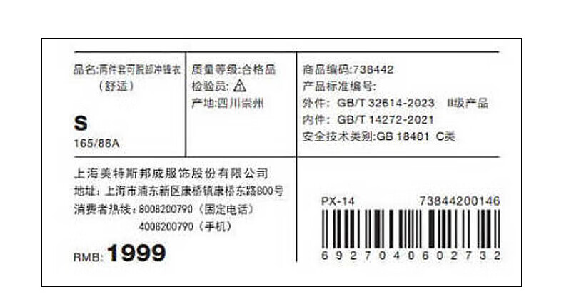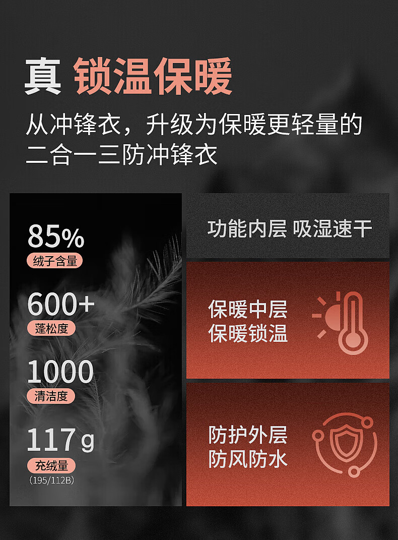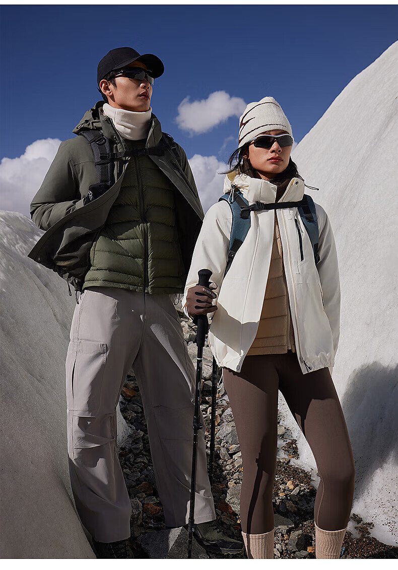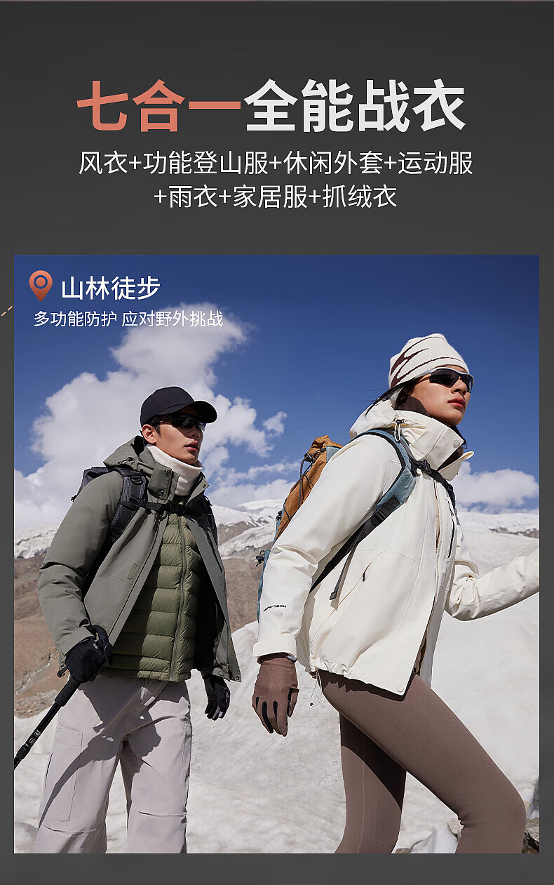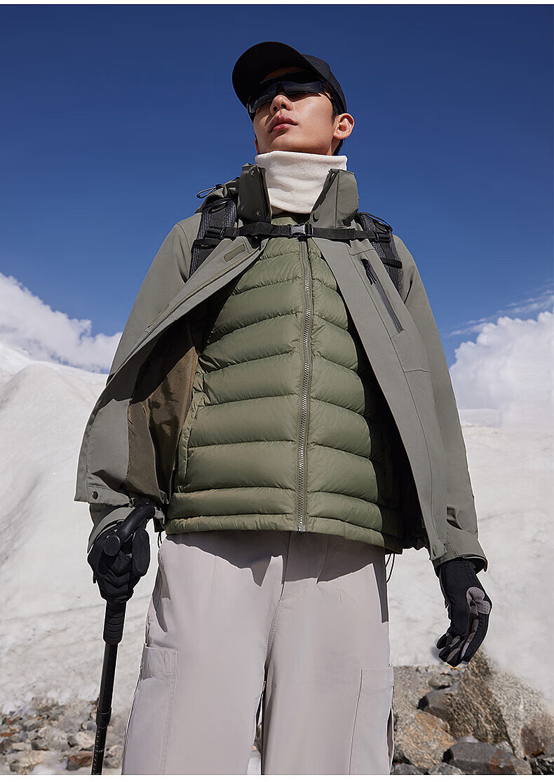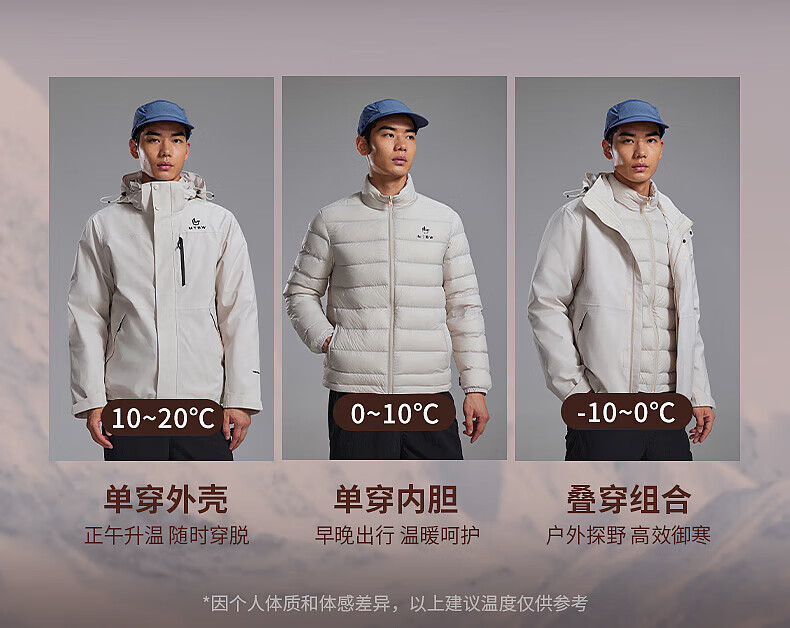 美特斯邦威25秋冬新款户外徒步登山服三防三合一羽绒内胆冲锋衣男 米白 L 175/96A