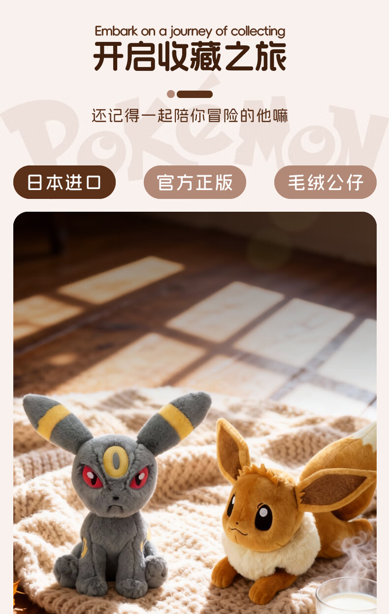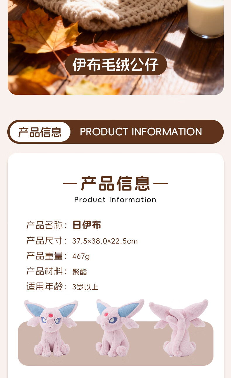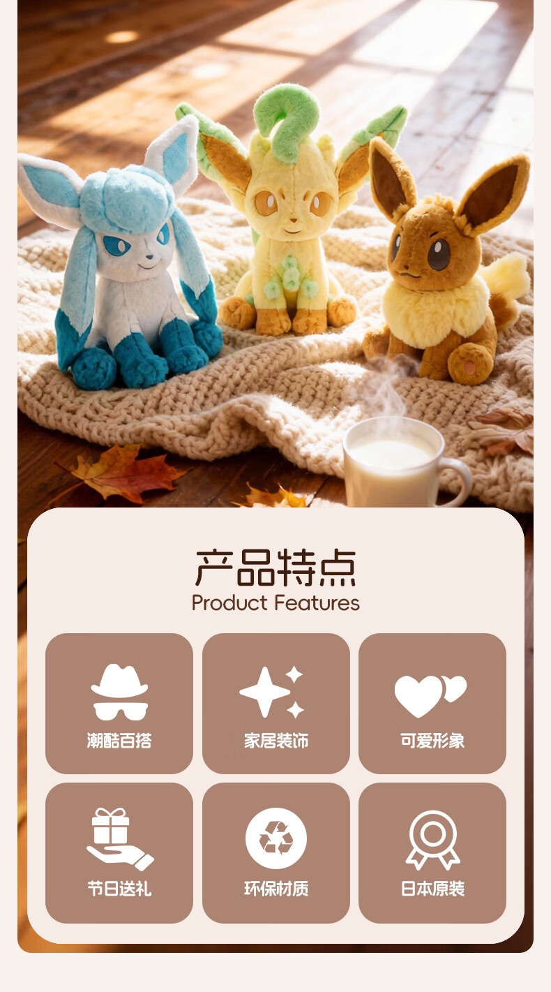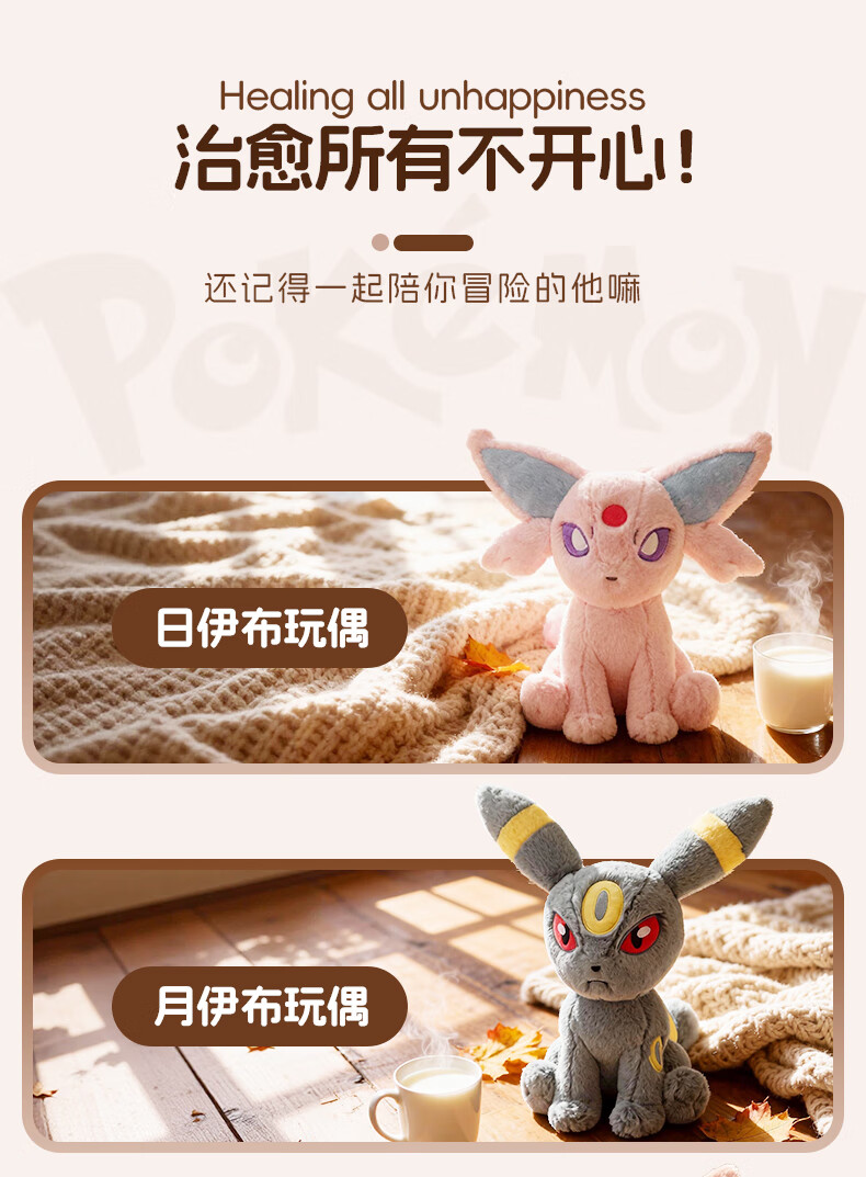 宝可梦【礼物】pokemon正版伊布公仔娃娃系波加曼毛绒玩偶玩具周边娃娃 仙子伊布 27×14×19cm 现货 【48小时内发货】(日版彩牌-原装原版)