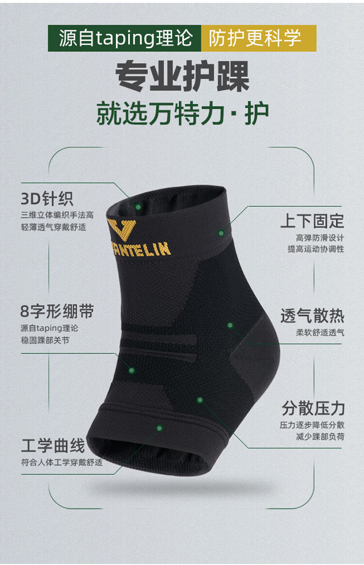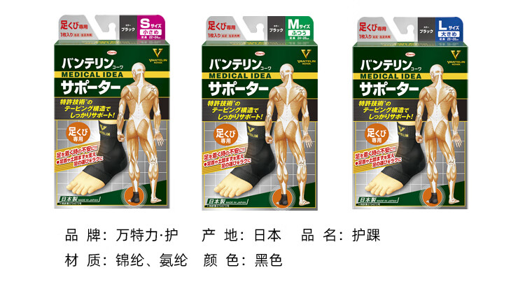 万特力·护日本进口护踝脚踝防护男女护脚腕篮球足球羽毛球跑步脚关节防护 黑色2只装 S