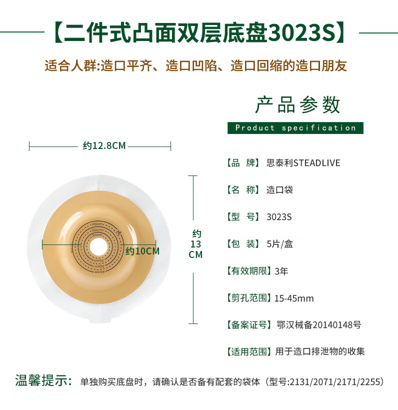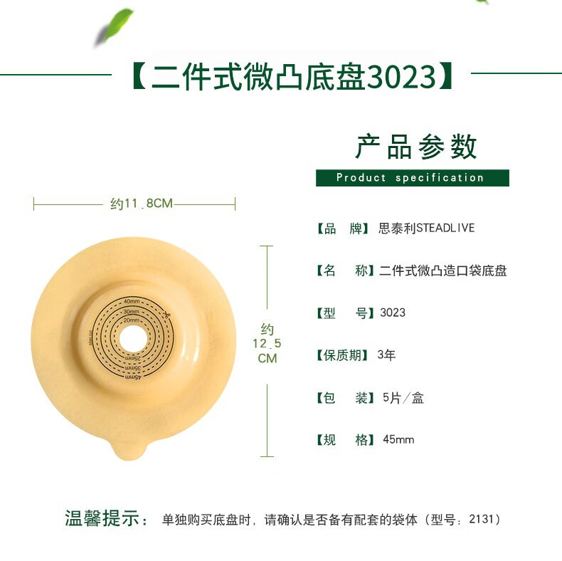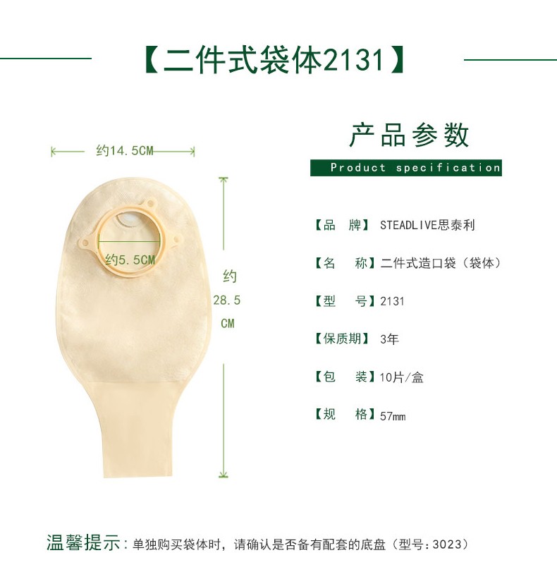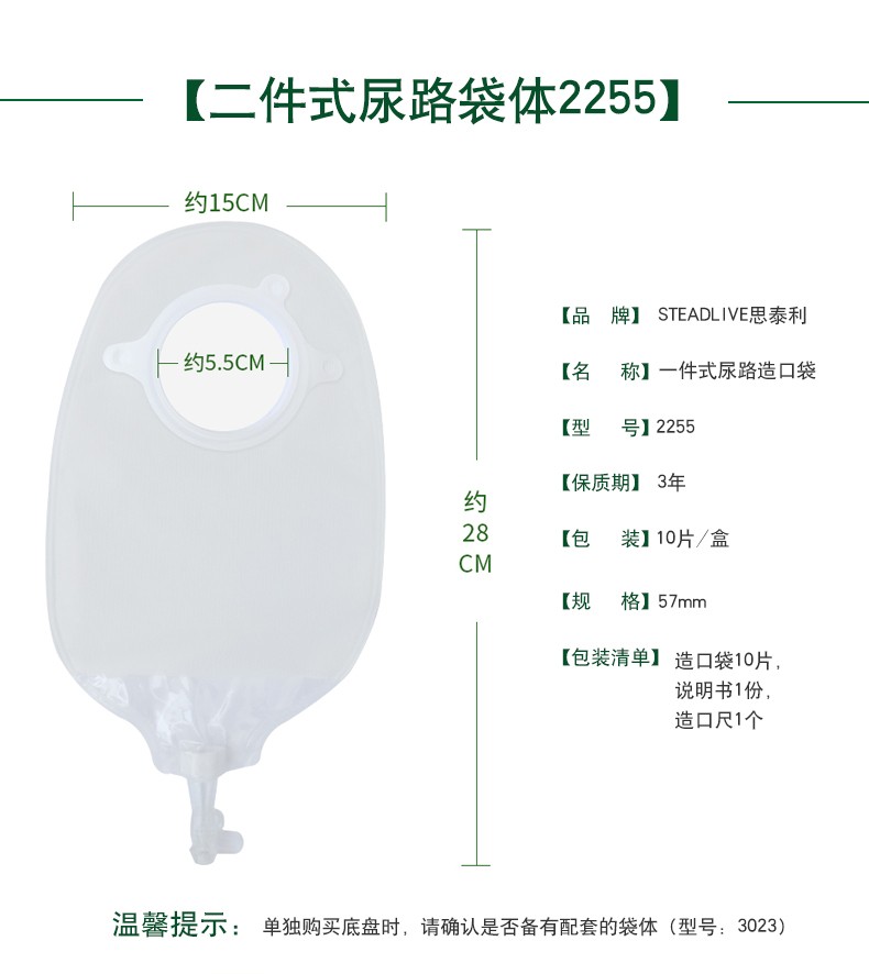 思泰利 思泰利(STEADLIVE)二件式造口袋凸面底盘3023 造口护理用品 2255(10个配套尿路造口袋袋体)