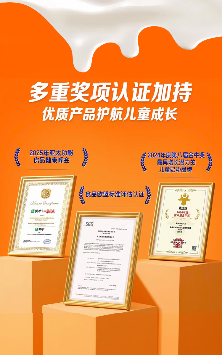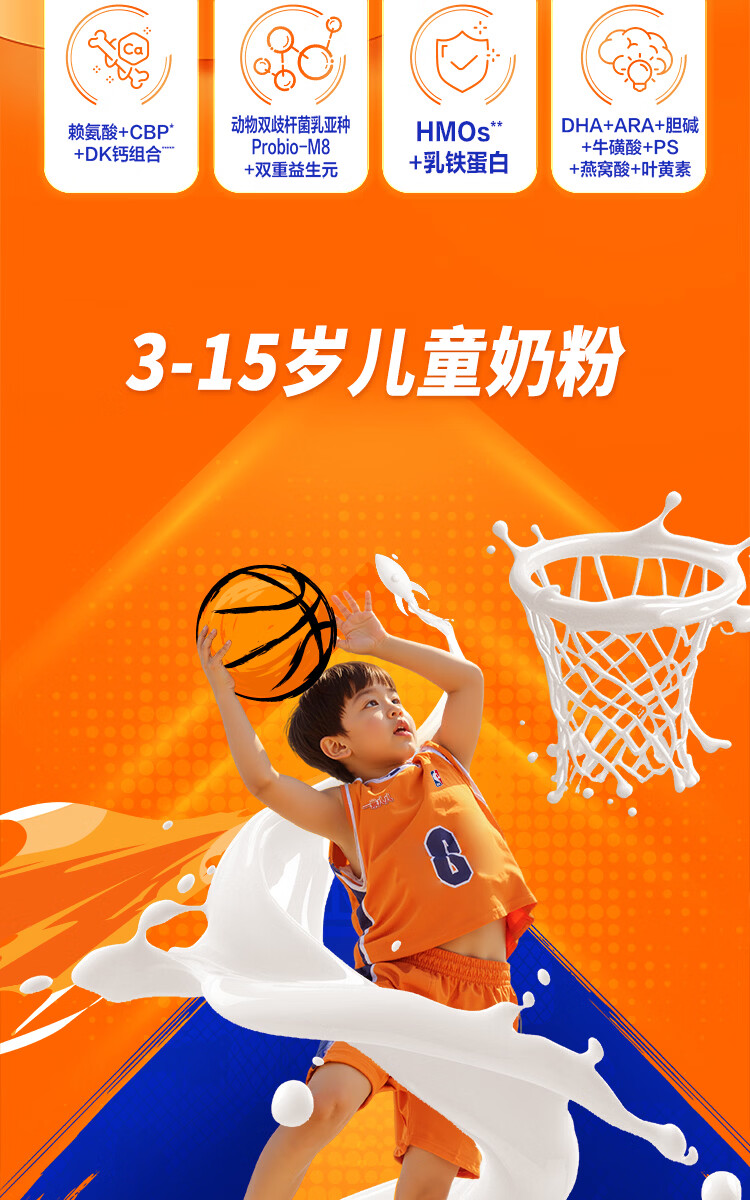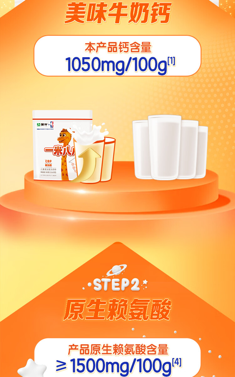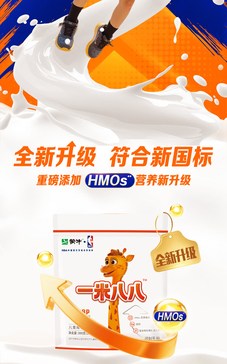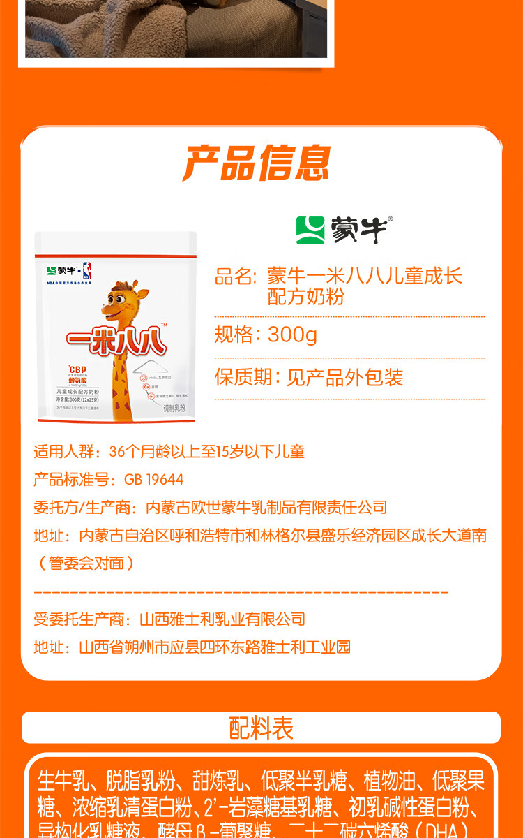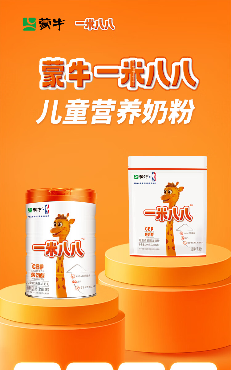 蒙牛一米八八儿童奶粉3-15岁学生青少年CBP赖氨酸乳铁蛋白营养牛奶粉 一罐装800g