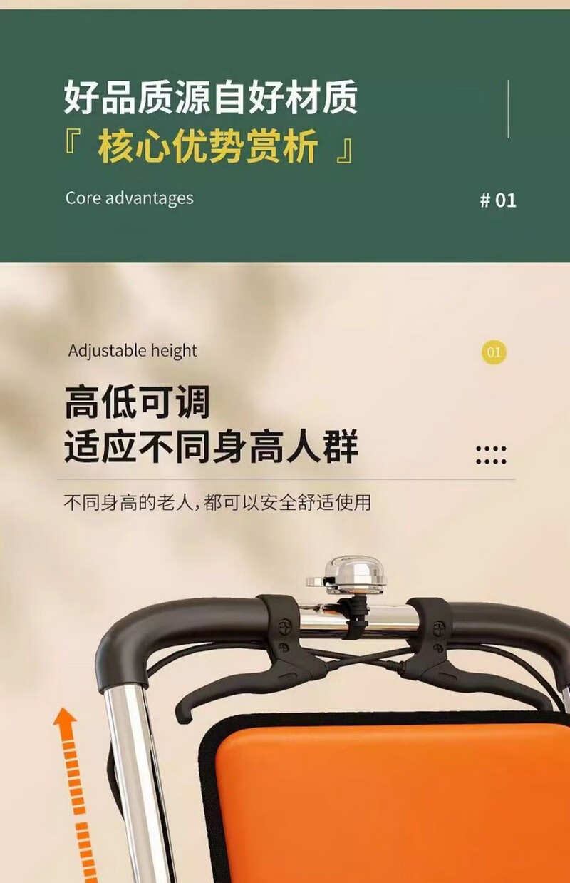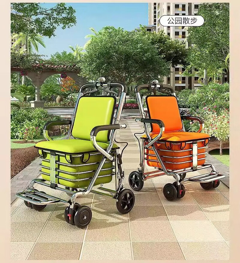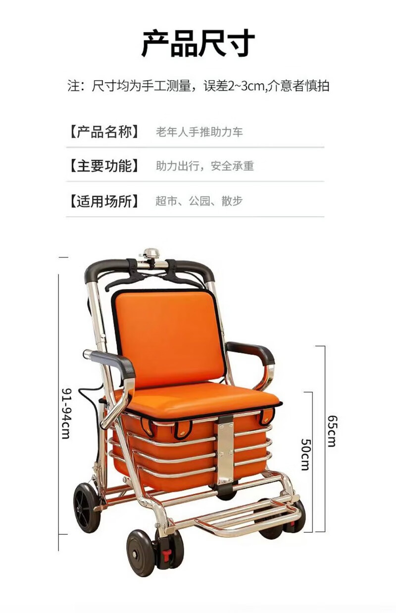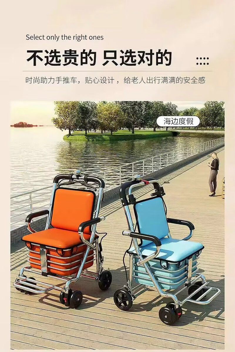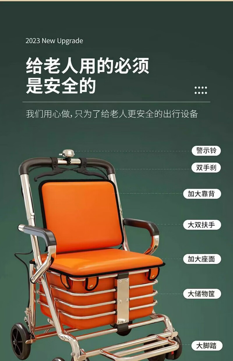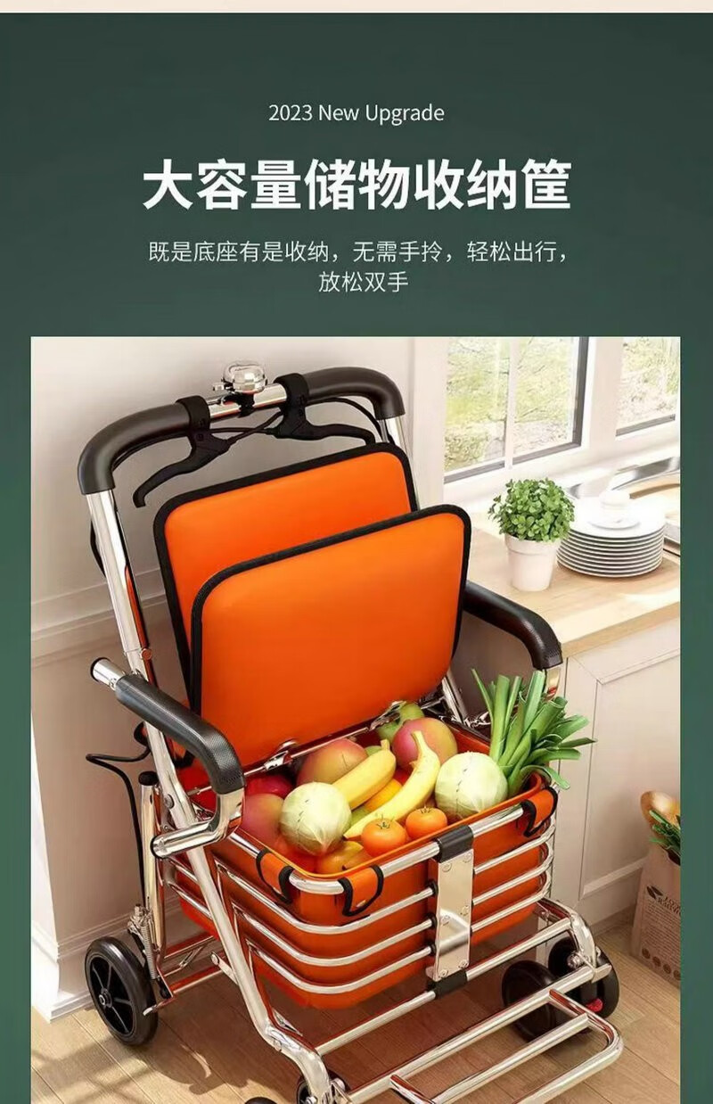 弘庆老年人小推车可坐折叠轻便助步购物车手推车助行车座椅代步买菜车 4双轮手刹+终身质保