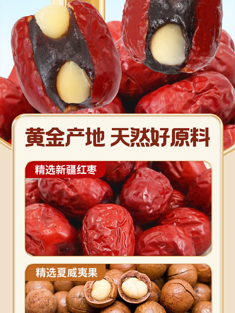 一品玉新疆无添加 零食红枣血糯米夏威夷果三重风味 孕妇儿童可食用 抱福枣100g*3