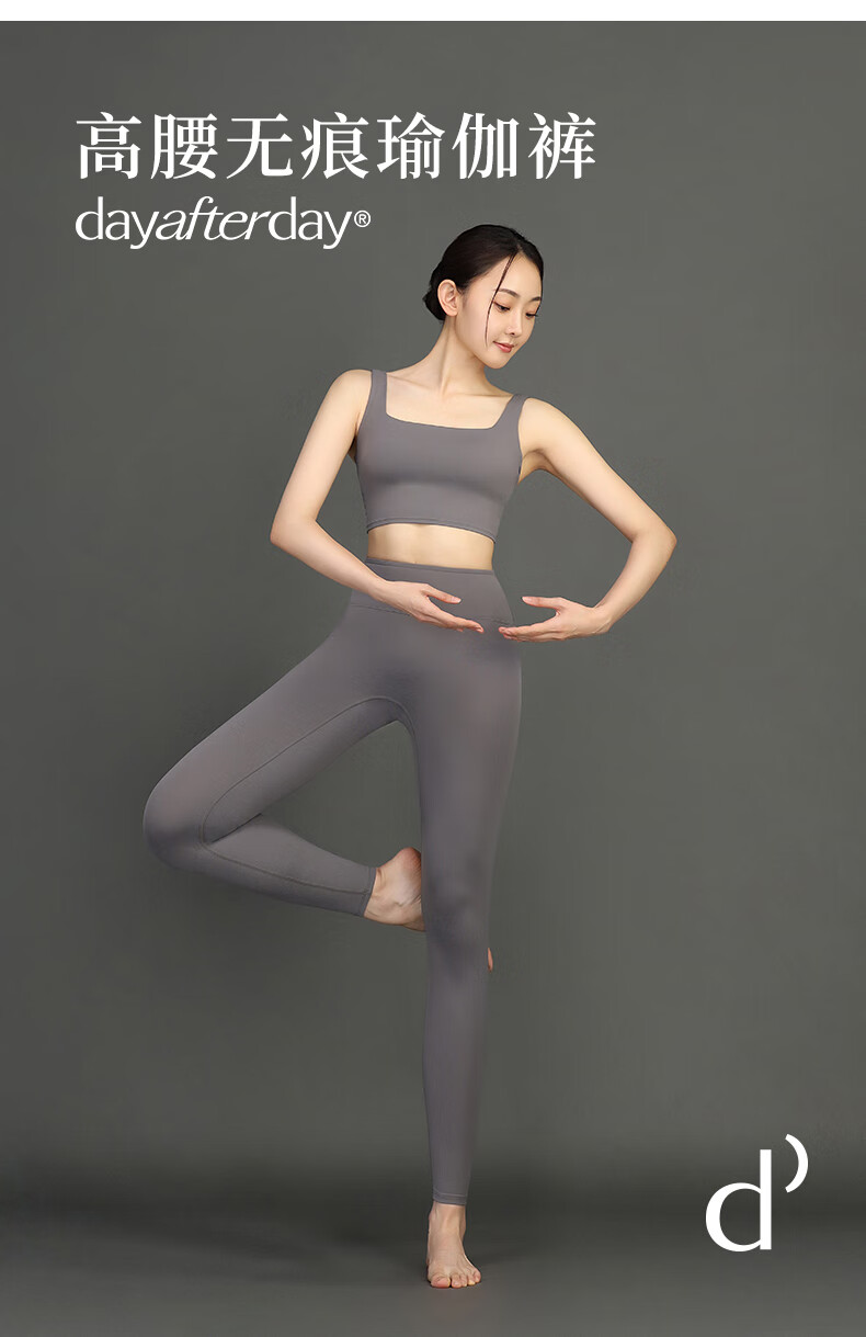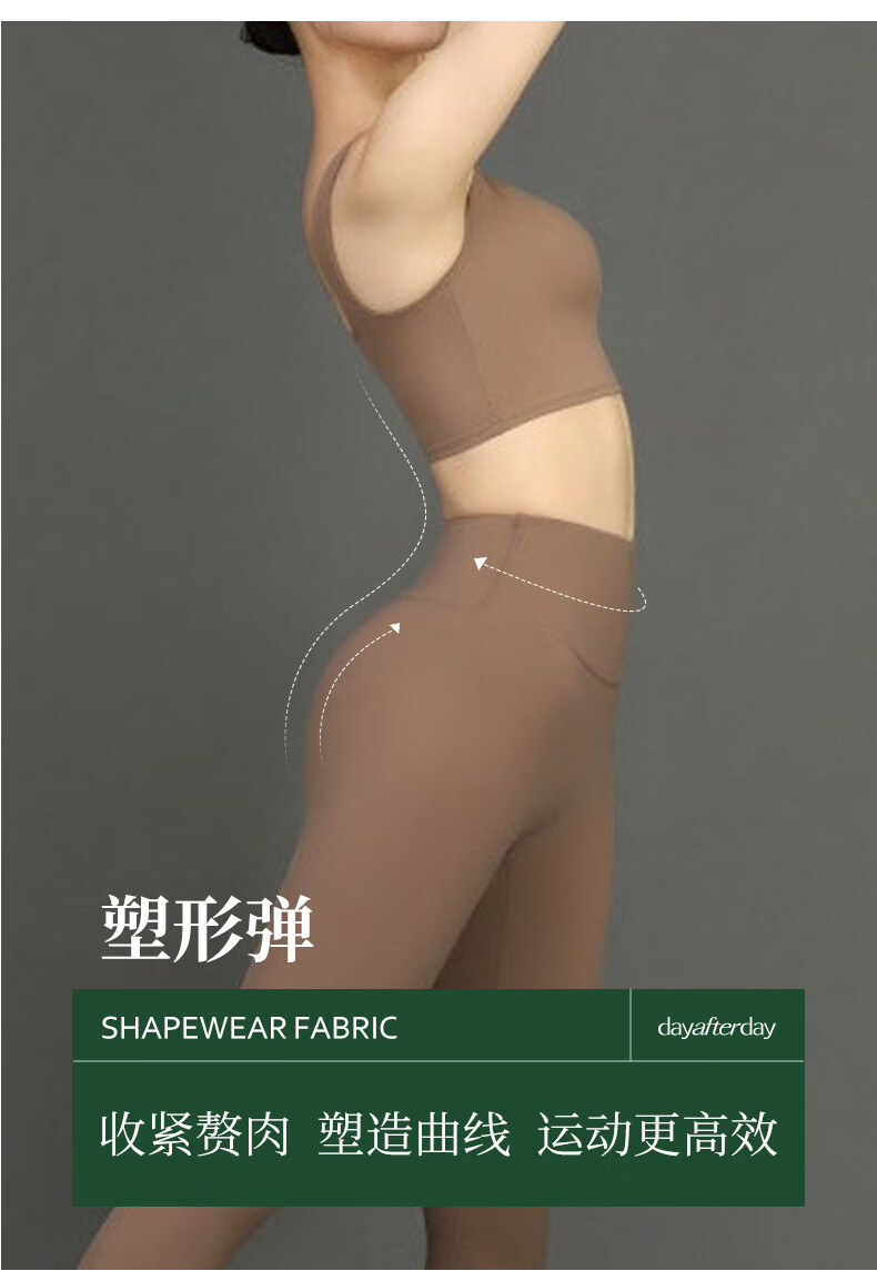 DAY AFTER DAY亮色外穿健身裤女高腰显瘦收腹提臀紧身裤瑜伽裤运动速干压缩裤 可可色套装 M 【推荐50KG-55KG】