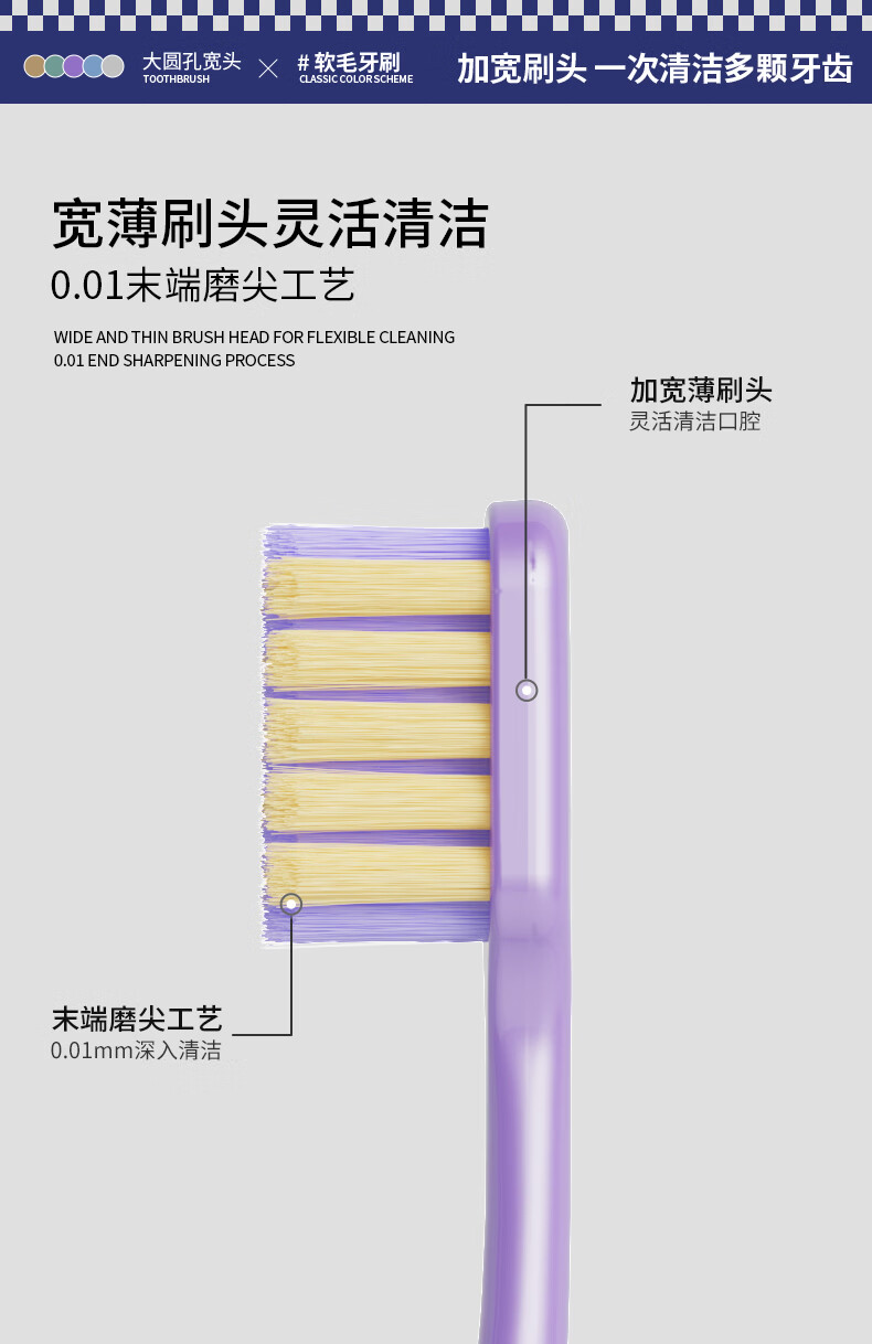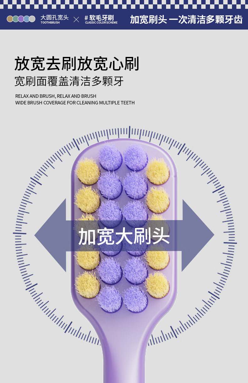 山姆同款型牙刷软毛成人家庭六支装情侣宽头牙刷 软毛 6支
