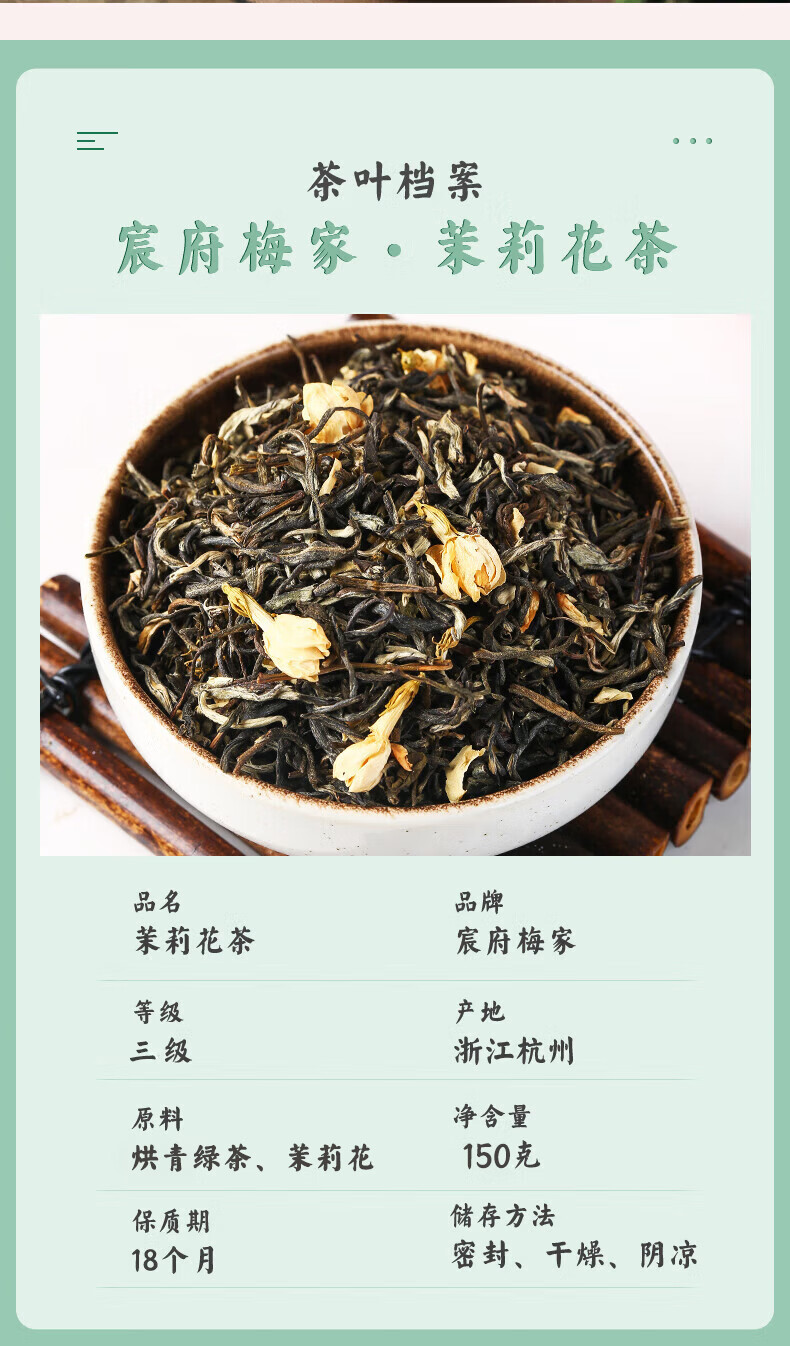 宸府梅家茉莉花茶2025新茶叶浓香散装花茶自饮口粮茶八角边袋装150g 茉莉花茶八角边袋装150g