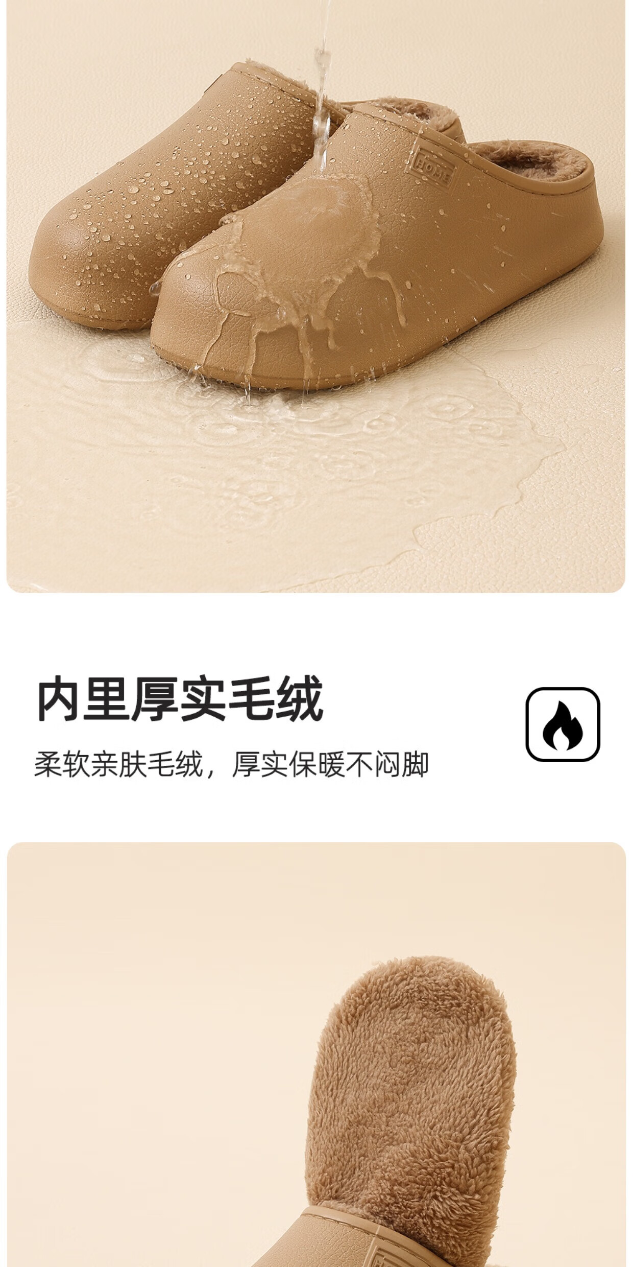 FZT防水棉拖鞋女士冬季2025新款小熊防滑厚底防水保暖踩屎感棉拖鞋男 咖色 35-36 正码(内长230mm)