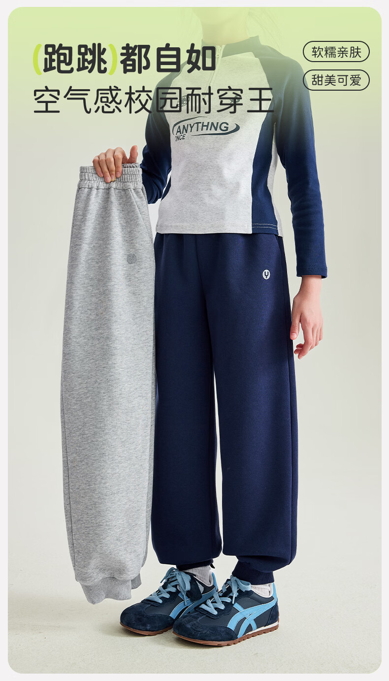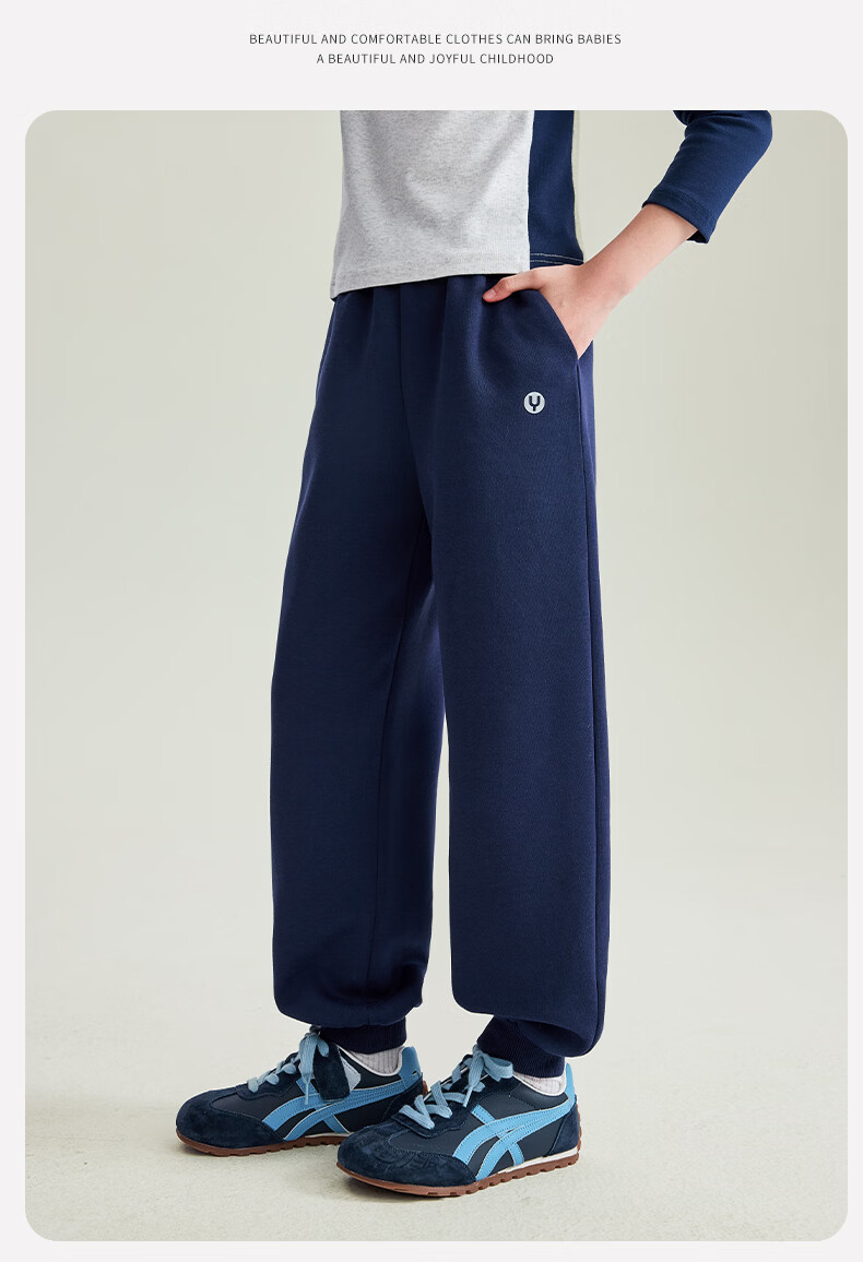 媛媛公主【校服神器运动裤】儿童裤子女童针织束脚裤中大童春秋百搭休闲裤 藏青色 110